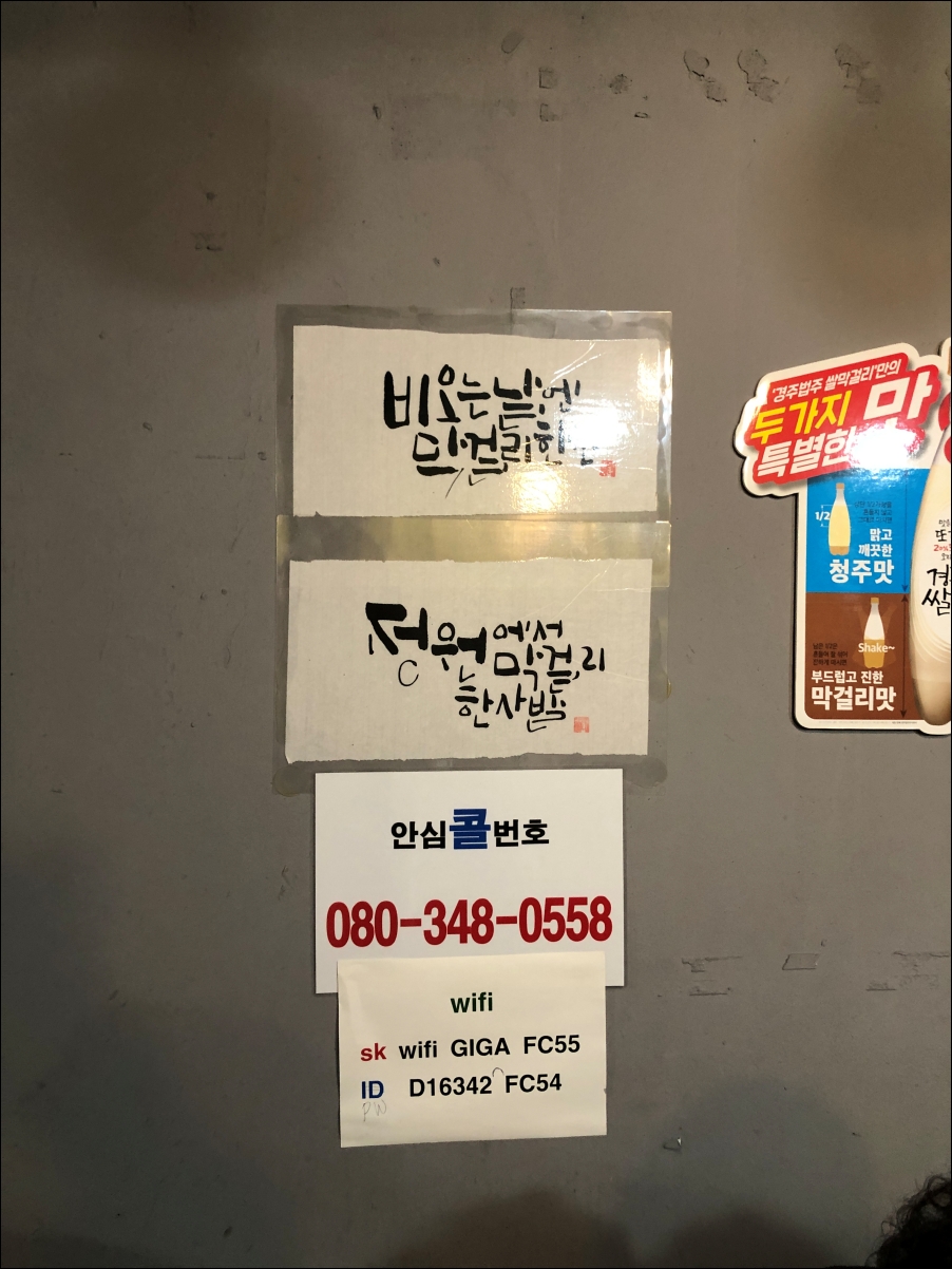 정시에 도착한 3명은 먼저 자리를 잡고 막걸리 부터 시켰습니다. 6시라 첫 손님이었습니다.