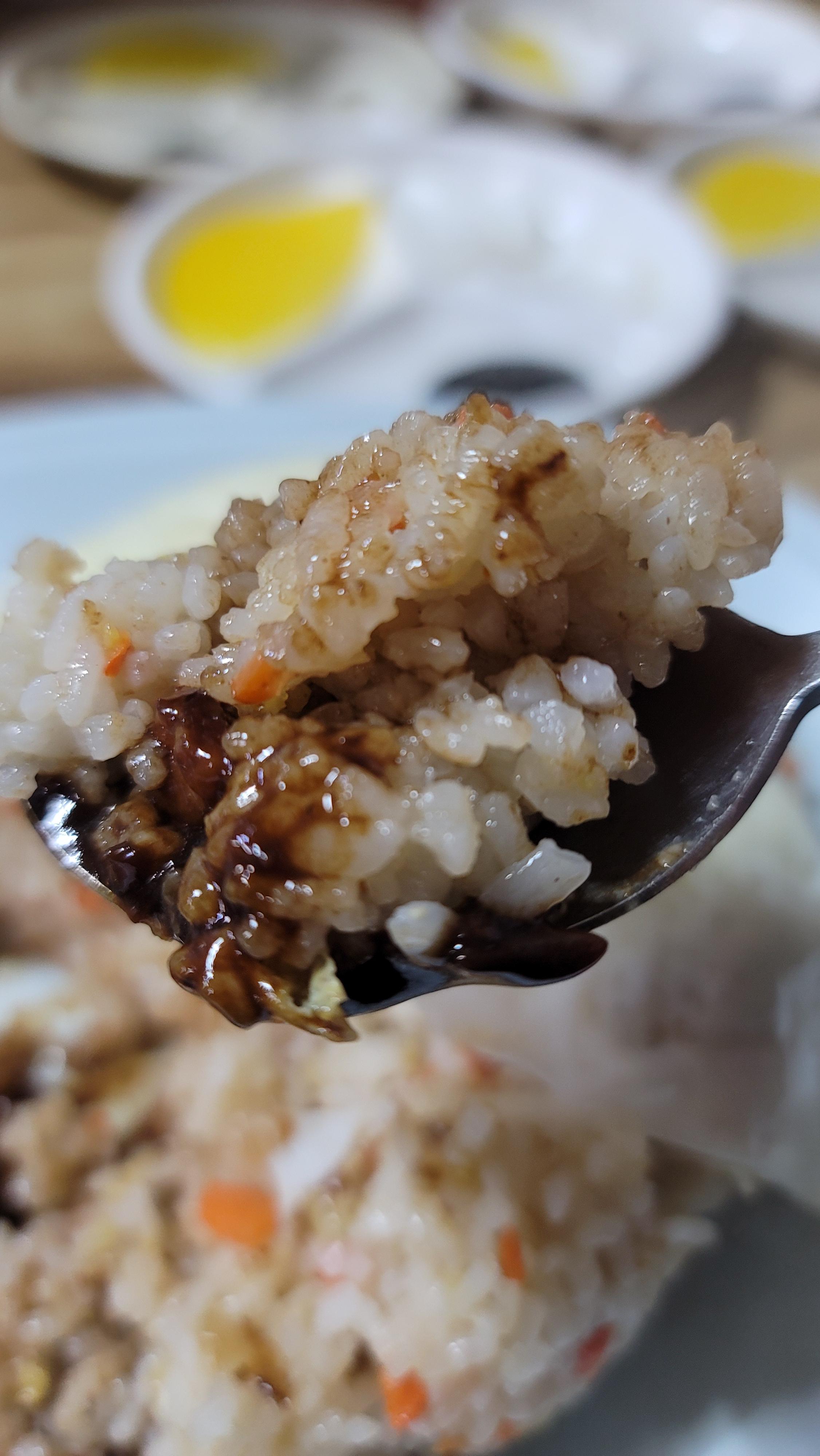 앗~ 그런데 볶음밥이 고슬고슬하지 않았습니다. 추측하건데 갓 지은 밥으로 볶음밥을 만드신 듯 했습니다. 손님이 많으니 어쩔 수 없는 상황이었겠죠. 옆에서 볶짜면을 드시던 선배가 넌즈시 볶음밥이 고슬고슬하지 않지?라고 물어오셨는데 저도 같은 생각이라고 살짝 말씀드렸습니다.