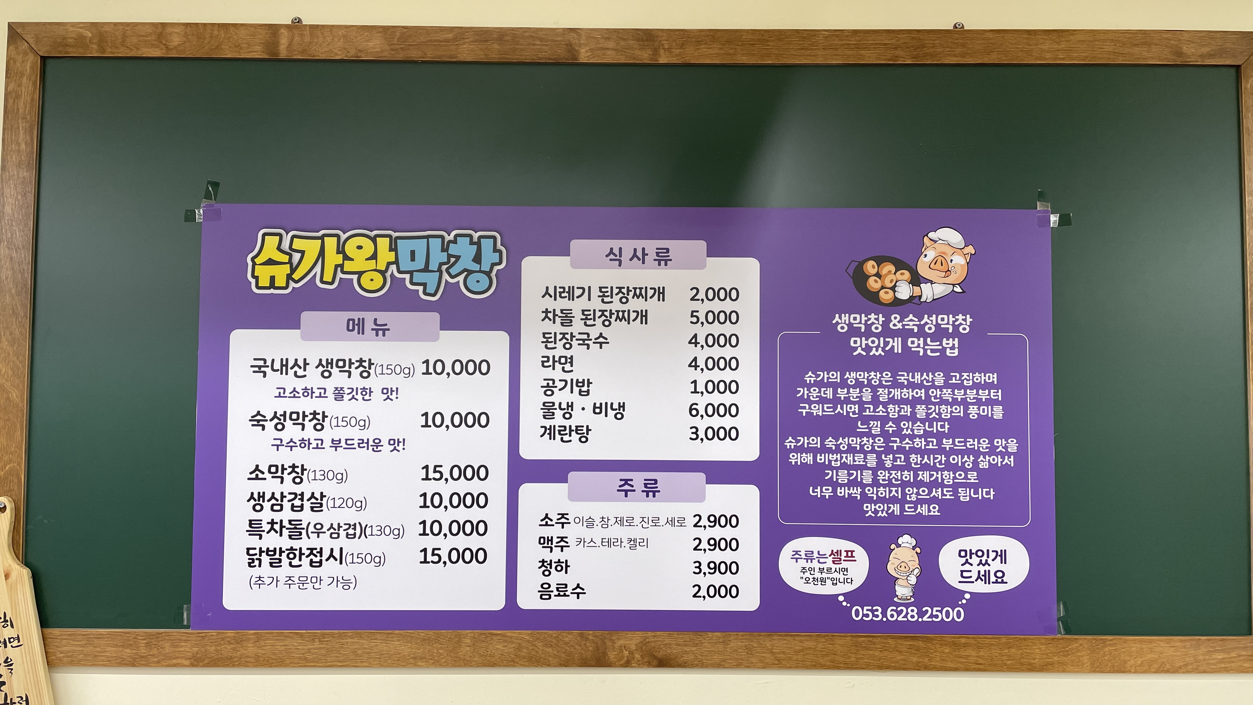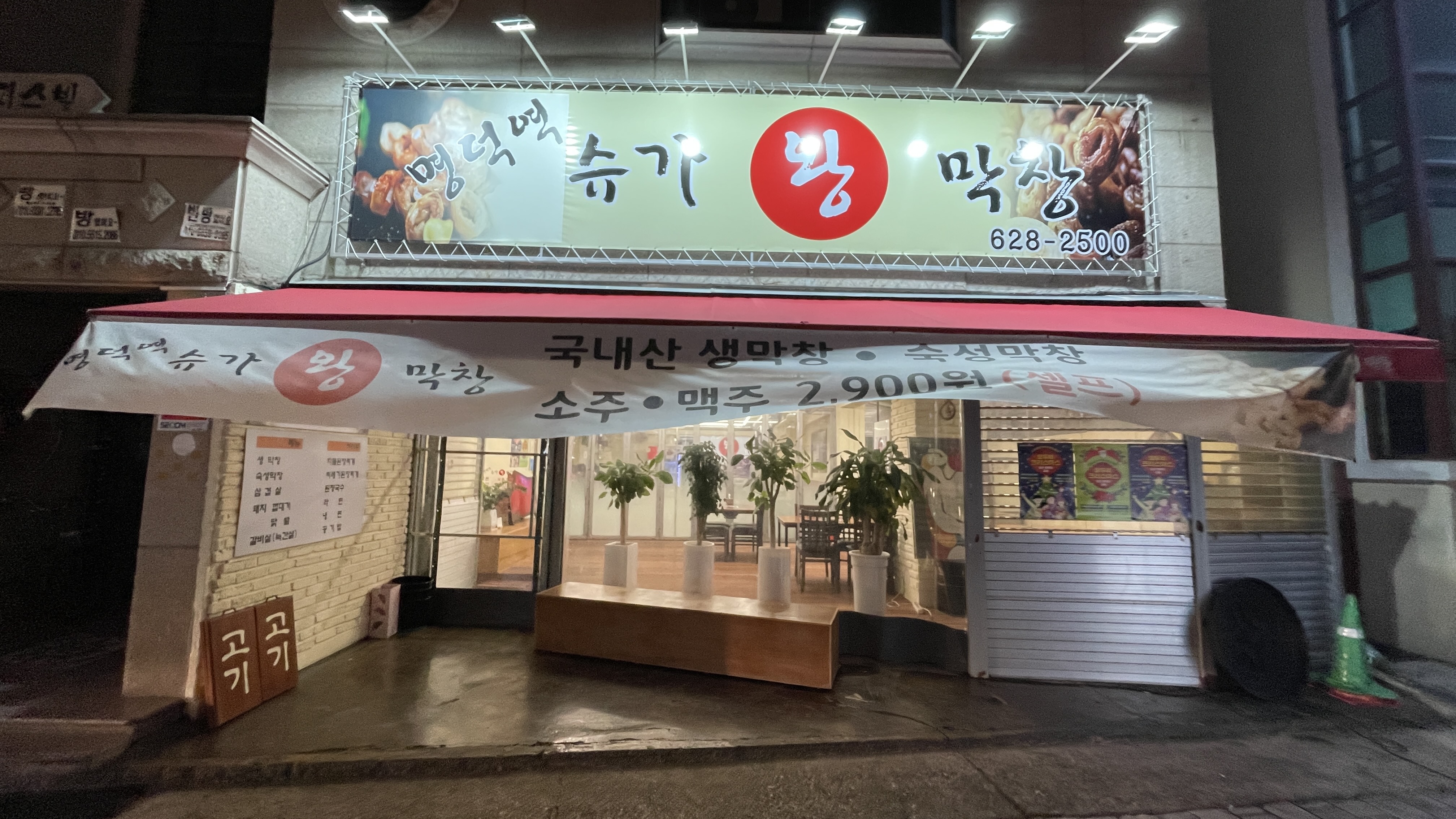 몸은 피곤했으나 소주 몇 잔하고 들어가면 더 푹 잘 것 같아서 명덕역에 내려 선배가 알려준 "명덕역슈가왕막창"으로 갔다.