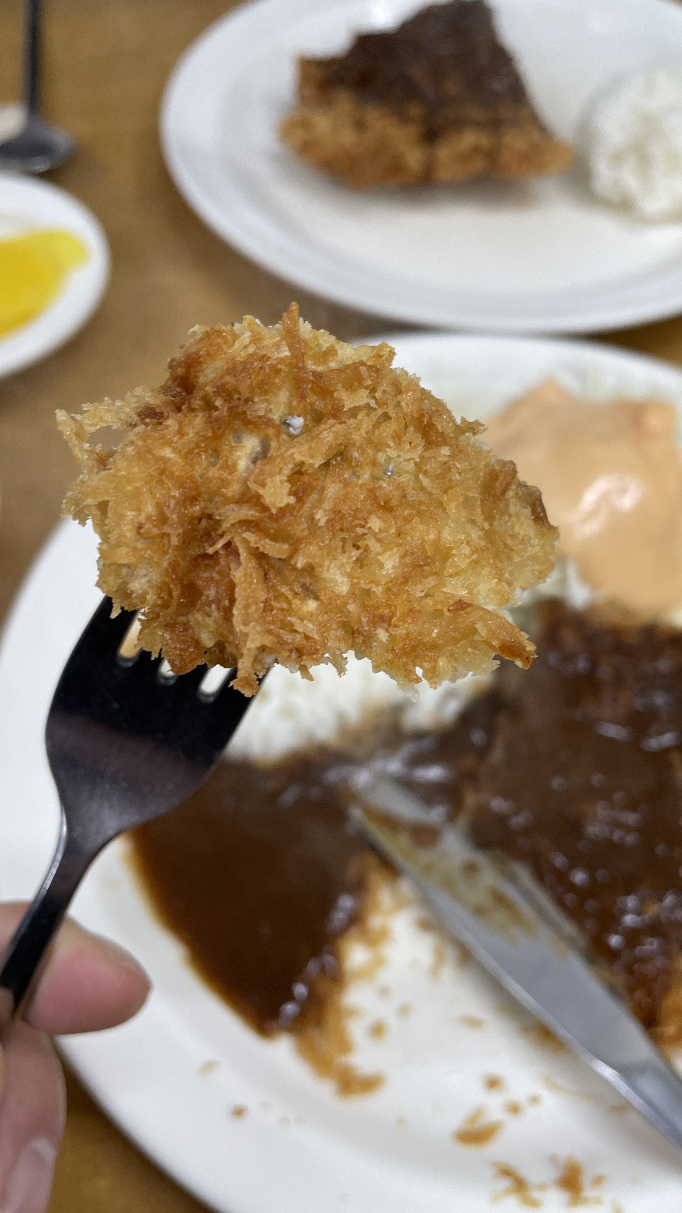제육우동은 먹어봤던 중화비빔밥 또는 야끼우동(볶음짬뽕)과 비슷한 비주얼(밥 대신 면)이었고, 돈까스는 그 크기에 감동받았다. 솔직히 돈까스는 넙적해야 맛있어 보이니까.