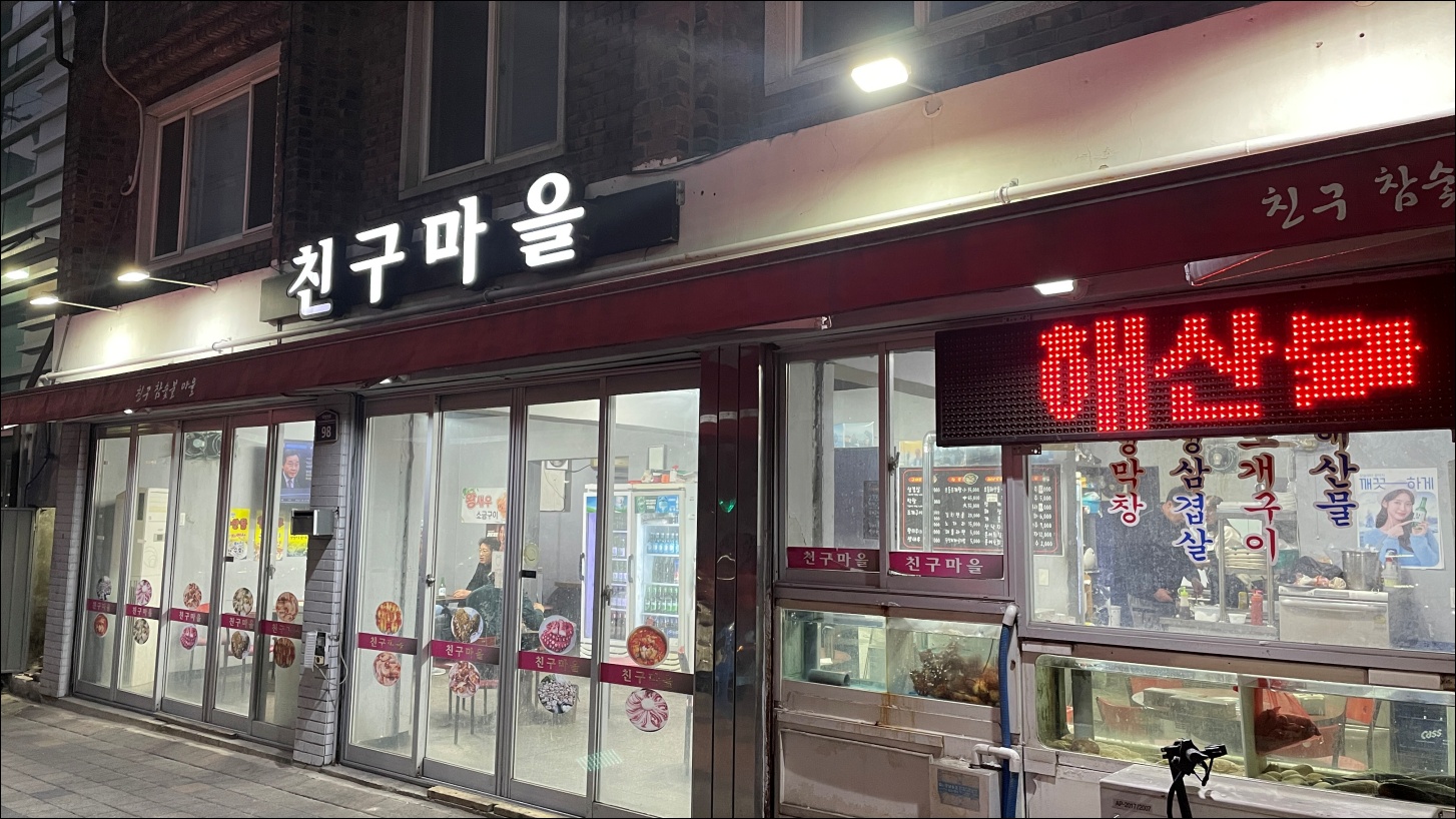 성당동 친구마을 : 조개, 해산물, 막창 그리고 삼겹살 등 모든 것이 한 곳에서 해결됩니다.