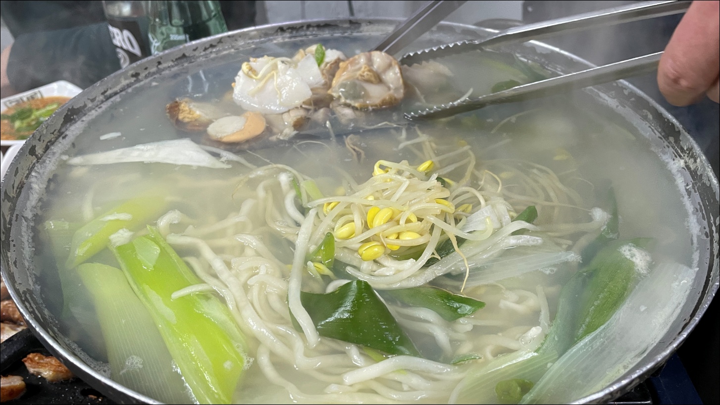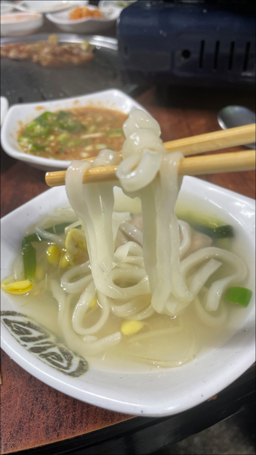 조개탕 육수에 들어간 칼국수도 출출한 배를 잘 달래줬습니다.