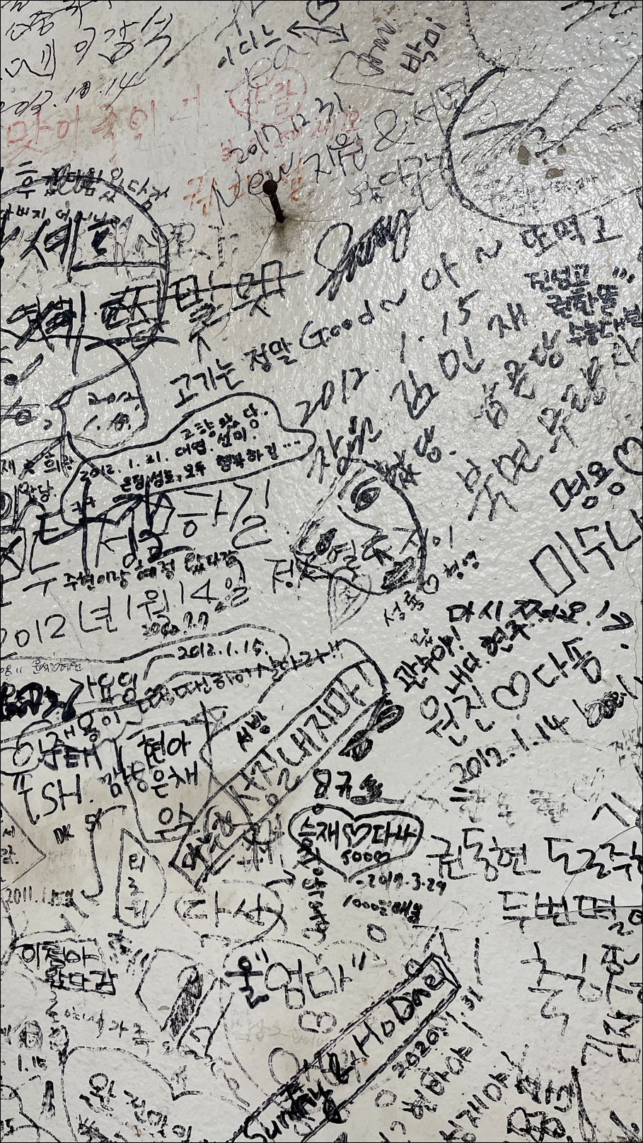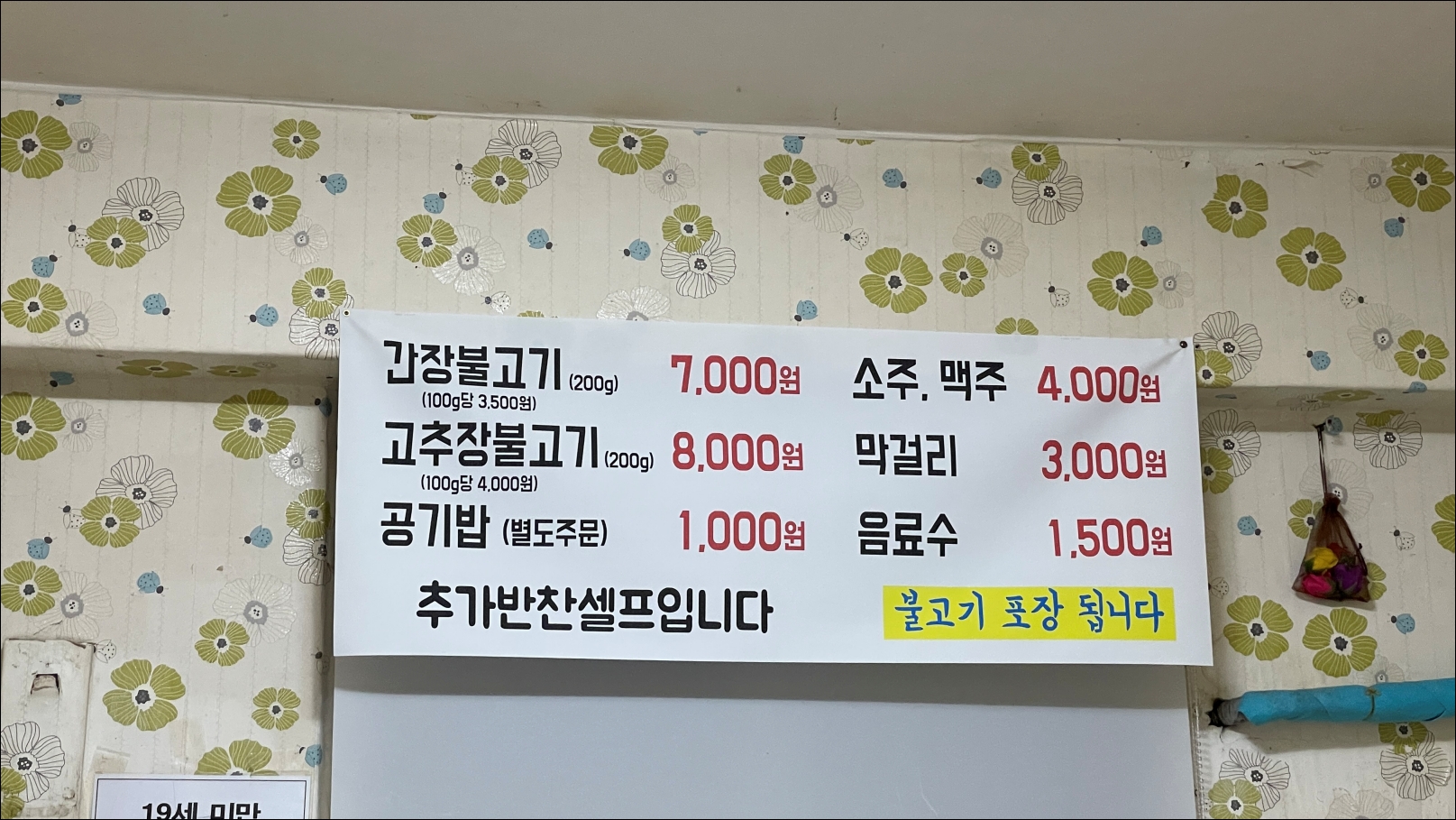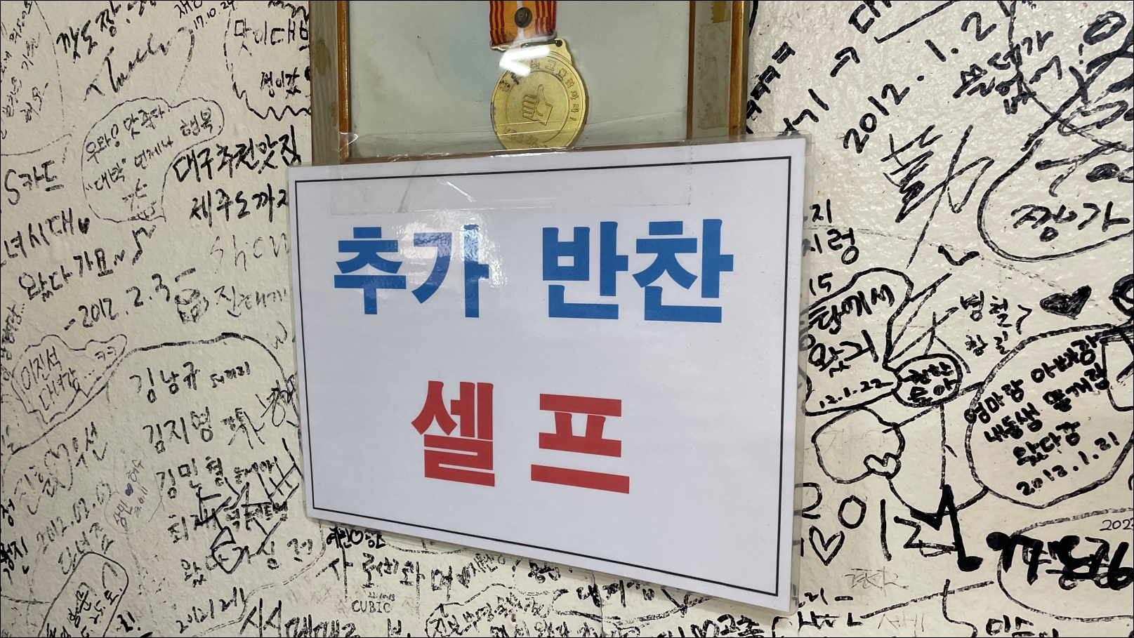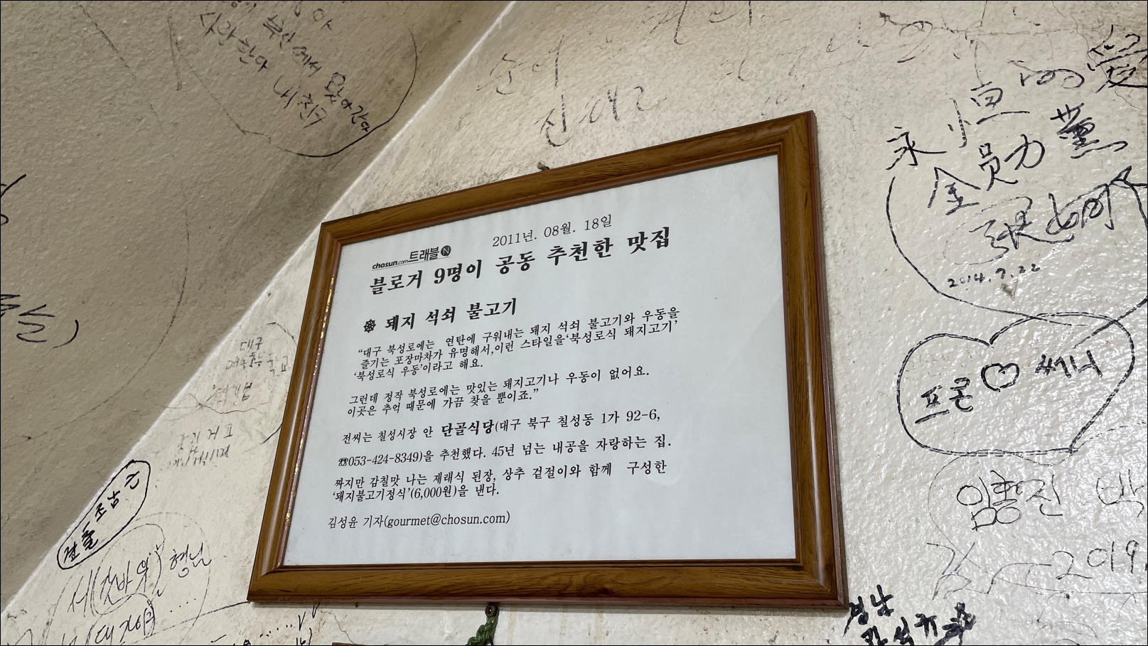 단골식당의 오랜 역사는 벽이 증명하고 있었습니다.
