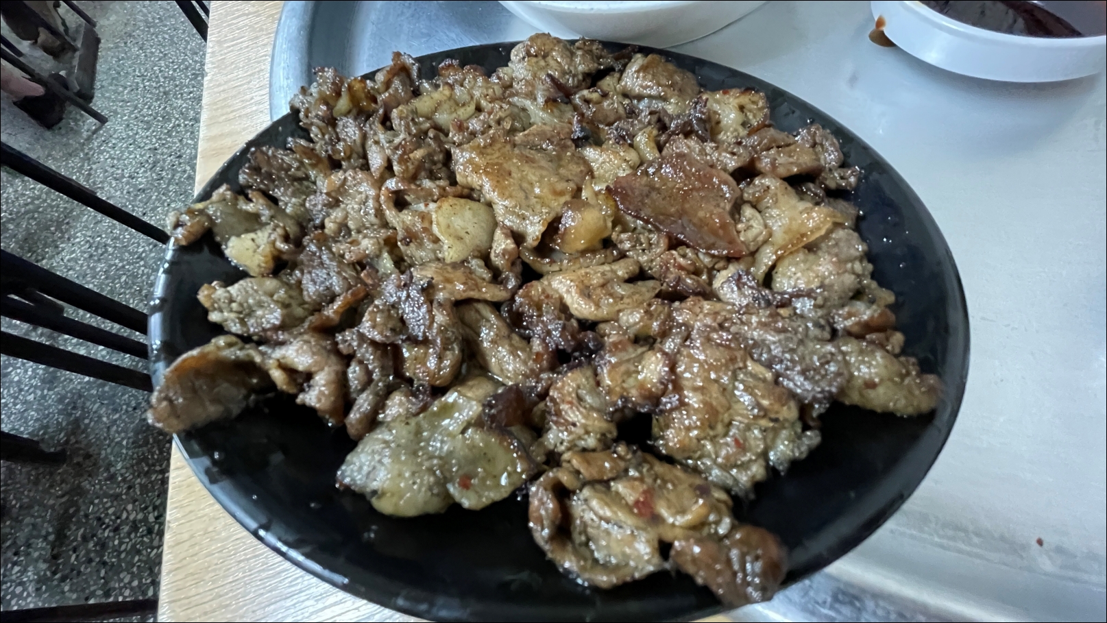 연탄불에 제대로 구워진 칠성시장 단골식당 연탄돼지불고기입니다.