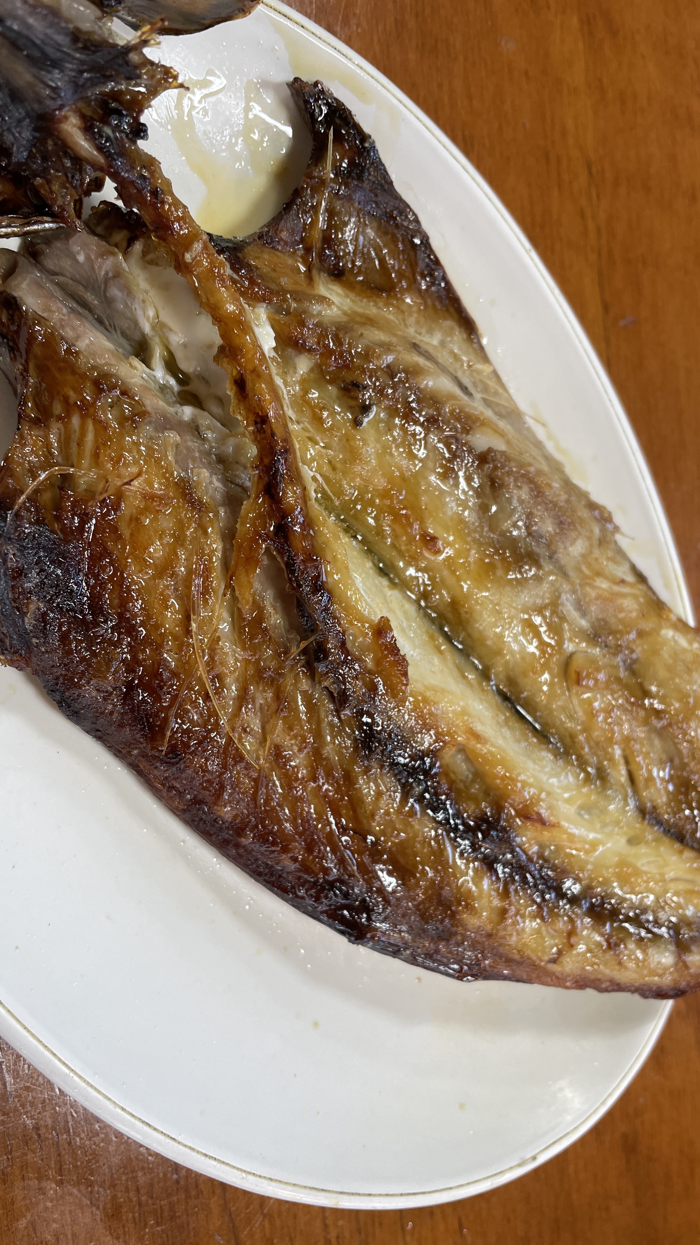노릇노릇하게 구워진 고등어와 집 밖에서 먹으면 맛있는 계란 후라이.