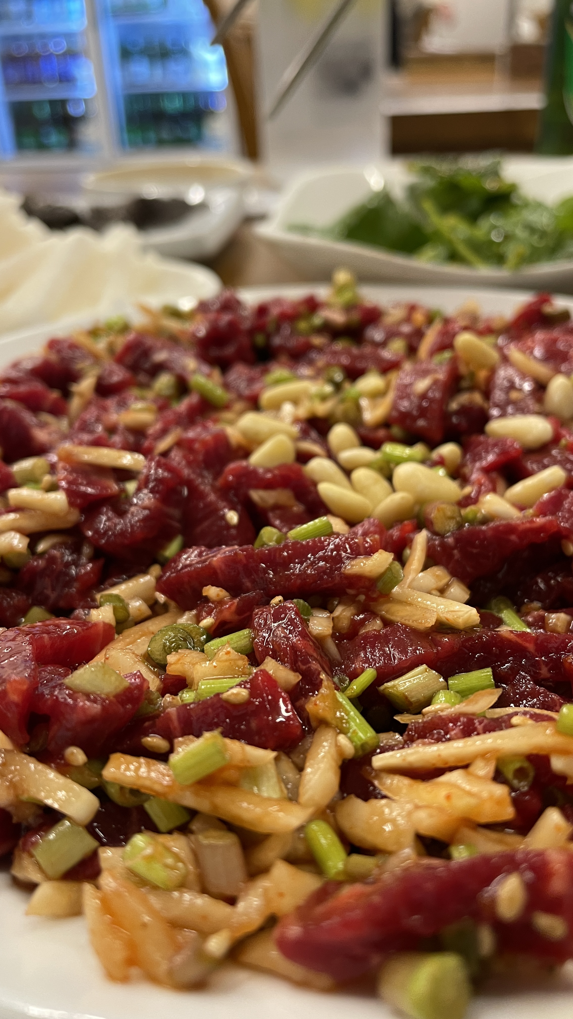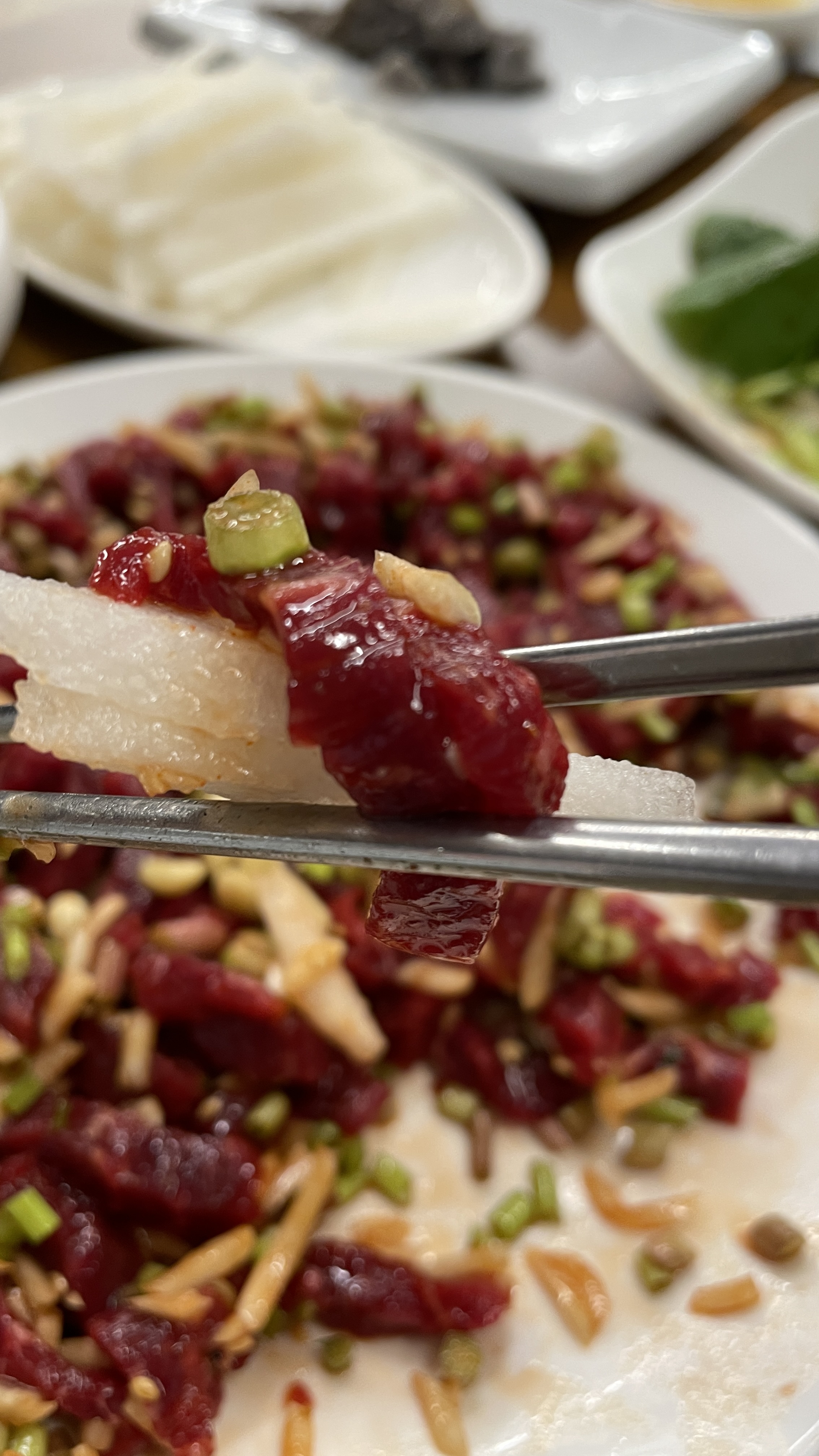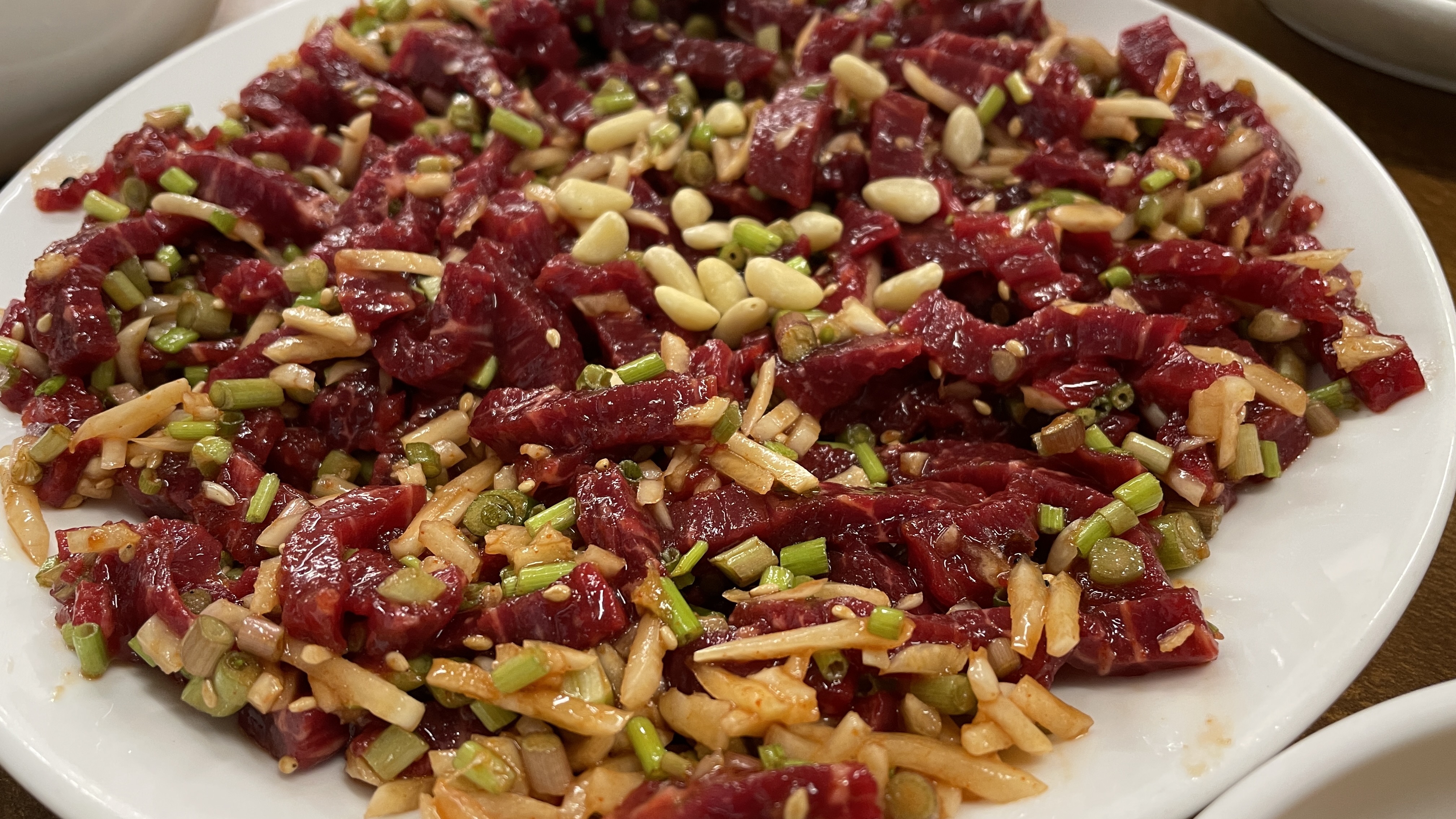 잣, 배와 함께 먹는 육회는 더욱 고소했다.