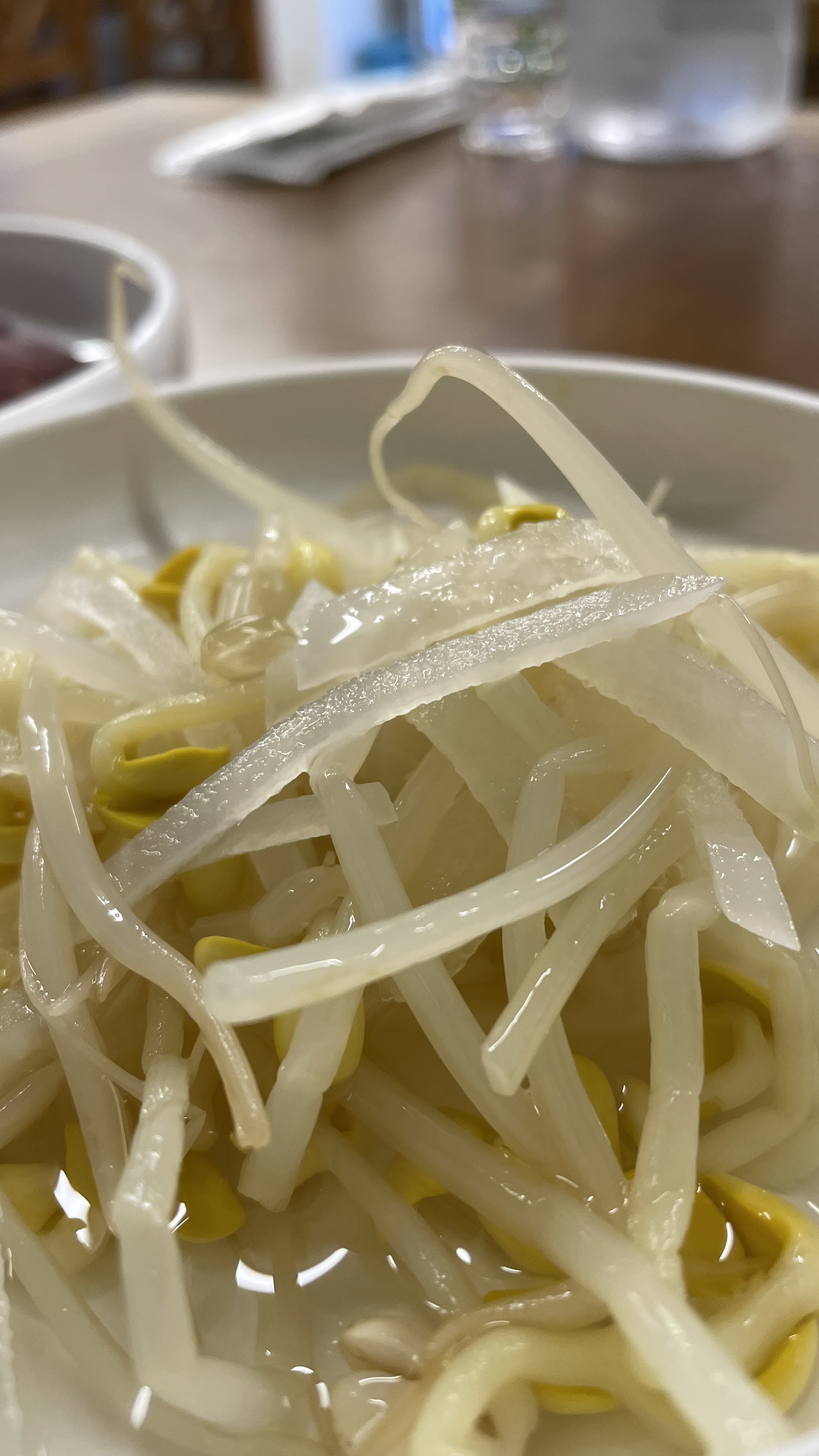 물김치, 콩나물 & 무, 찐고구마, 번데기가 반찬으로 나왔다.
