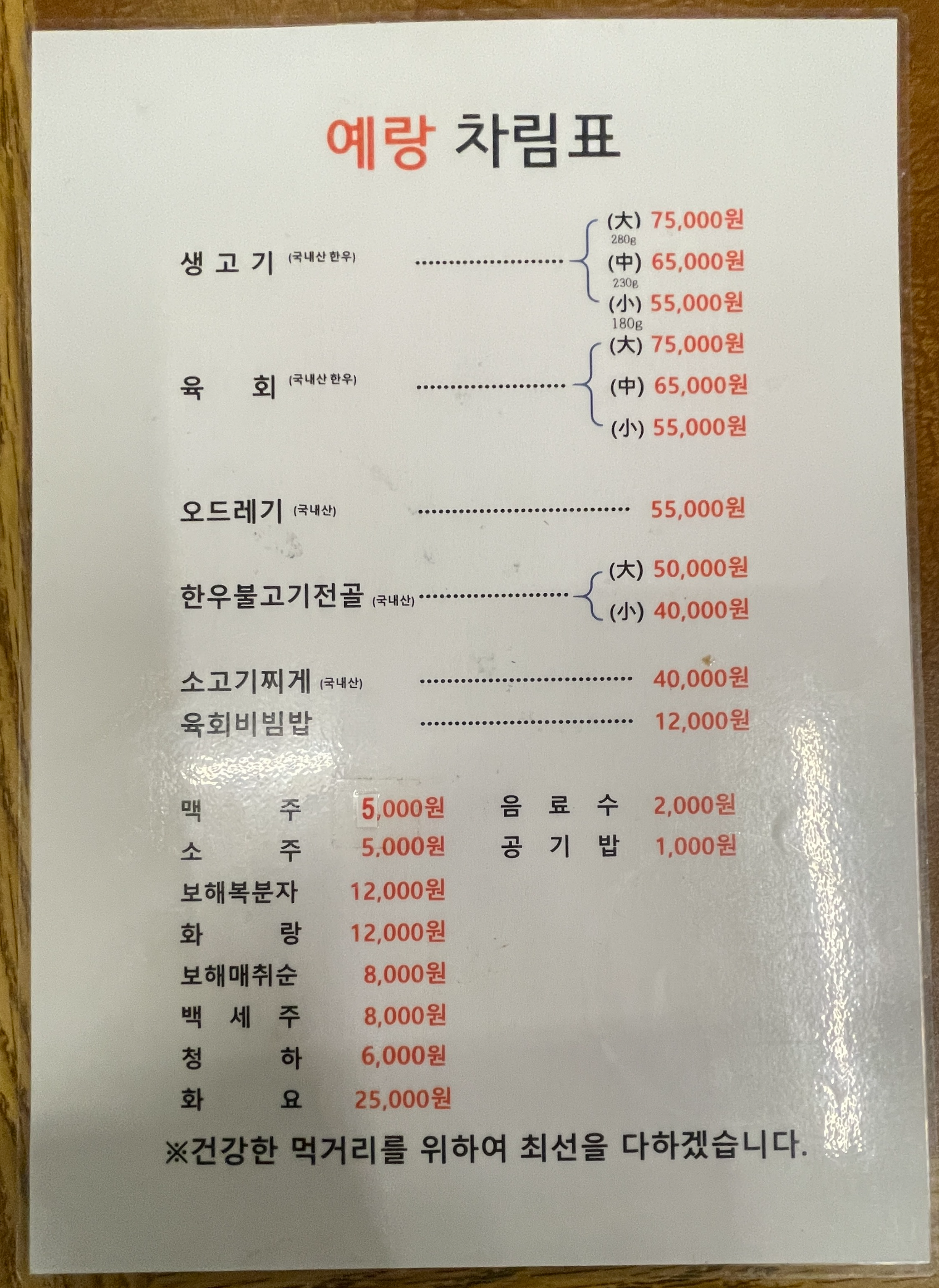 소주 / 맥주 각 5,000원