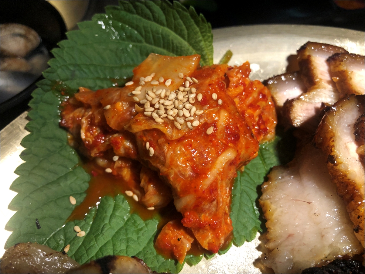보쌈김치에 숯불향으로 물든 보쌈 한 입.