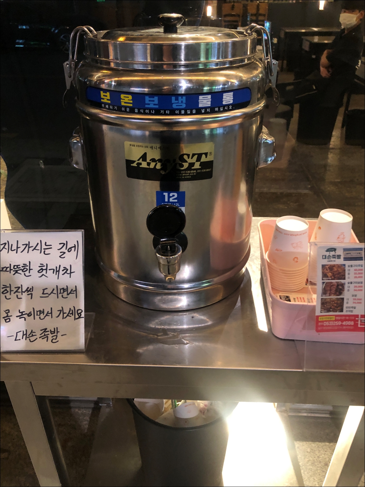 지나가는 길에 따뜻한 헛개차 한잔씩 하라고 준비해둔것인데 사장님의 배려가 좋다.