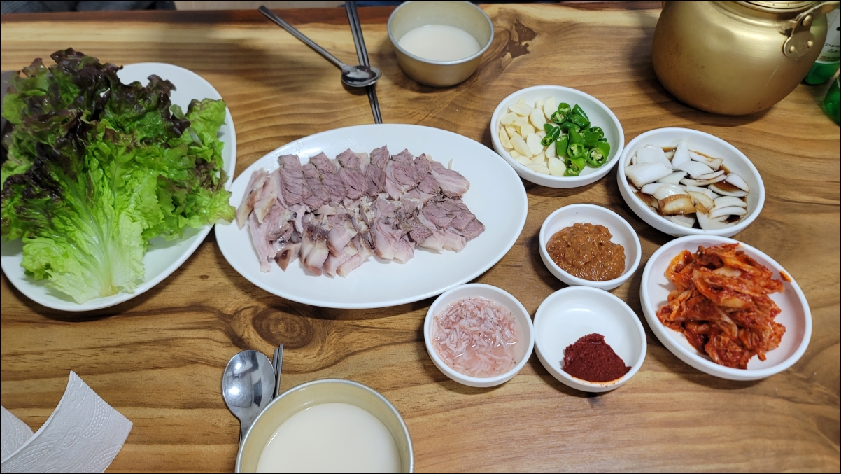 야들야들한 수육을 상추에 쌈싸서 아주 맛있게 먹었습니다.