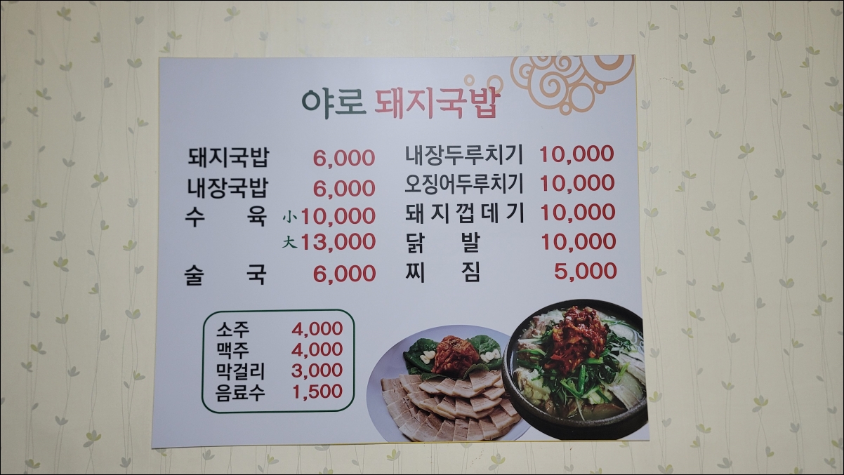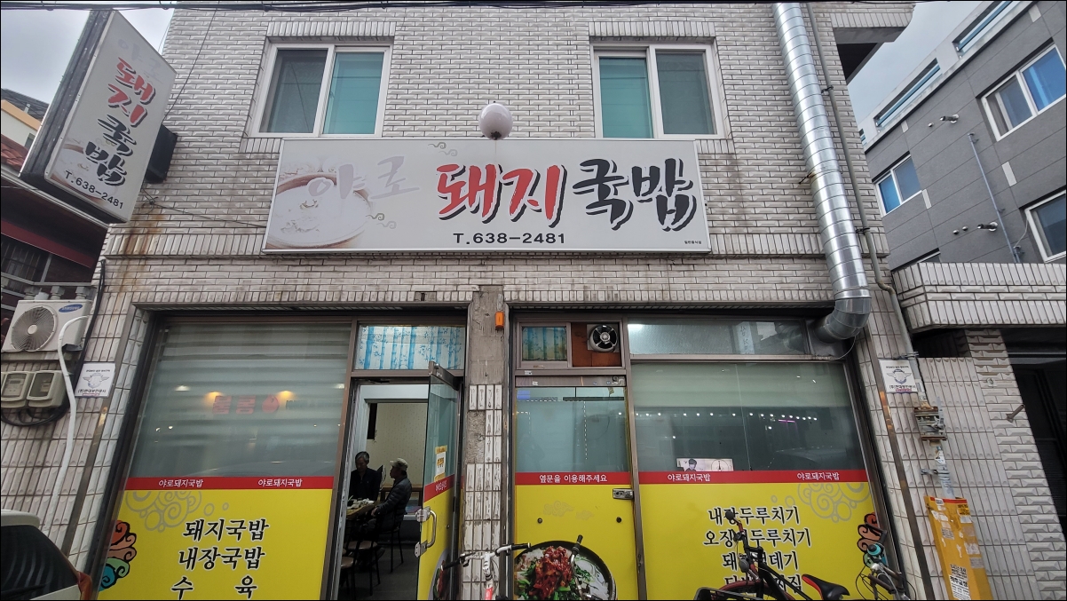 걸어가면서 보이는 간판에는 야로는 보이지 않고 돼지국밥 네 글자만 보였습니다.