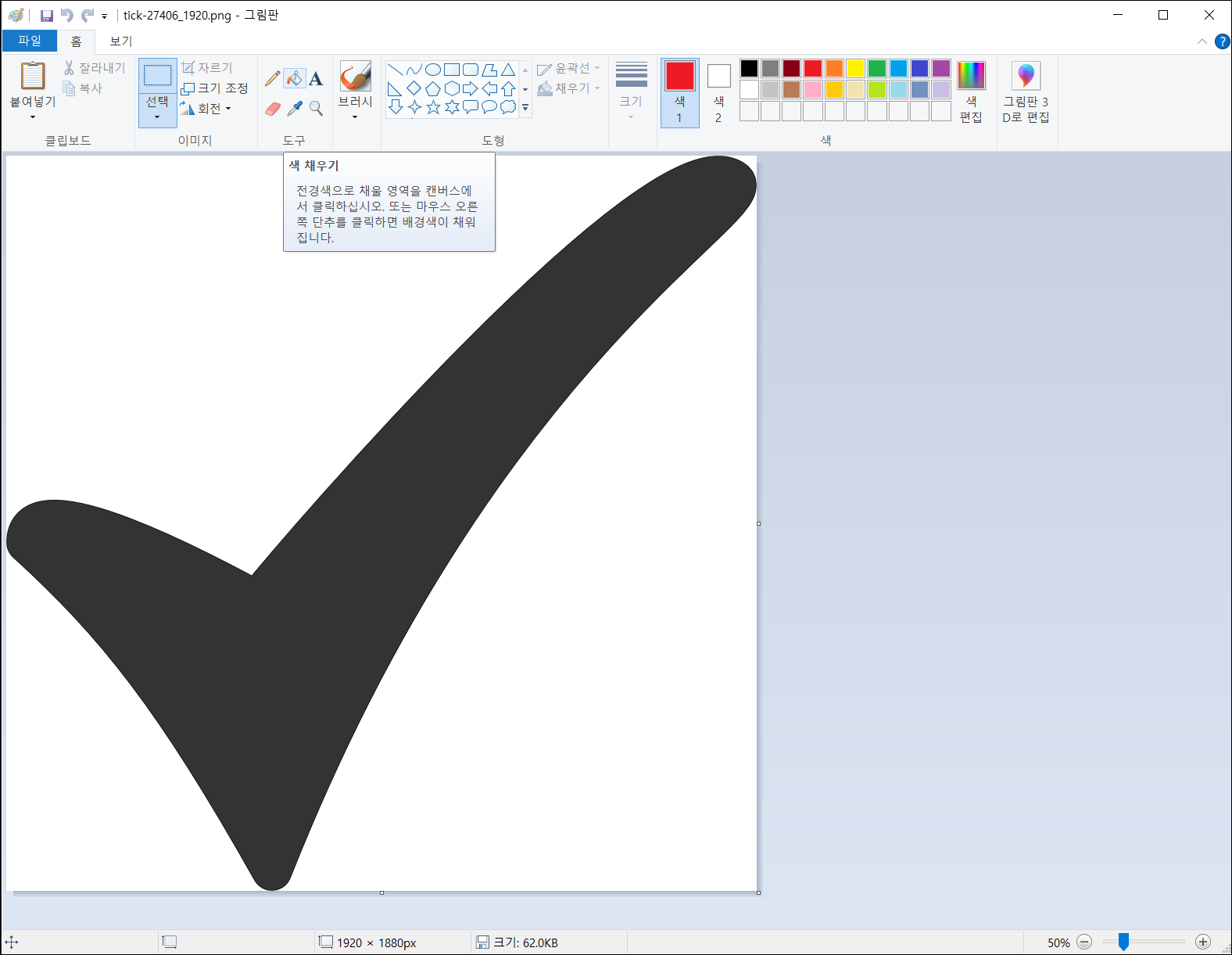 그림 1 처럼 짙은 회색 체크 이미지를 가지고 있는데, 빨간색이 없으면 일단 그림판에서 그림 1을 불러옵니다.
