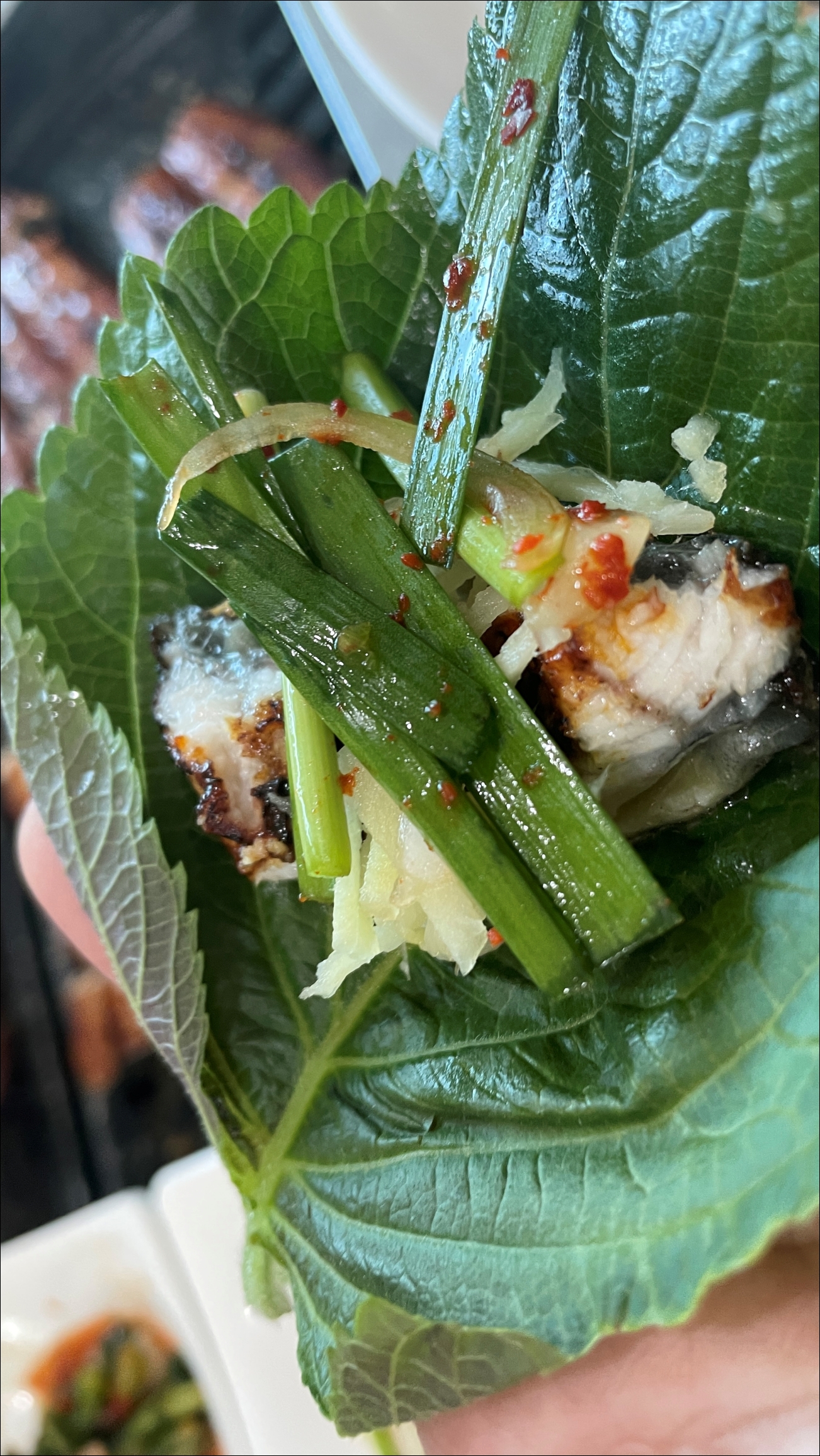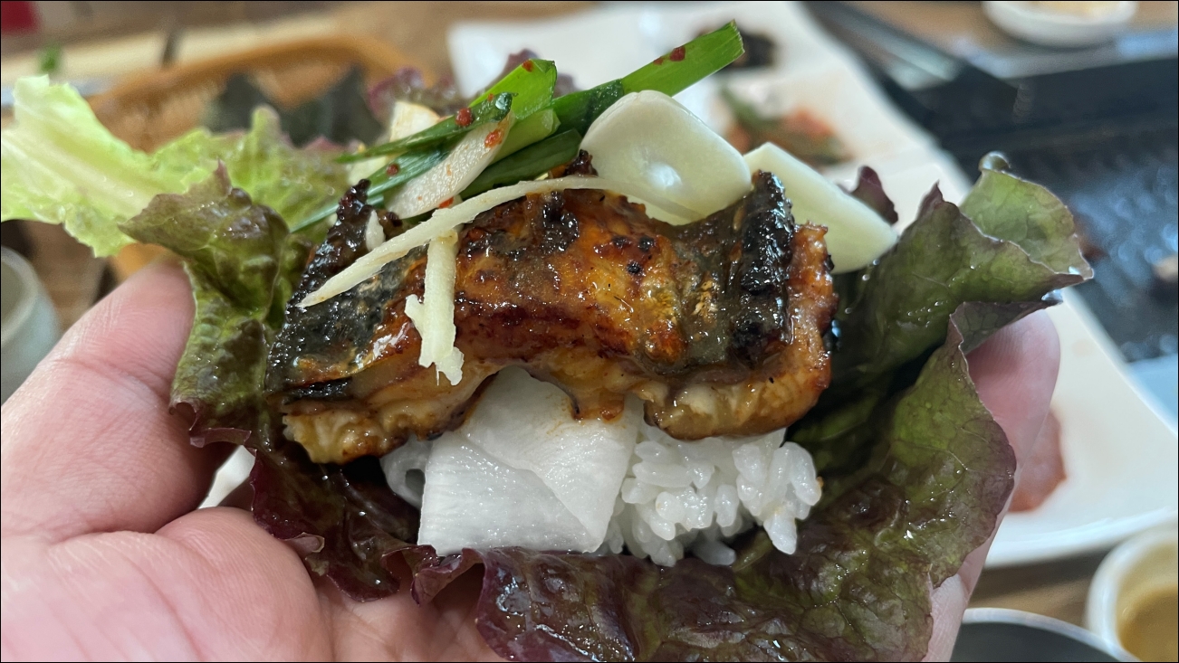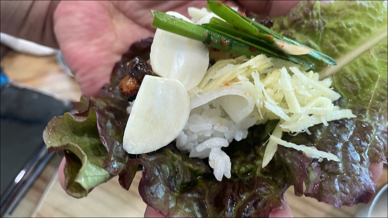 장어맛이 좋길래, 친구에게 쌈싸는 영상을 찍어달라고 했습니다.