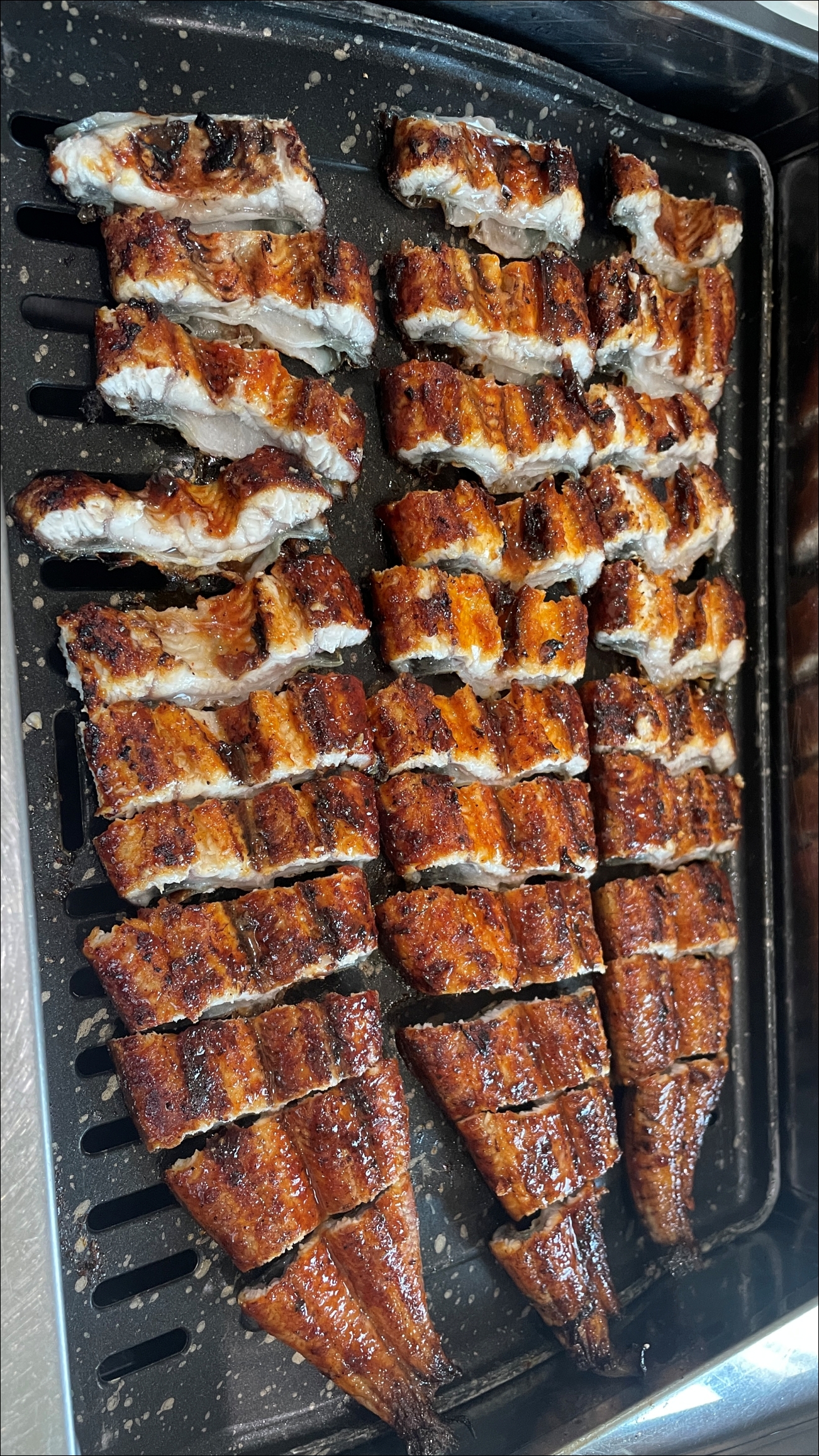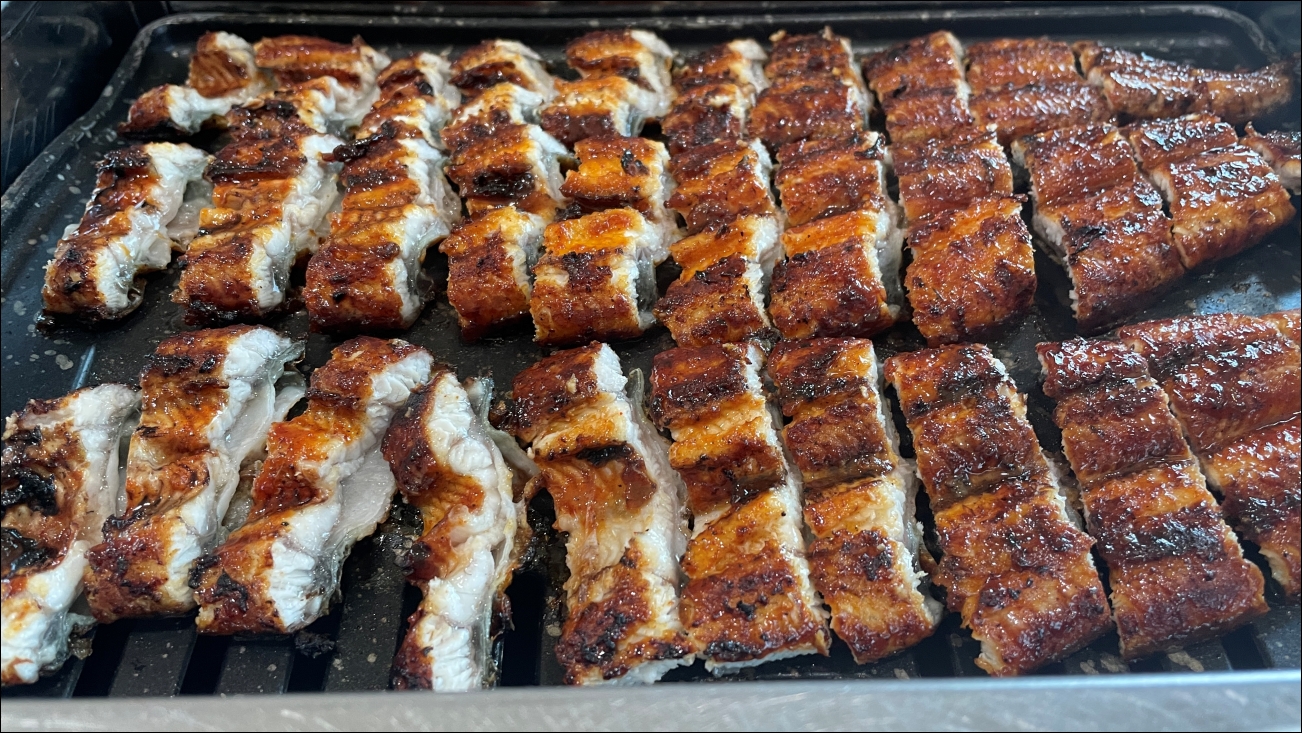 불판에 나란히 구워져나오는 장어