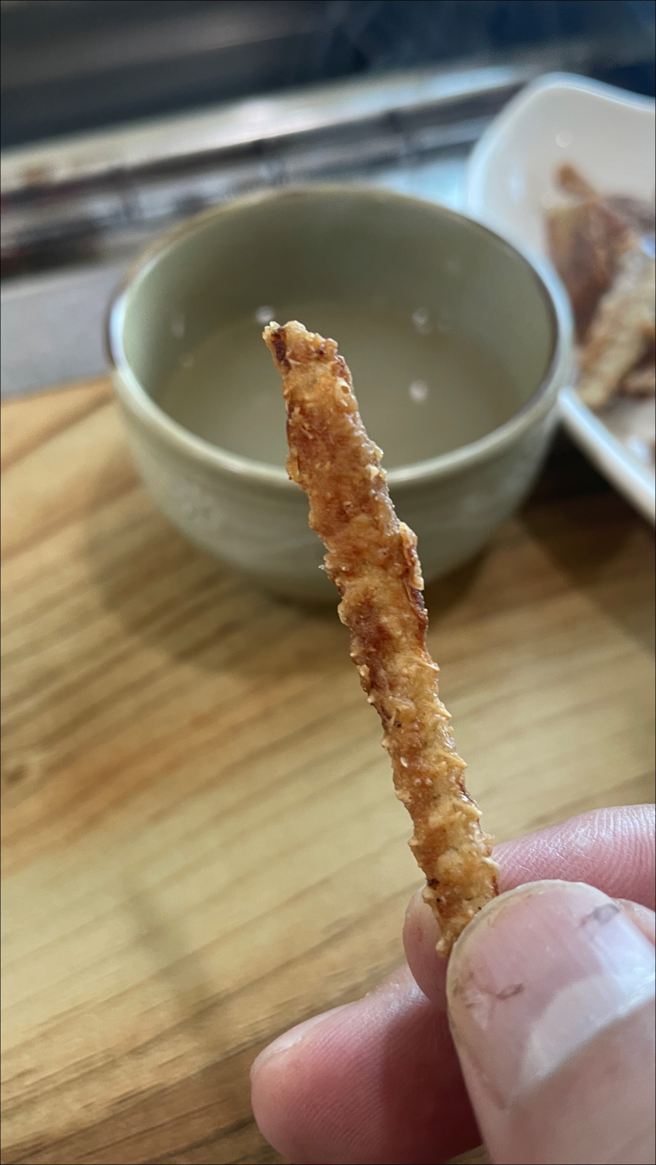 그리고 장어뼈 튀김과 육수가 나왔는데