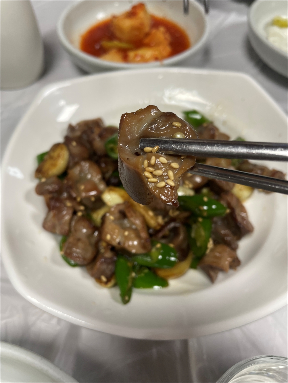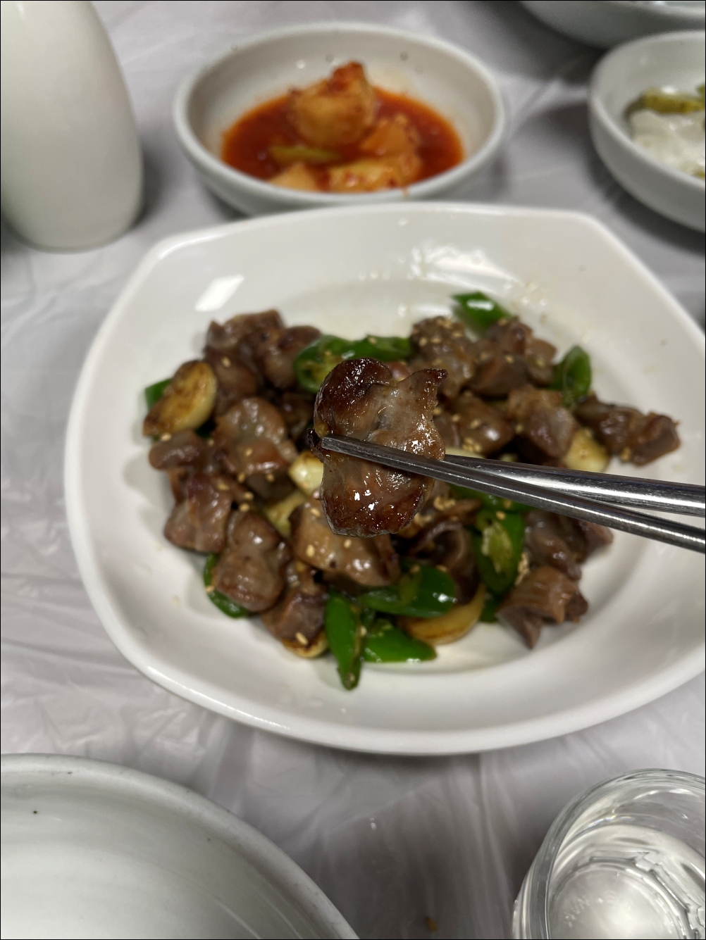 반찬은 똥집을 포함해서 5가지. 고추, 깍두기 등 반찬은 셀프리필코너가 마련되어 있어서 스스로 리필할 수 있었다. 먹으면서 깍두기가 입맛에 맞아 2번 더 리필해서 먹었다.