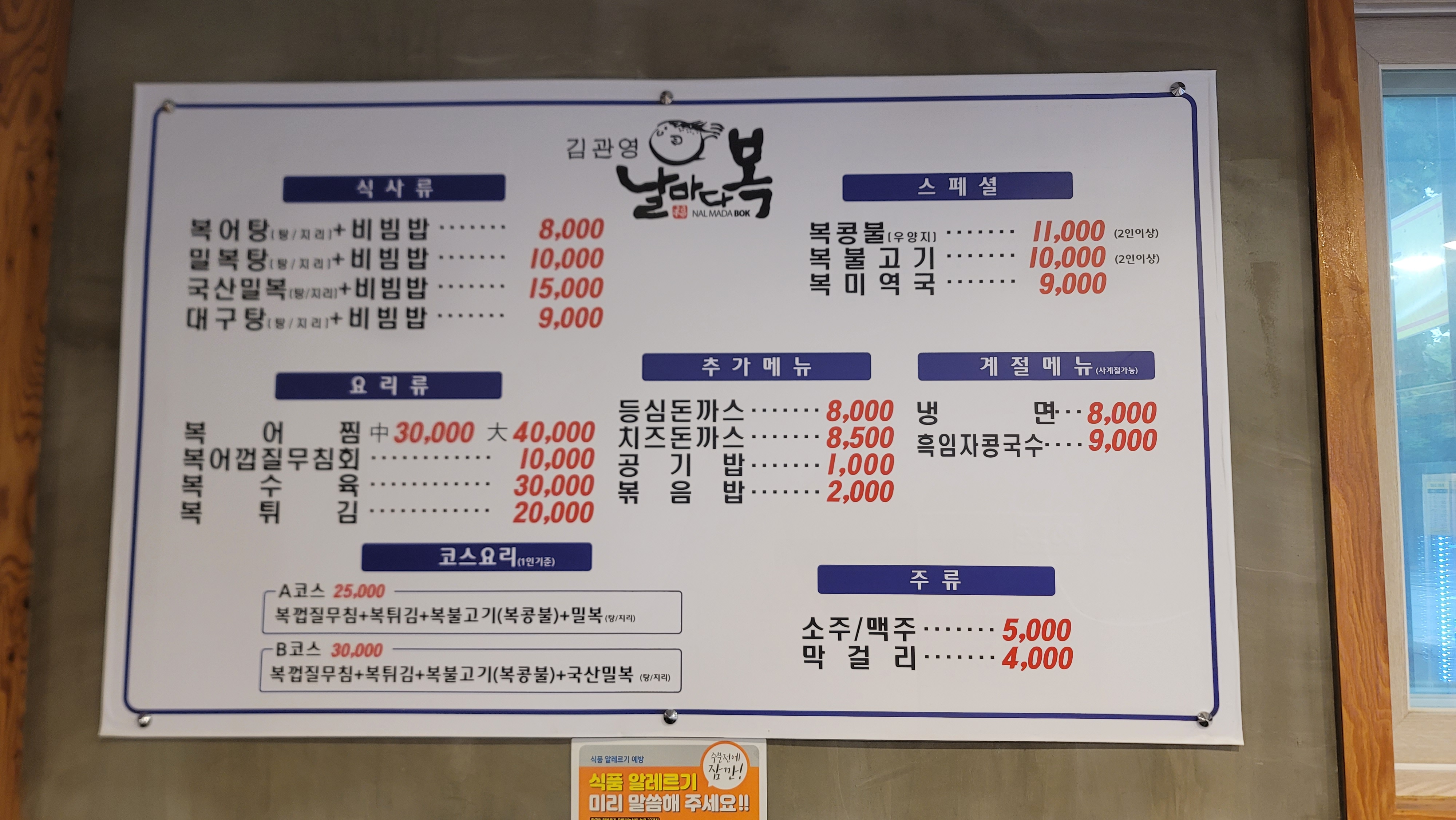 나는 국산밀복(까치복) 2인분(지리, 맑은탕)을 포장 주문했다.