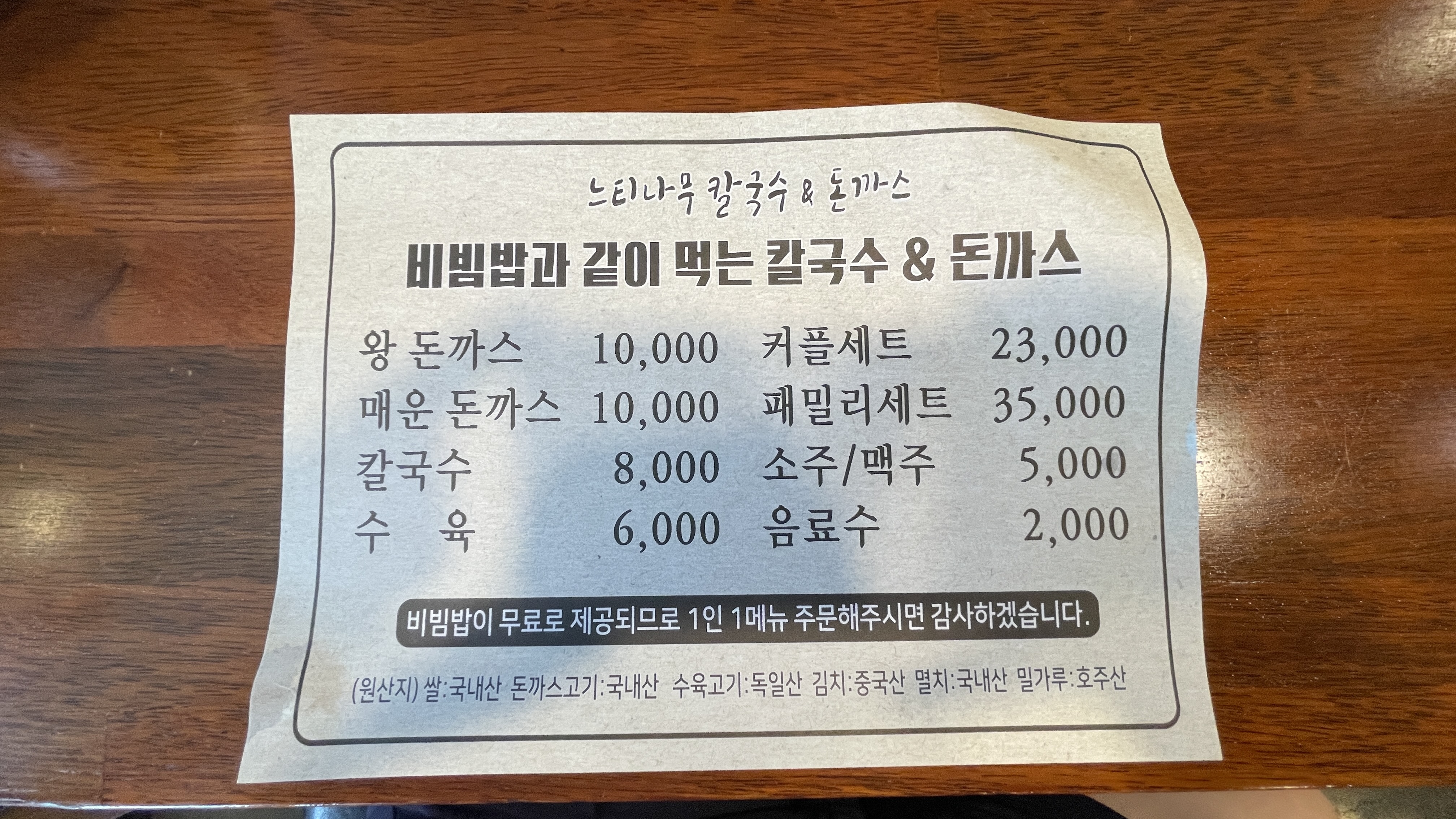 봉덕동 느티나무 칼국수 & 돈까스가 유명한 이유는 돈까스를 주문하면 빈 그릇을 하나 주는데, 비빔밥을 무제한으로 먹을 수 있기 때문입니다.