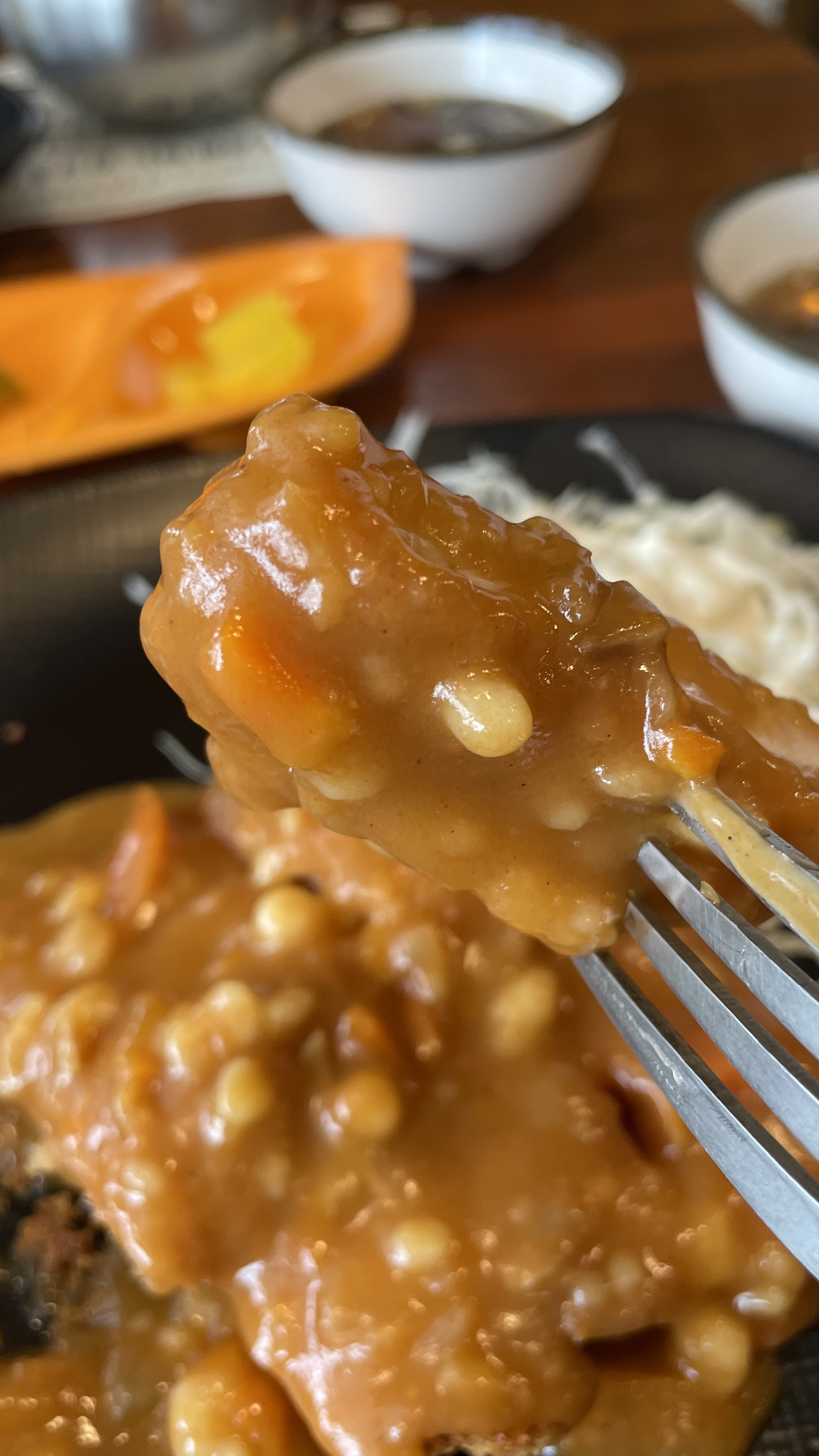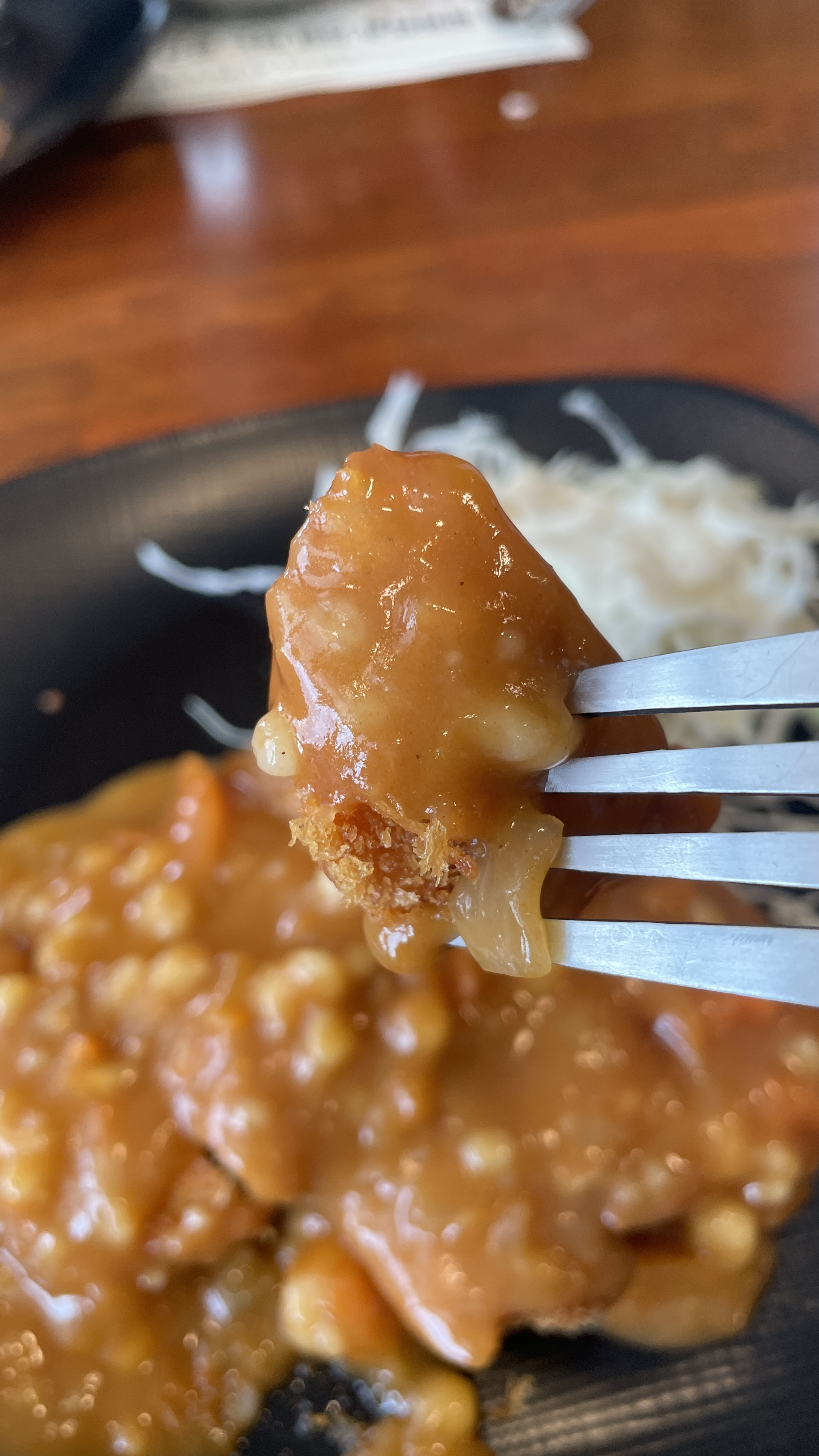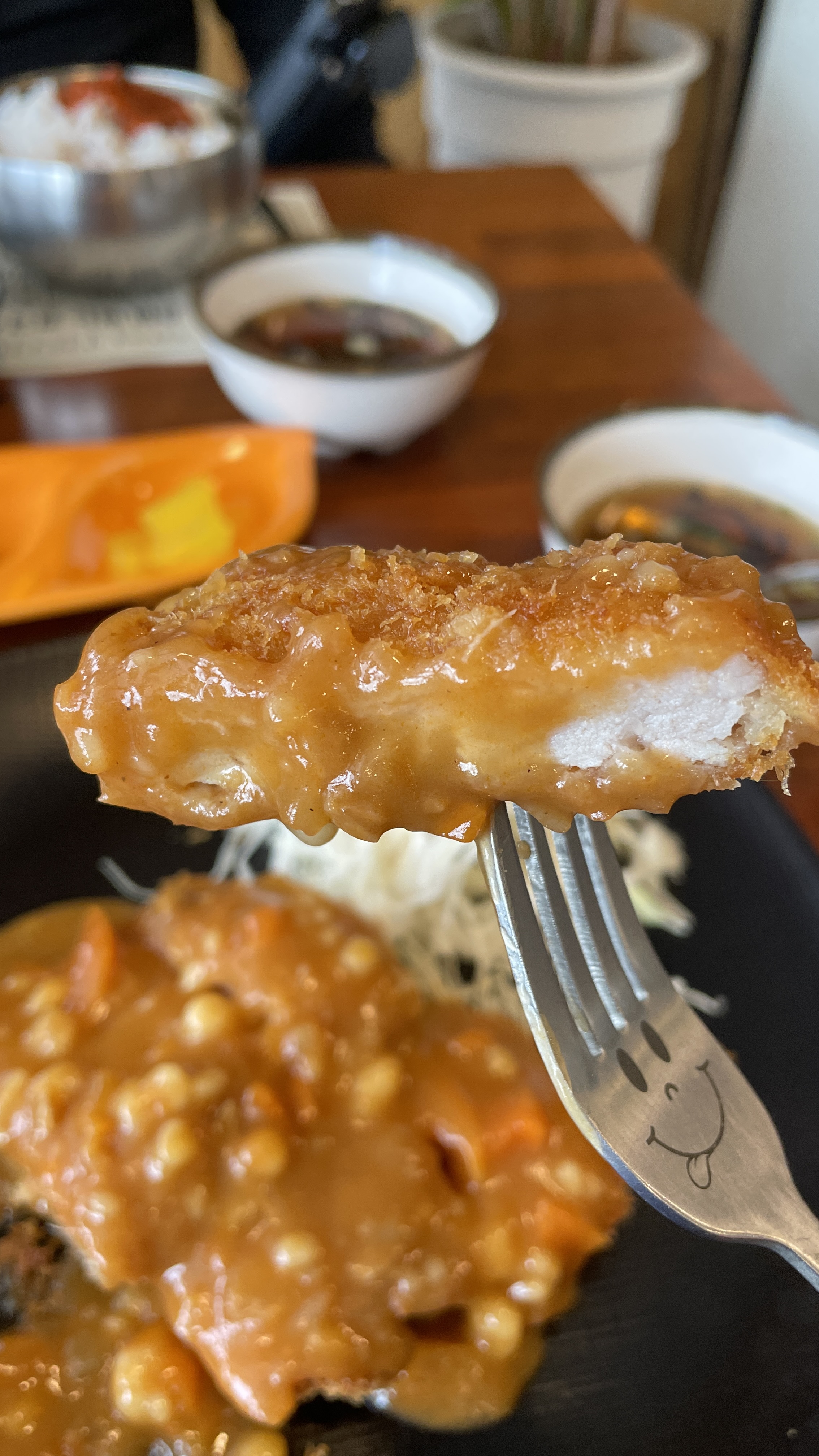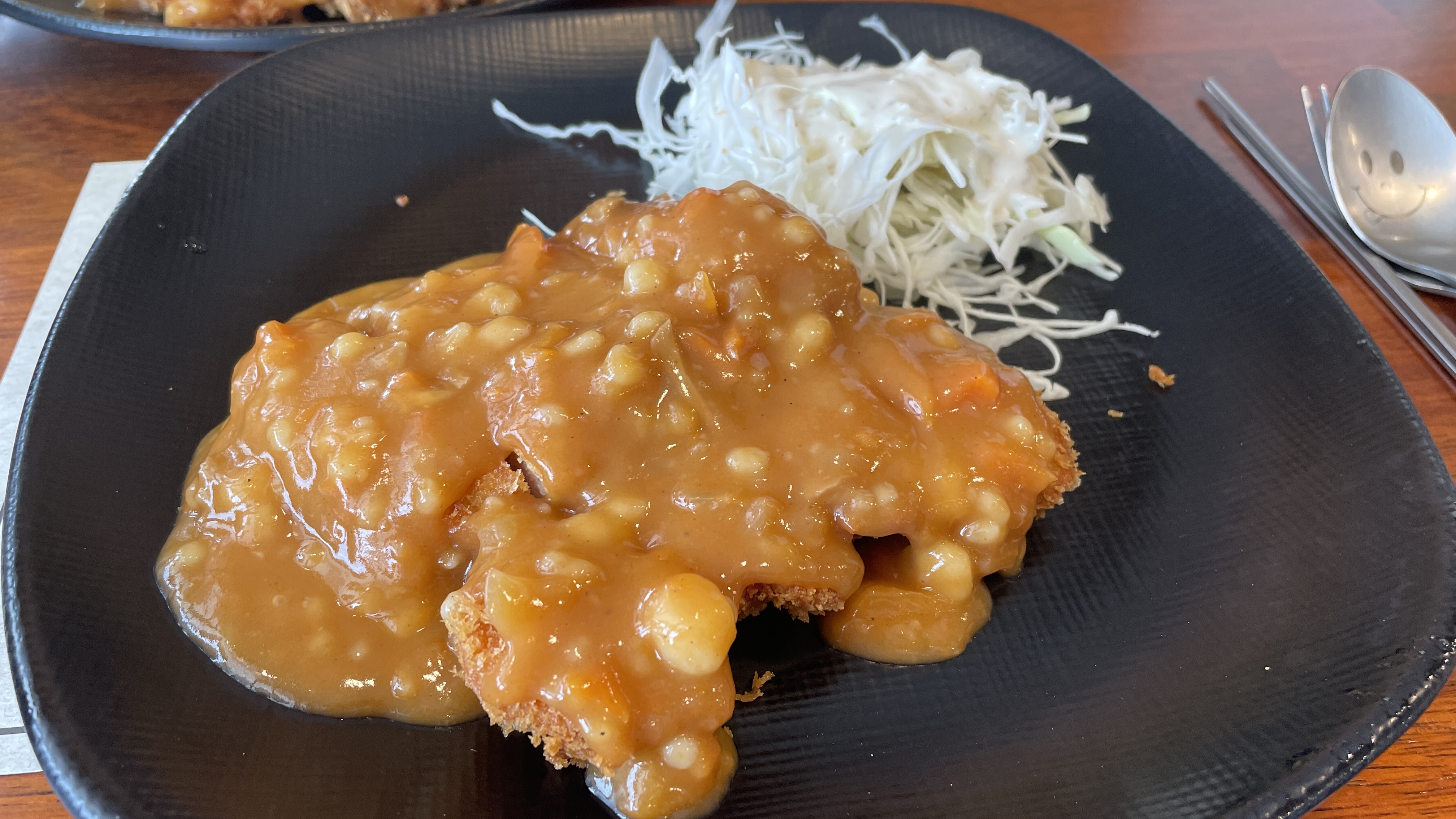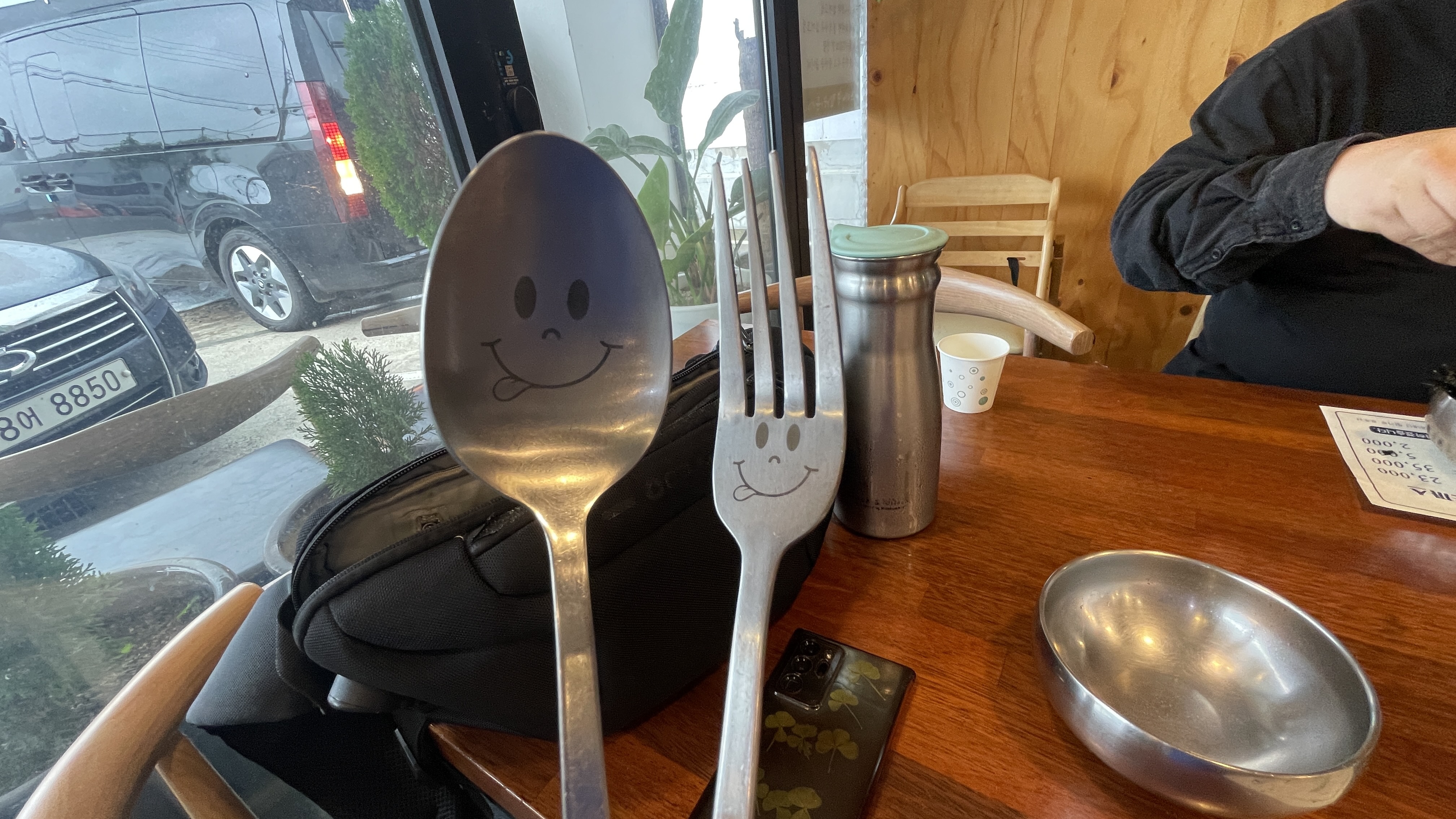 느티나무 돈까스에서는 칼을 주지 않습니다. 이미 잘라져서 나오기 때문입니다. 비빔밥을 먹기 위한 숟가락과 돈까스를 먹기 위한 포크만 있으면 해결된답니다.