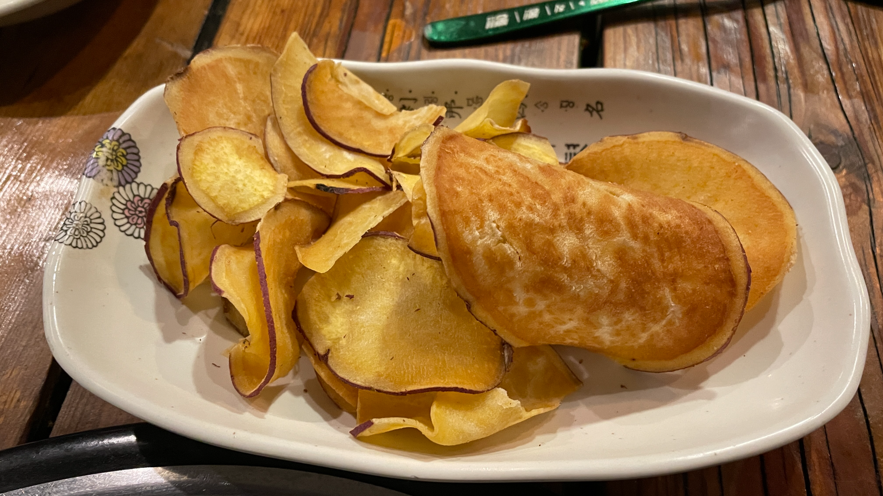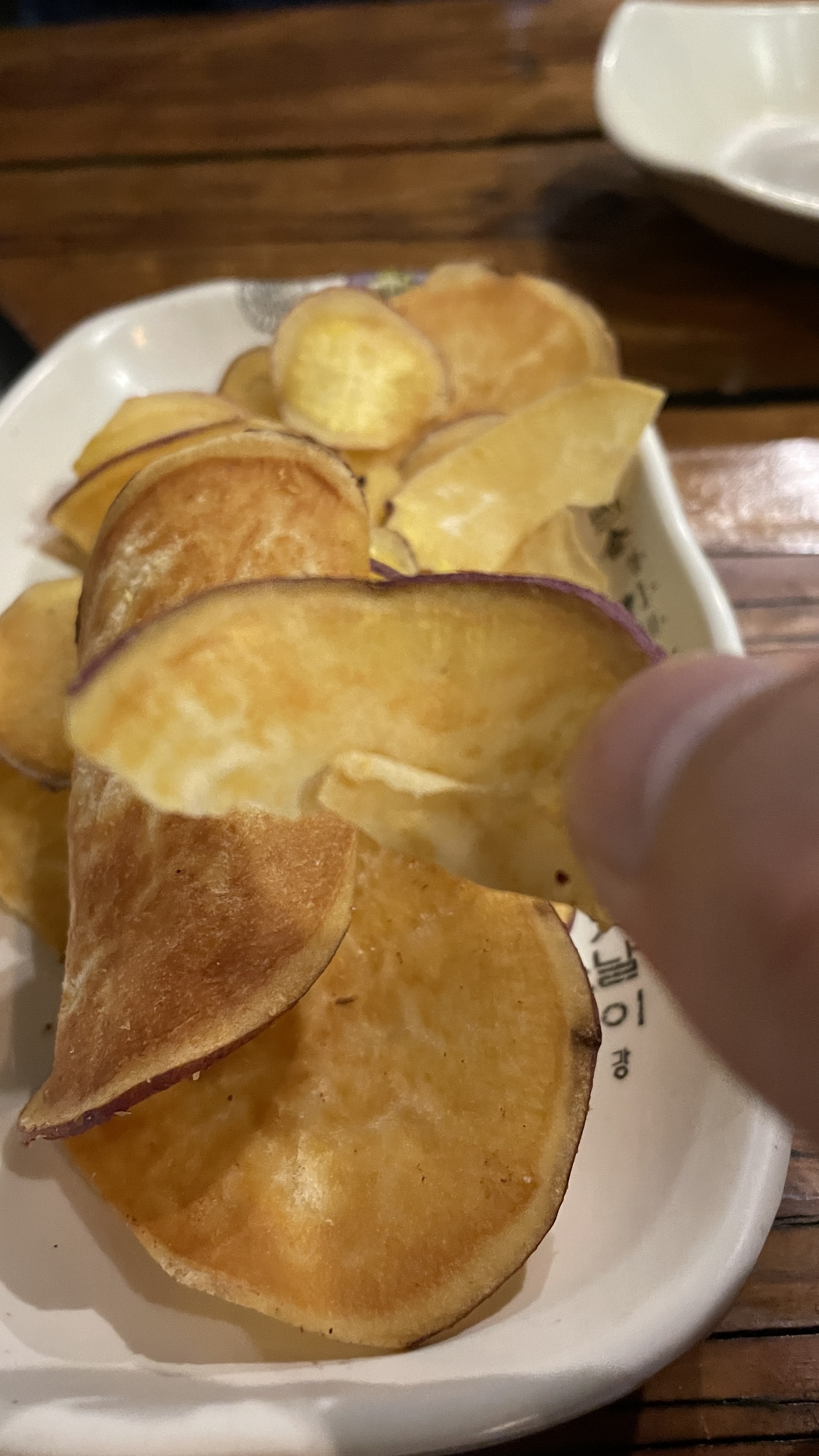 대봉포차의 기본 안주인 고구마슬라이스 튀김.