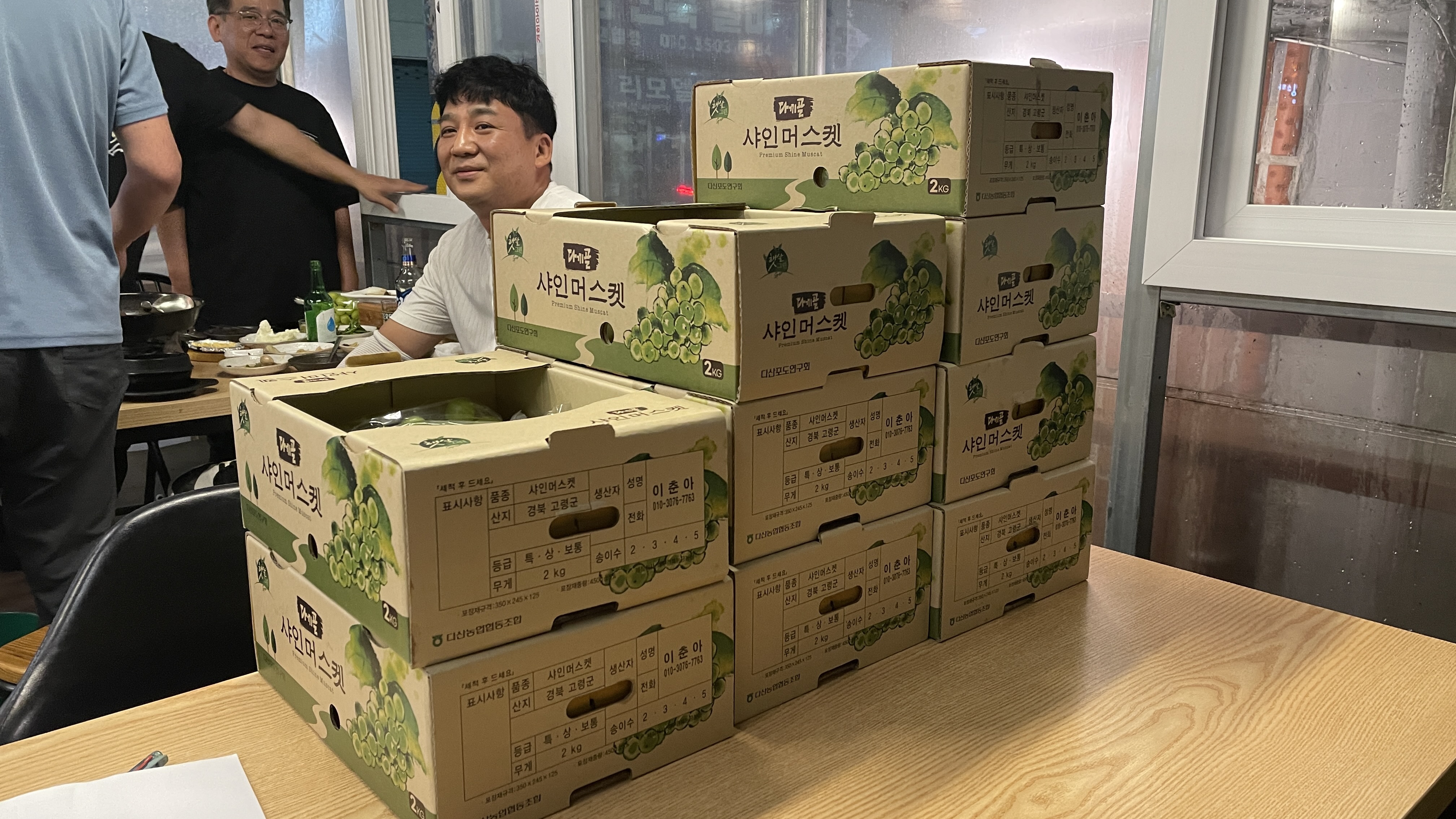 31회 중에 샤인머스켓을 직접 키워서 가져온 후배가 있었는데요 이걸 또 초대회장이 구매해서 참여한 모든 동기들에게 나눠주는 훈훈한 모습도 볼 수 있었습니다.