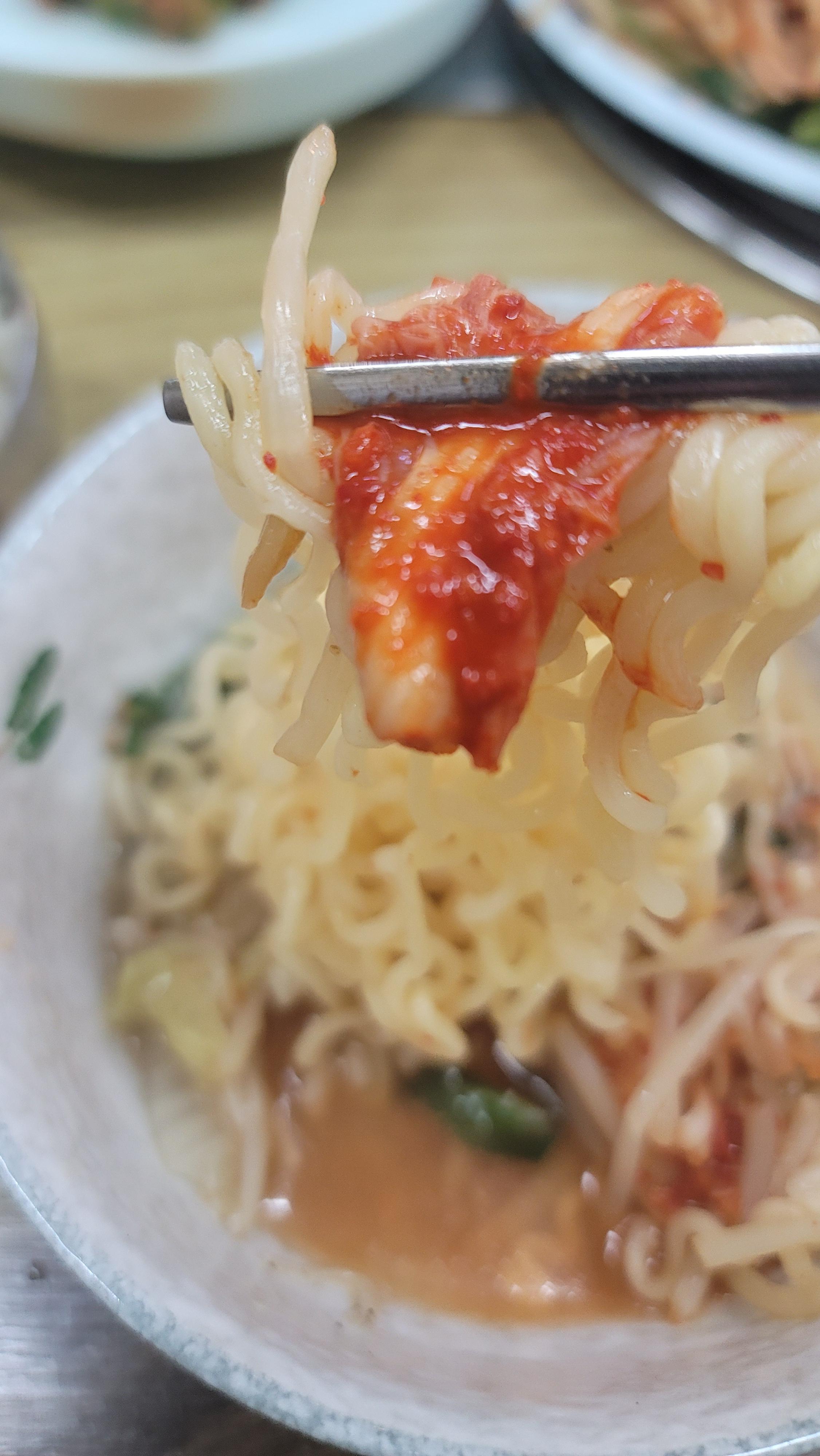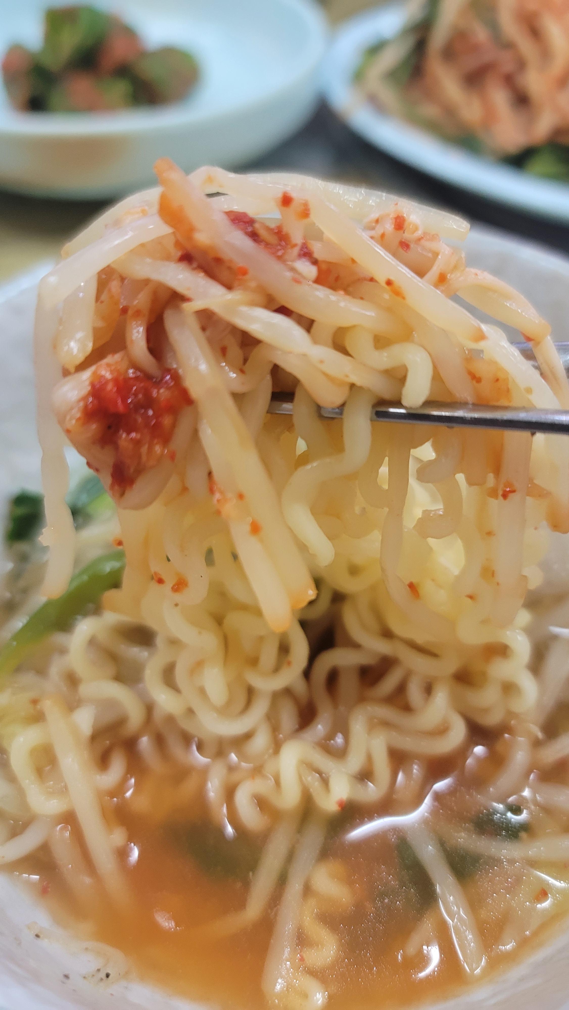 고들고들한 라면에 김치는 환상의 짝궁이었습니다.