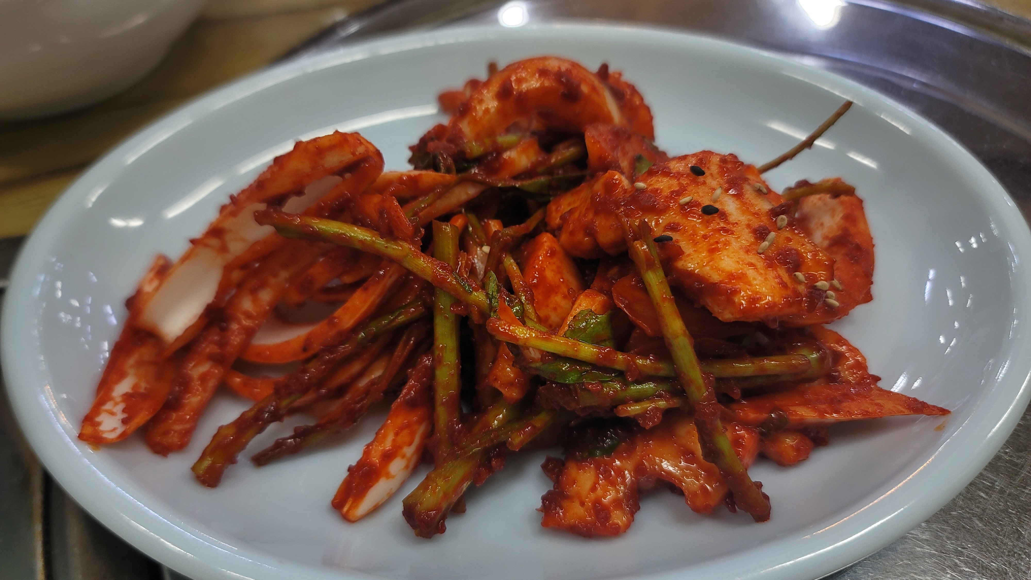 그리고 입맛을 돋우게하는 매콤 대왕 오징어 무침회가 대명동 대해복어의 반찬입니다.