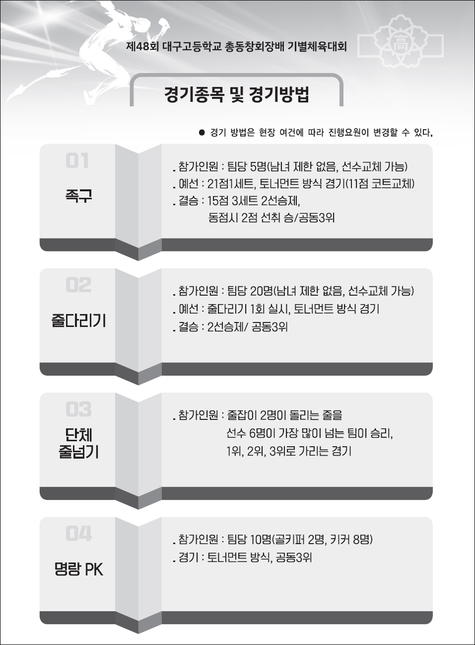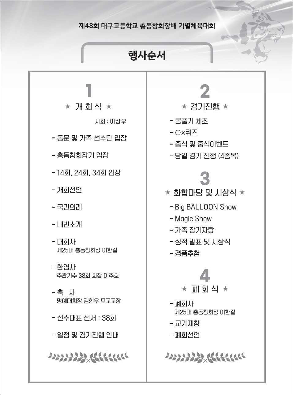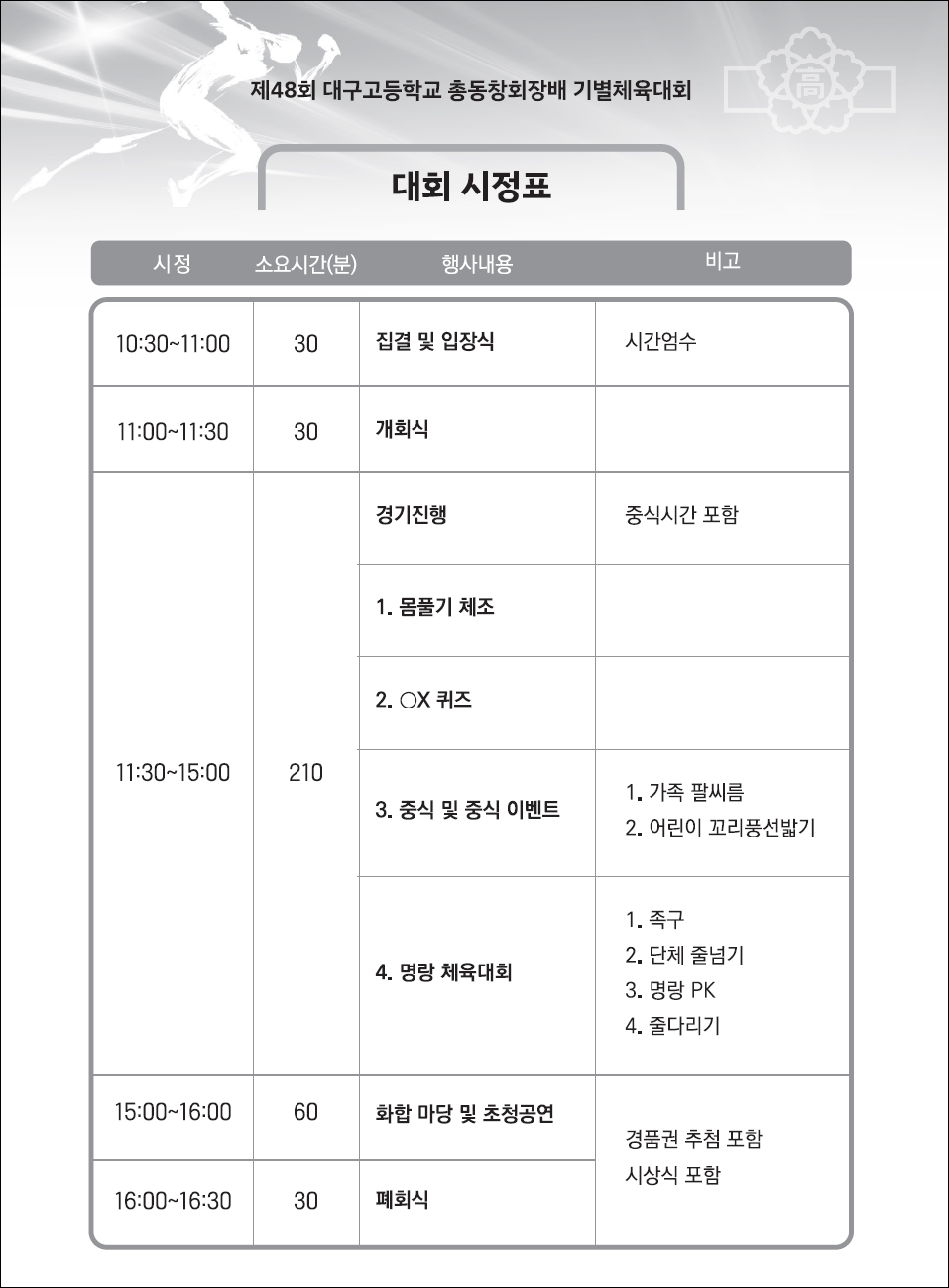 제48회 대구고등학교 총동창회장배 체육대회 운영 안내