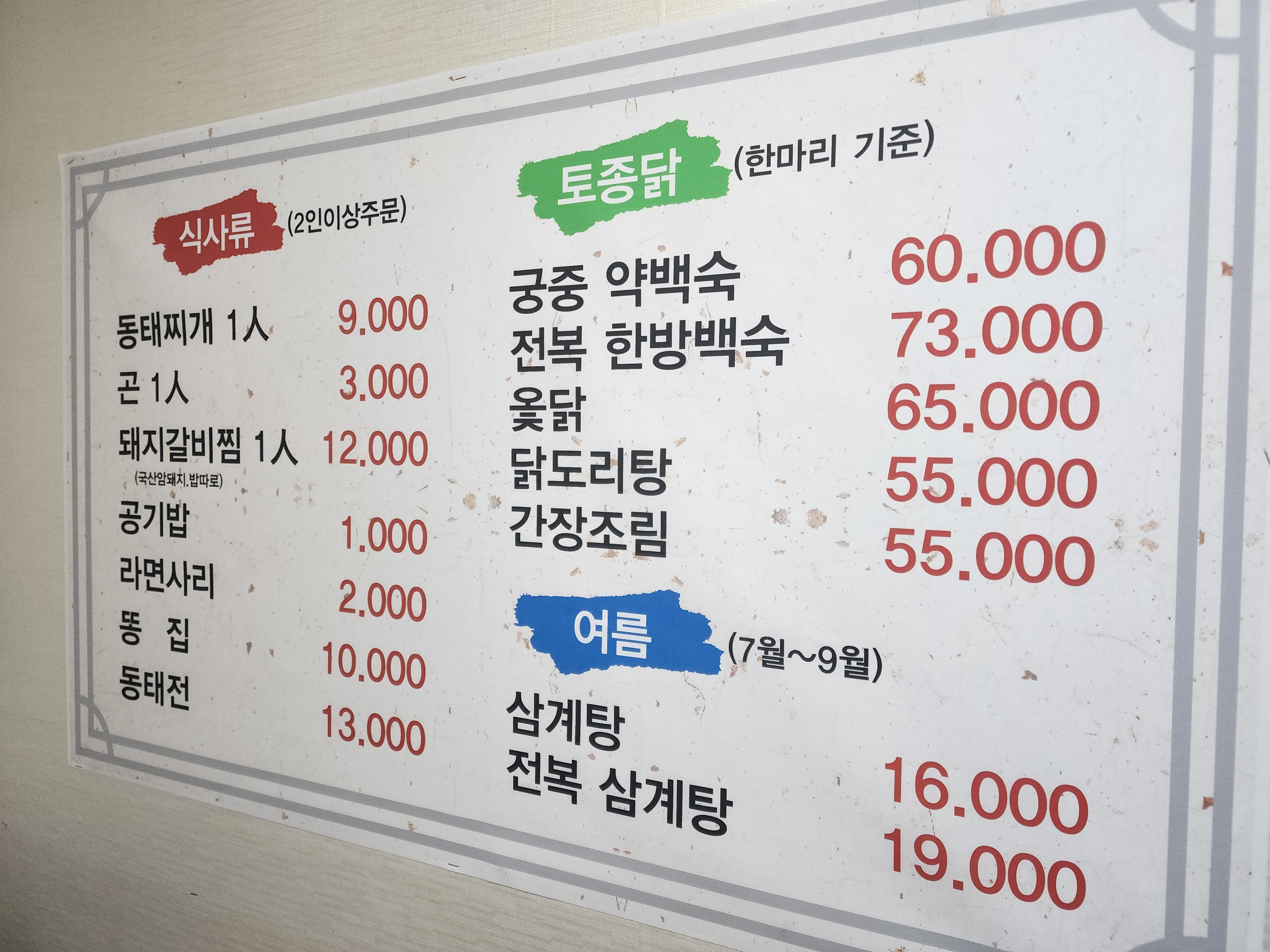 동태찌개 1인 9,000원!!!