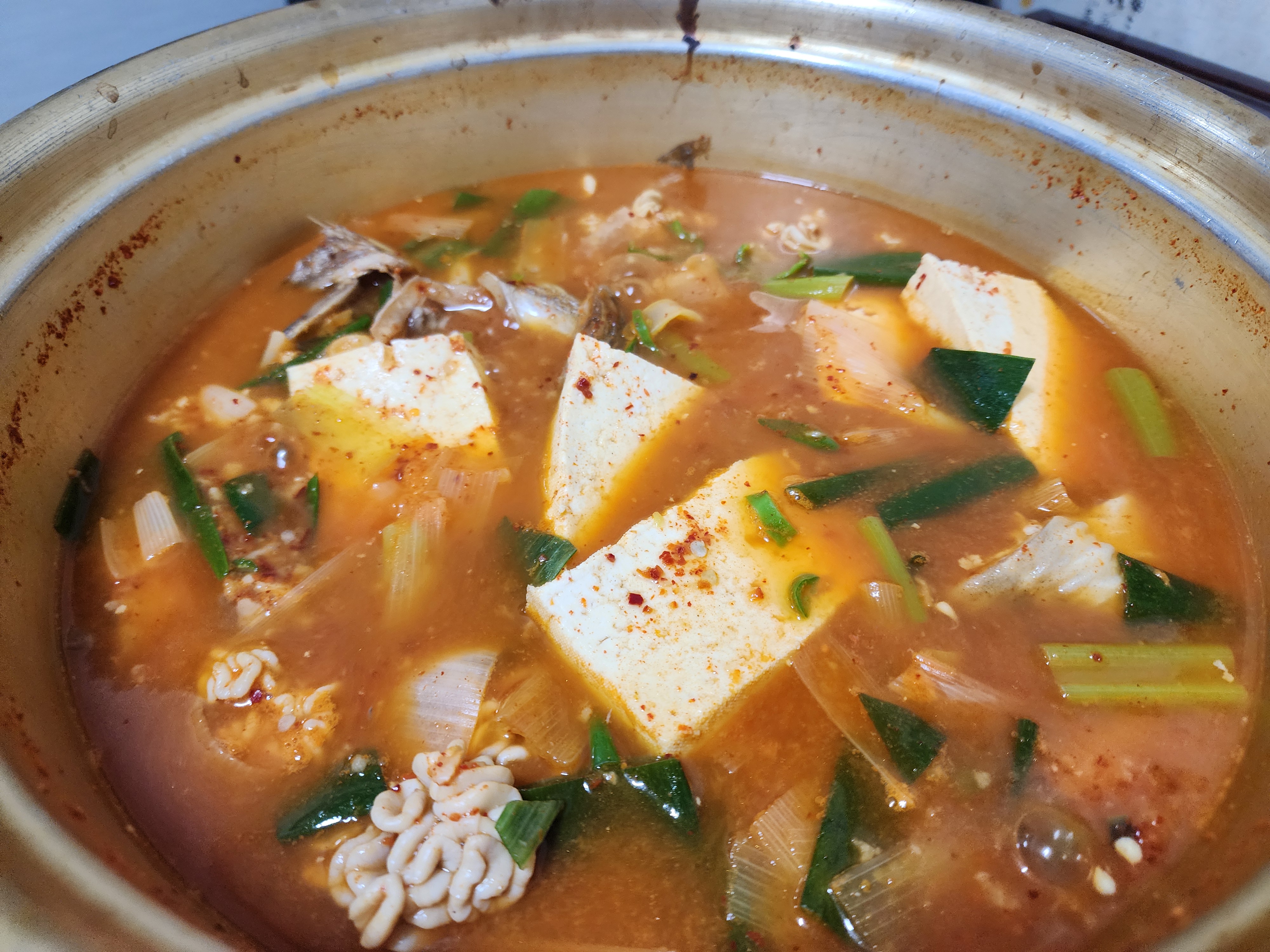 제 경험상 돼지찌개, 두부찌개, 갈치찌개, 동태찌개 등 사장님은 드셔도 됩니다라고 하지만 저는 약 3~5분 정도 더 끓이는 편입니다. 들어간 식재료와 고추가루가 더 우러나게 하기 위해서는 좀더 팔팔 끓여야 한다는게 저의 지론입니다.