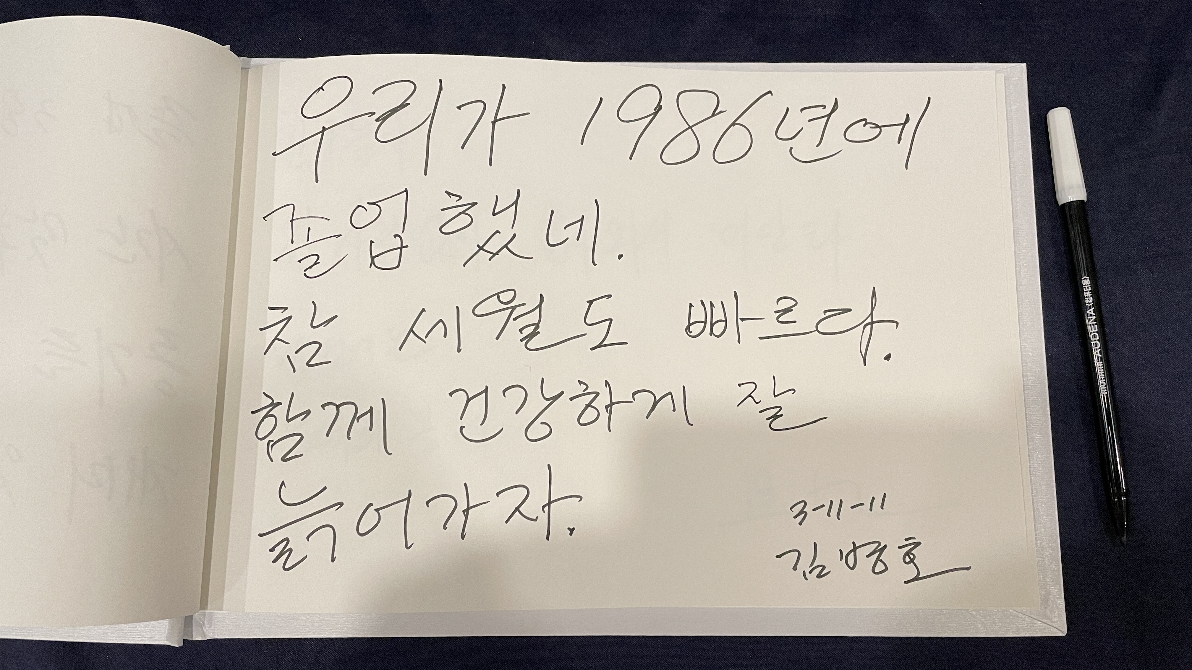 입장하시면서 방명록을 글을 남기시던데, 이 또한 추억이 될 것 같더군요. 저희 동기회에서도 내년부터 따라 해봐야겠습니다. 좋은 것은 대물림하는 것이겠죠?