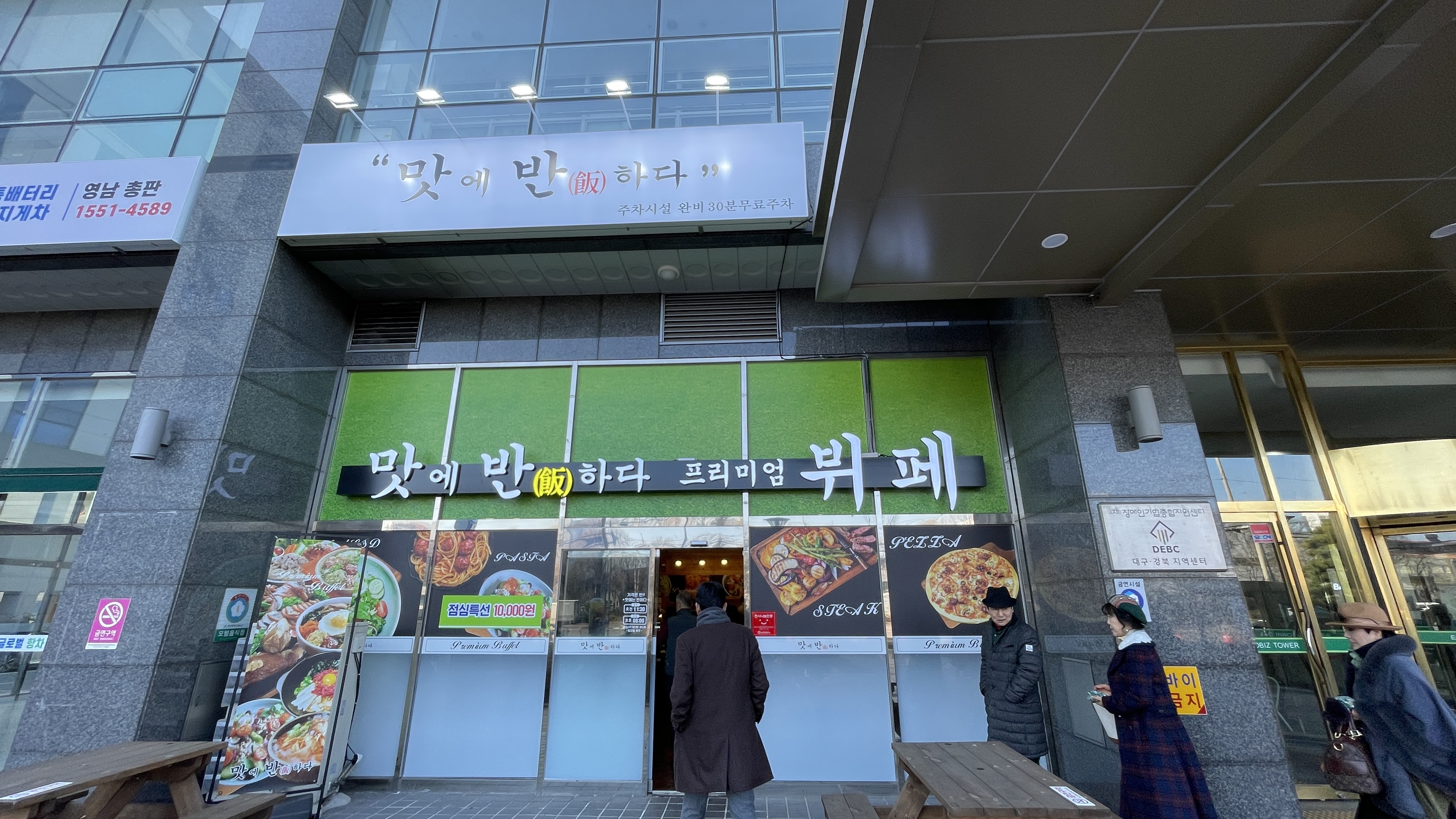 대구 달서구 계명대역 부근에 이앤씨이노비즈타워 1층에 있는 뷔페인데요, 같은 건물에 입주해 있는 선배가 아주 극찬을 하시길래 선배에게 놀러가서 점심을 해결하고 왔습니다.