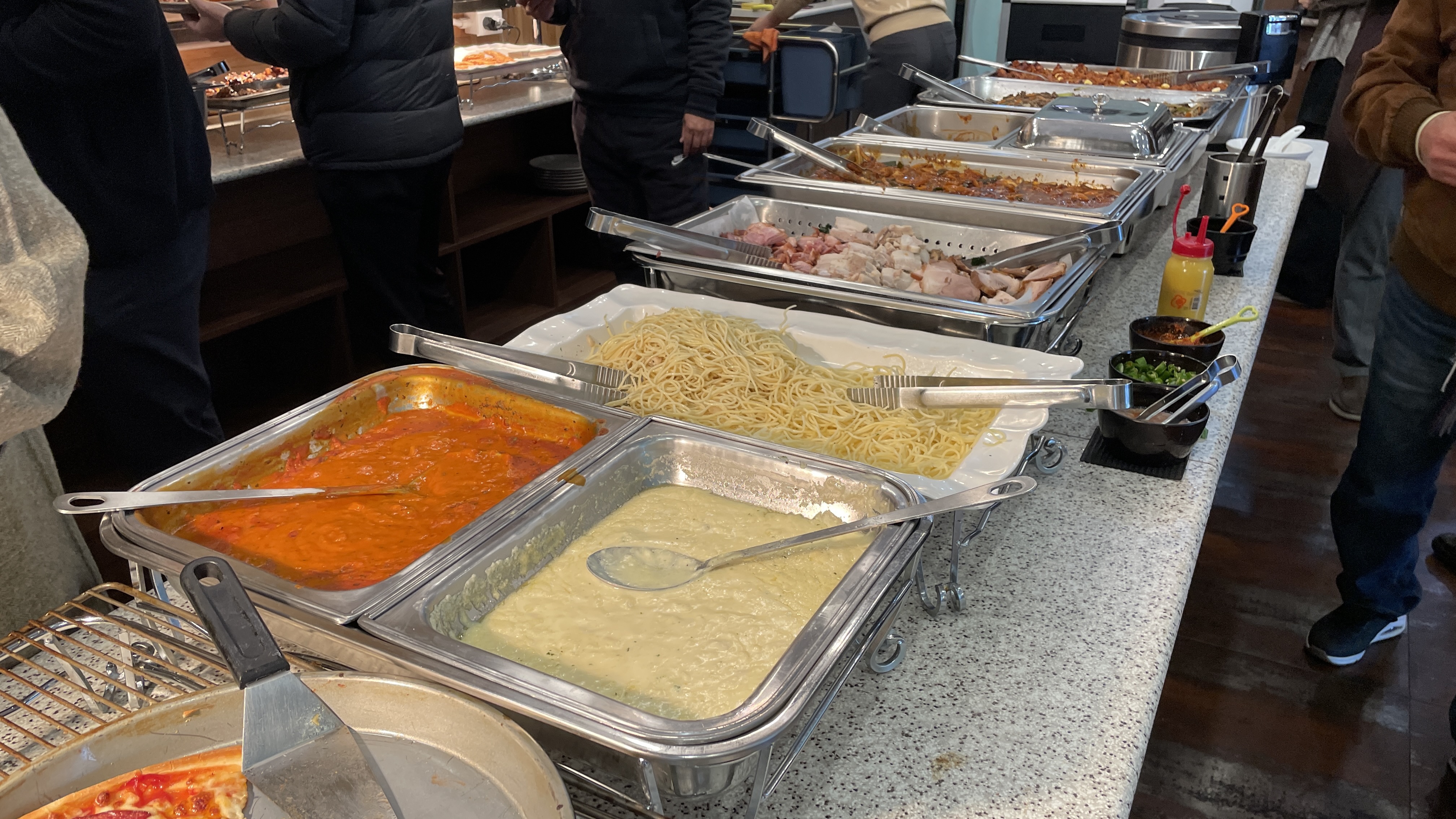 스파게티, 떡볶기, 피자, 순대, 납작만두 까지 눈이 호강했습니다.
