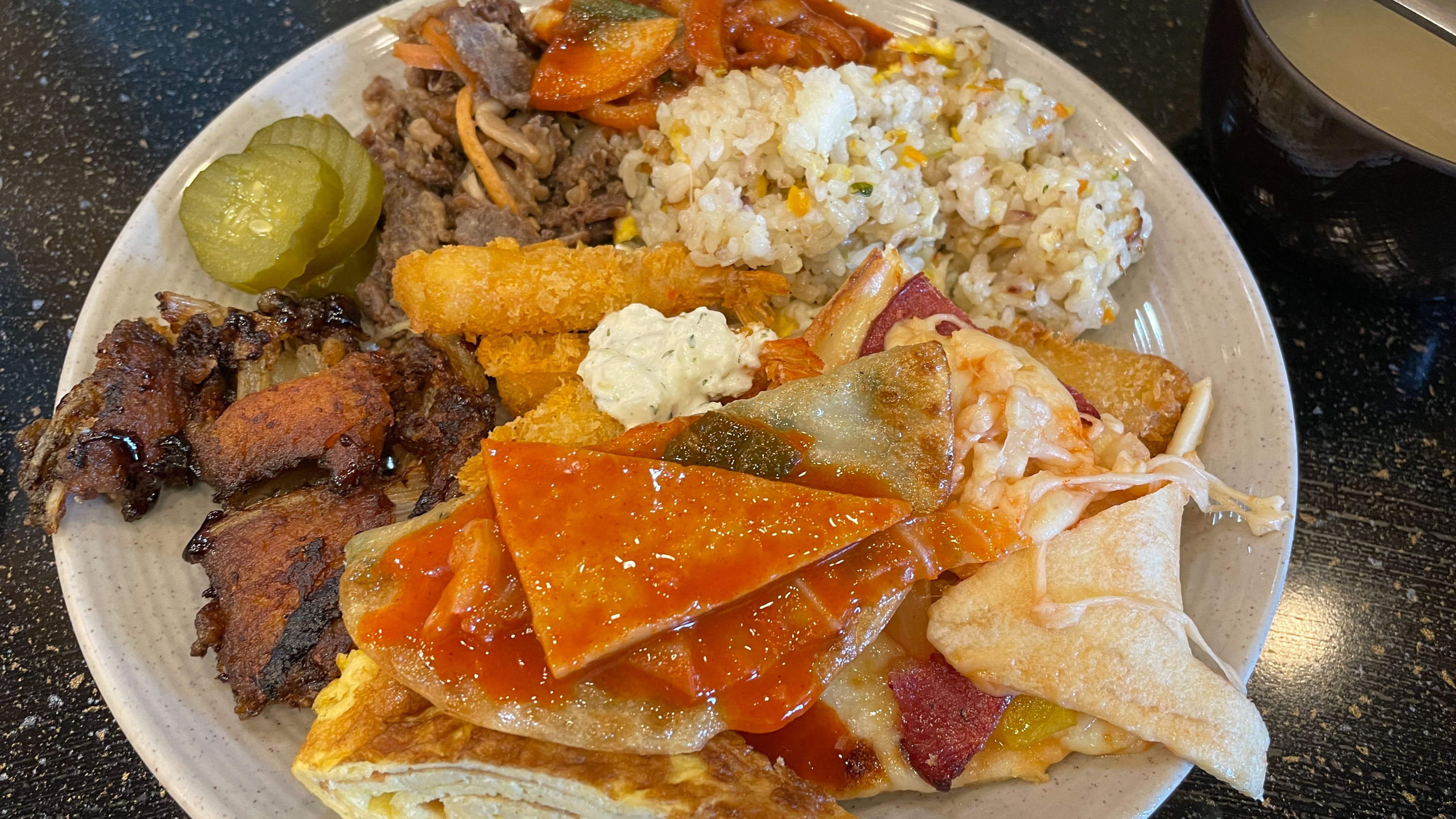 정말 먹고 싶은 것만 골라서 담았는데 접시가 가득했습니다.