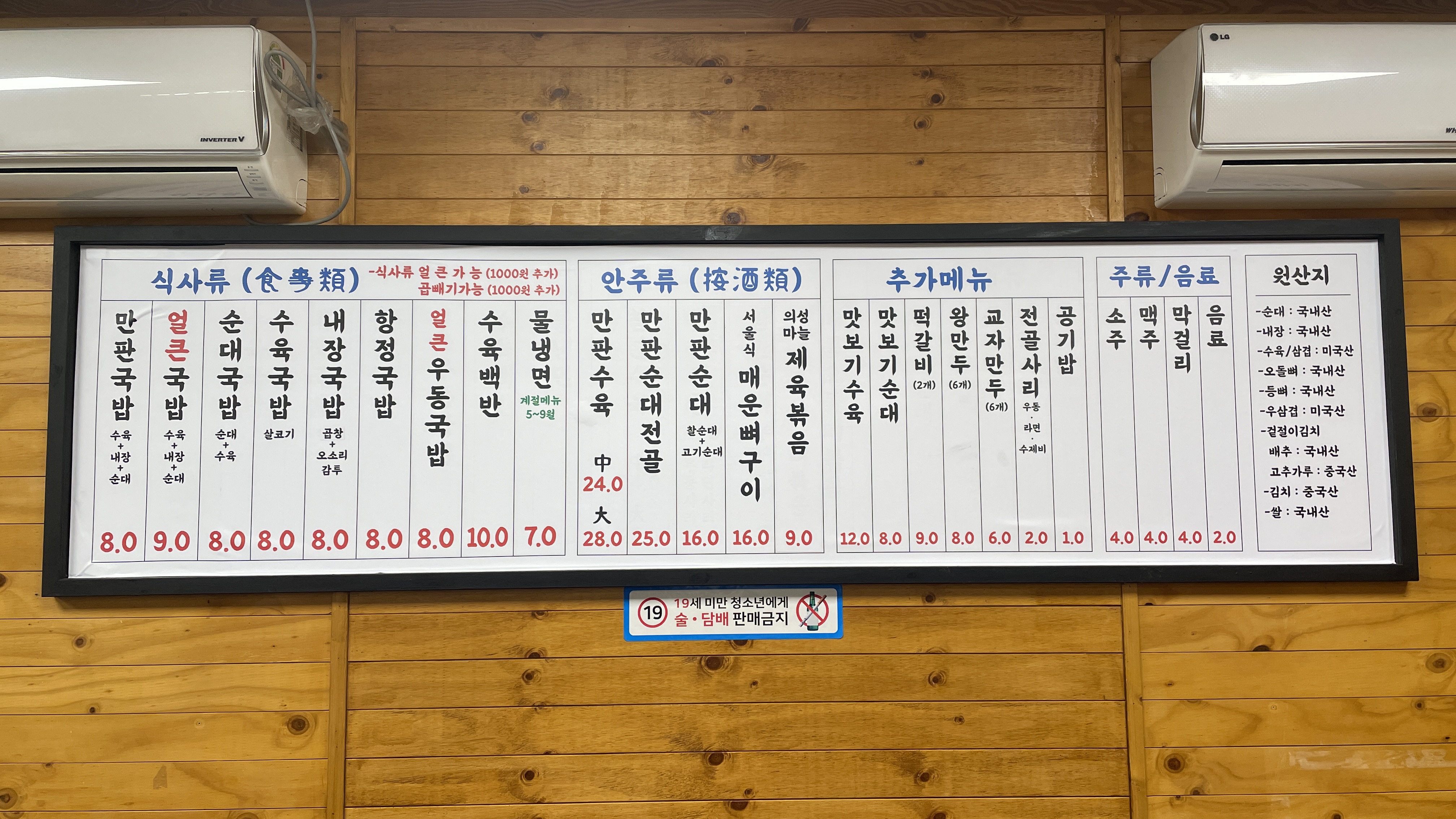얼큰국밥(수육 + 내장 + 순대) 9,000원