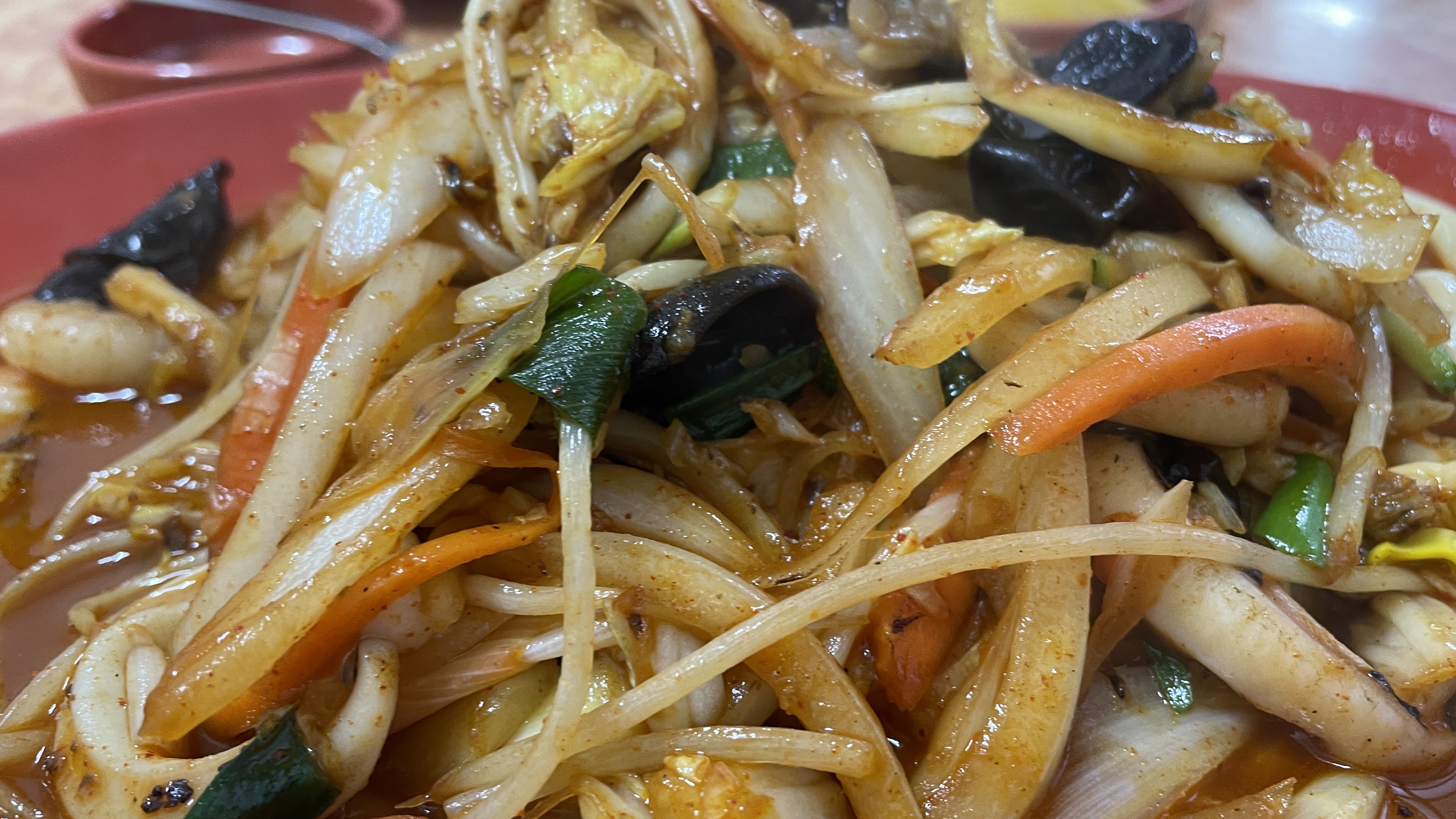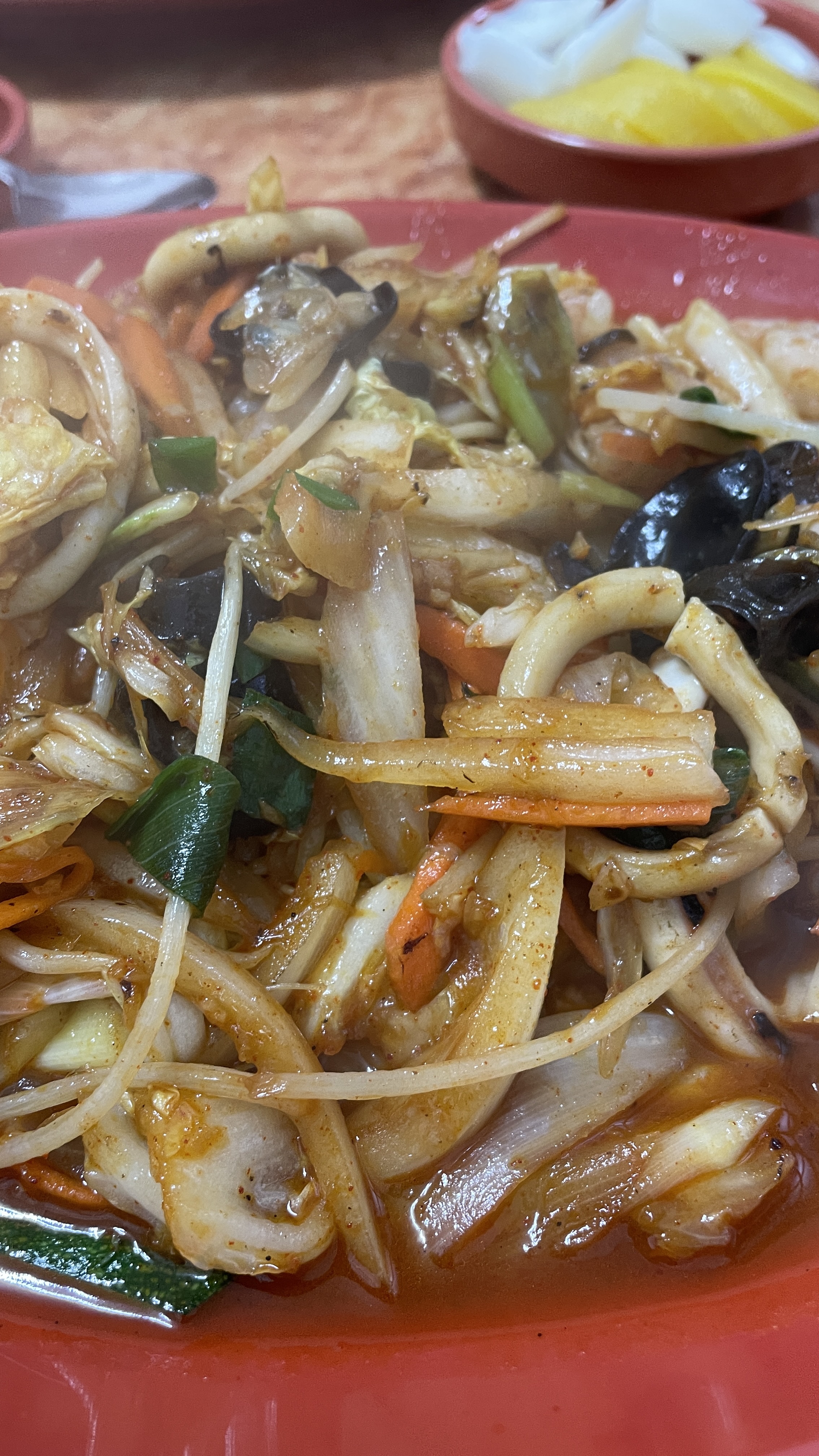 제 눈에는 특히 오징어가 많이 보였는데요 야채와 오징어, 새우 등이 많아서 좋아합니다.
