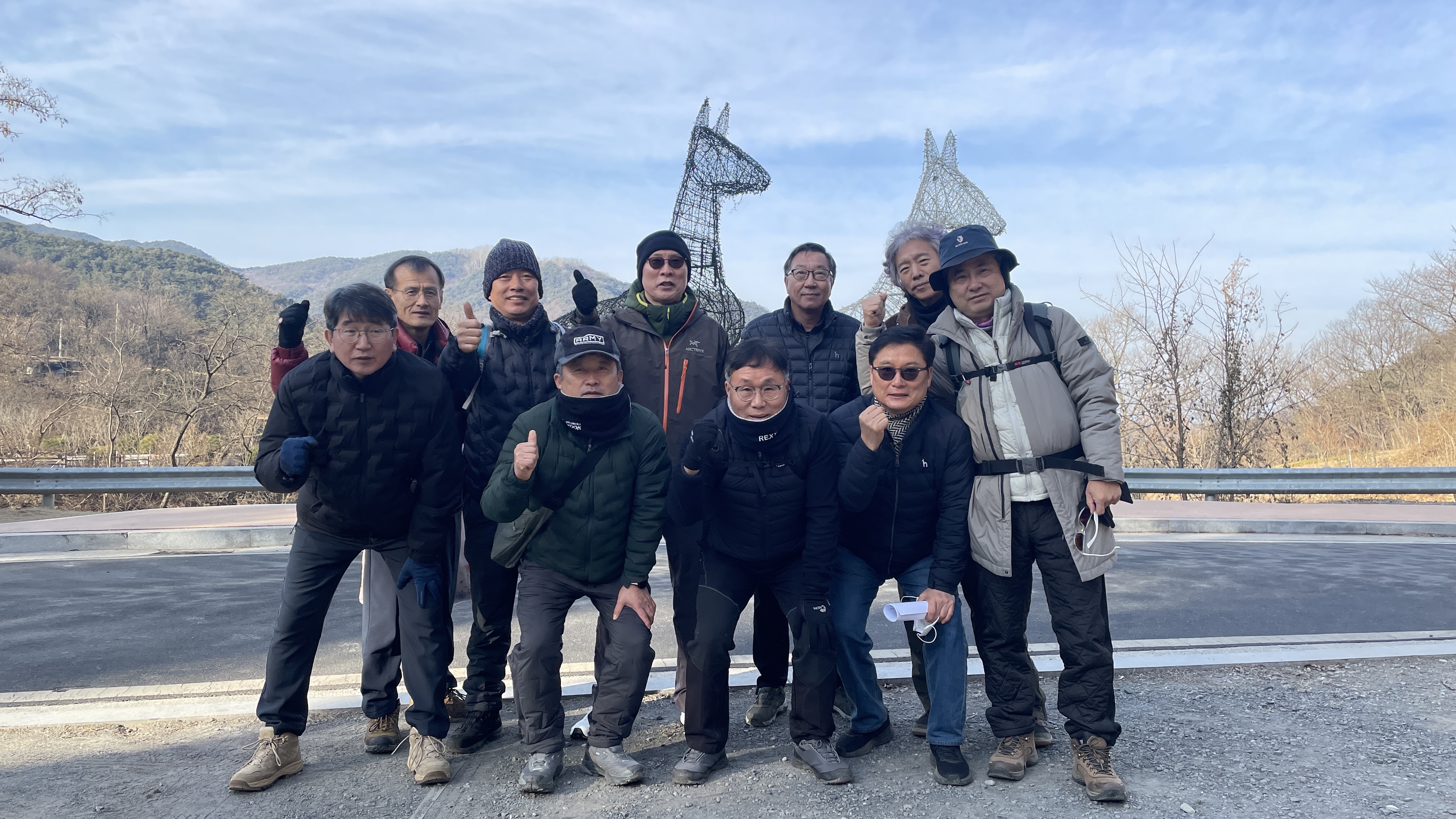 마비정 벽화마을 주차장에 모여서 일단 기념촬영을 하고 시산제 장소인 삼필봉을 향해 출발했습니다.