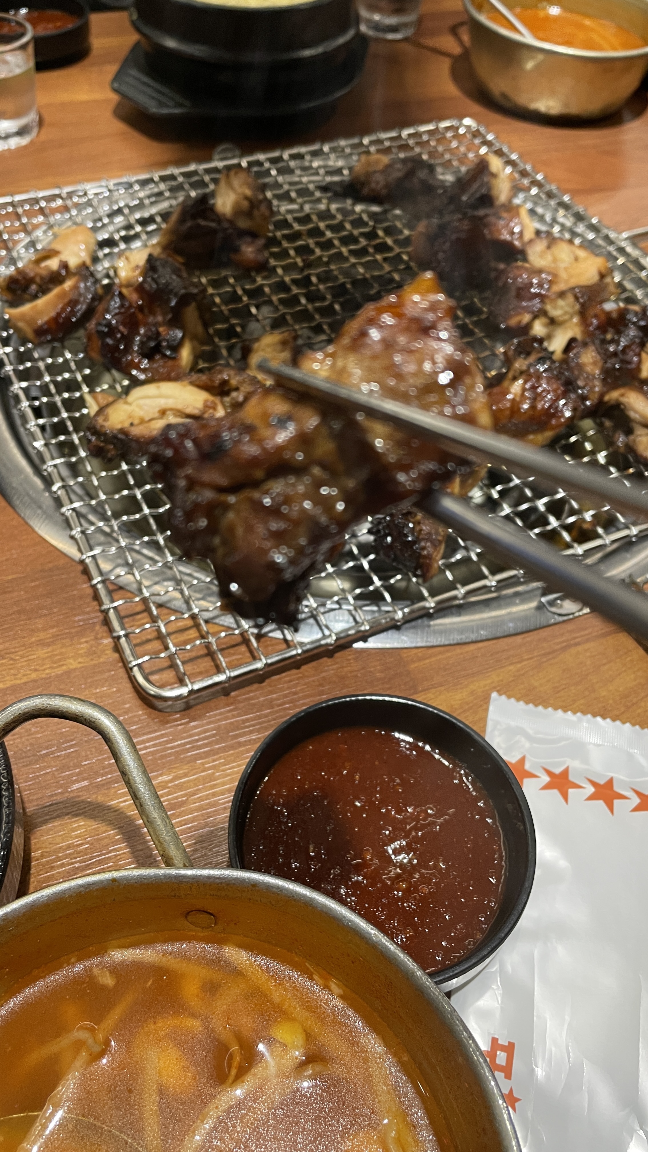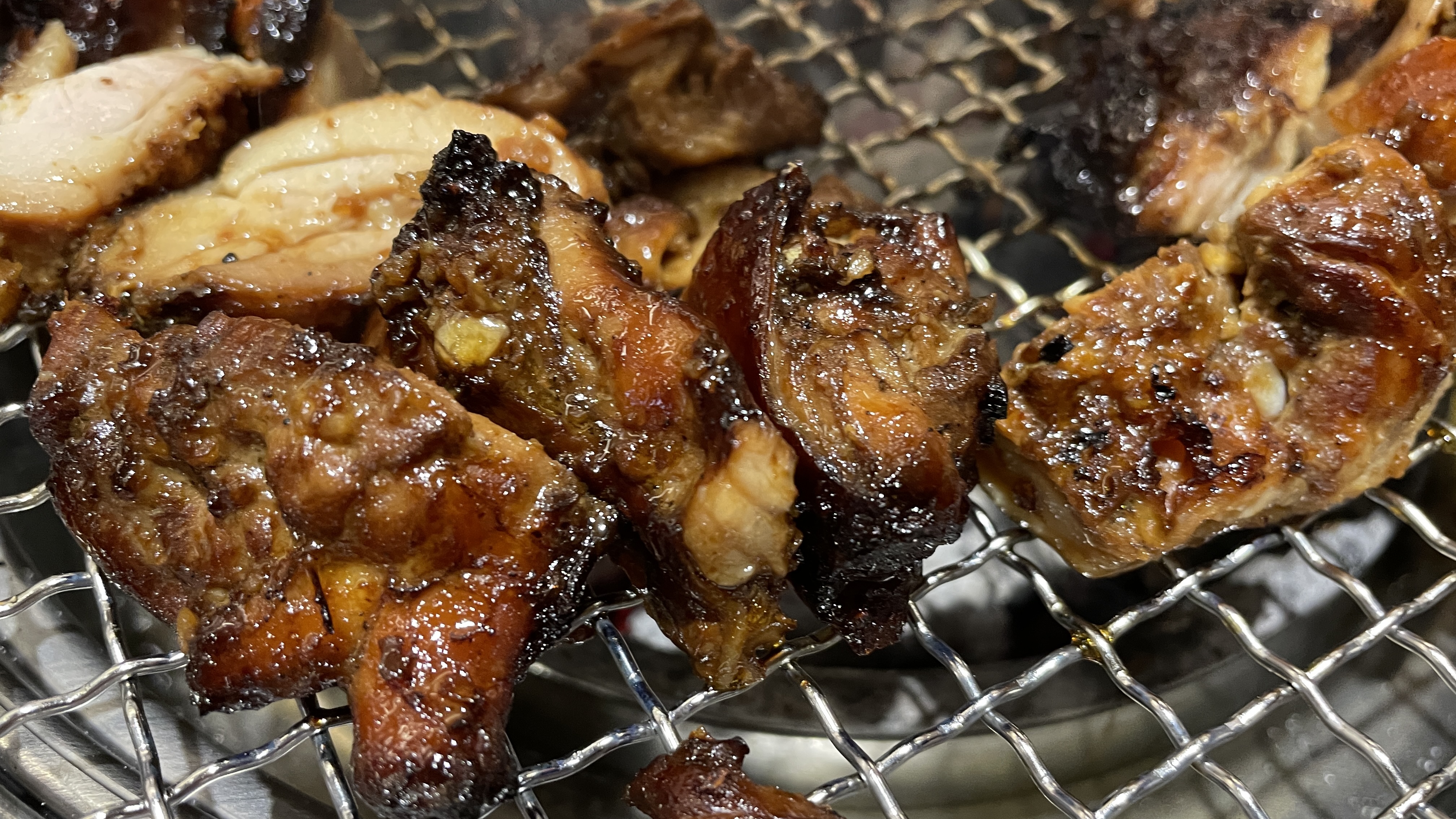 초벌된 닭구이를 다시 석쇠에 올려서 마저 구웠다