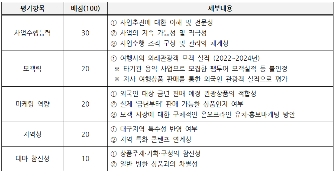 이번 공고(모집기간 2025. 3. 7.(금)까지)를 통해 2025년 대구 인바운드 스타여행사로는 5개 내외를 선정할 예정이다.