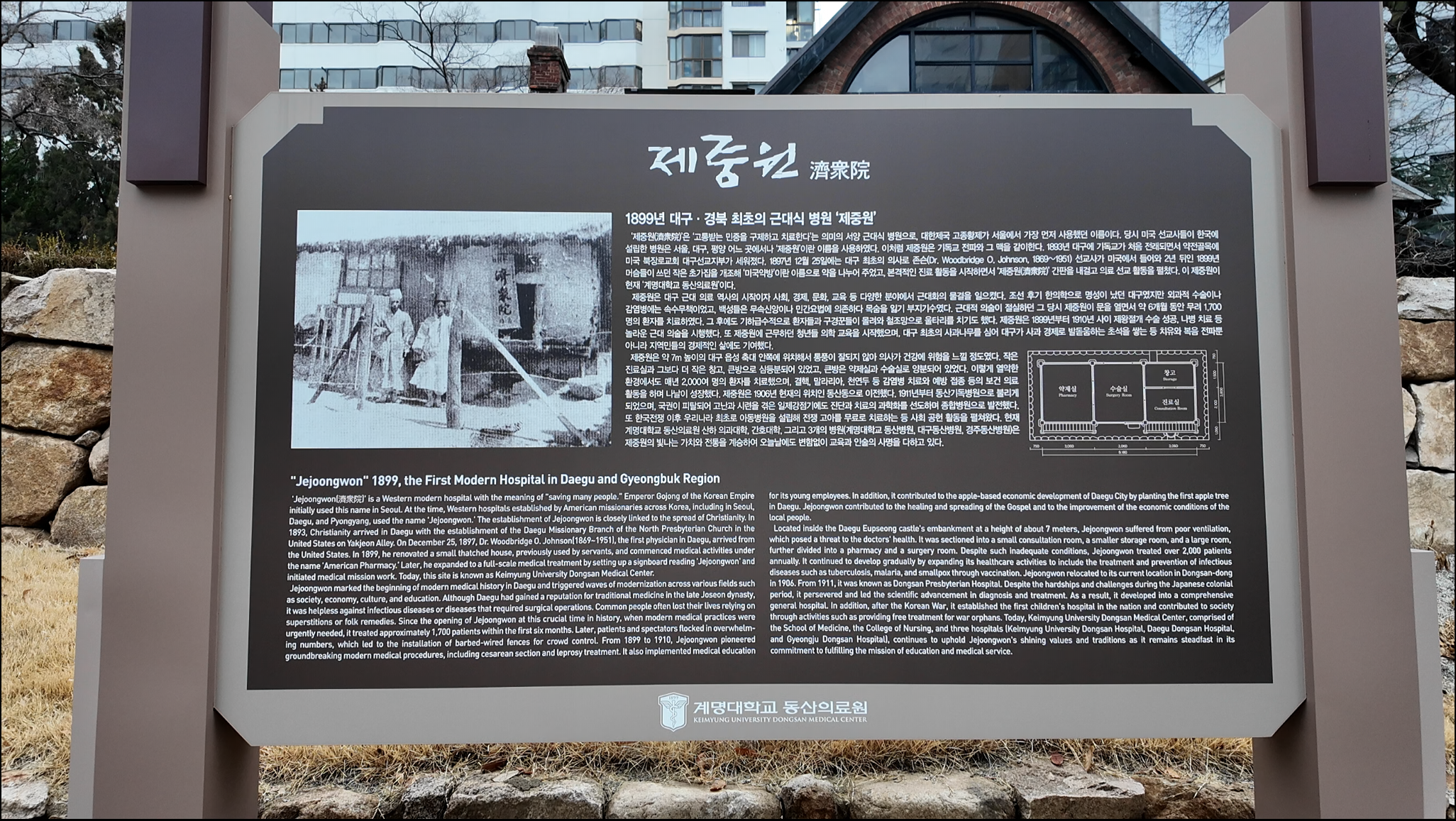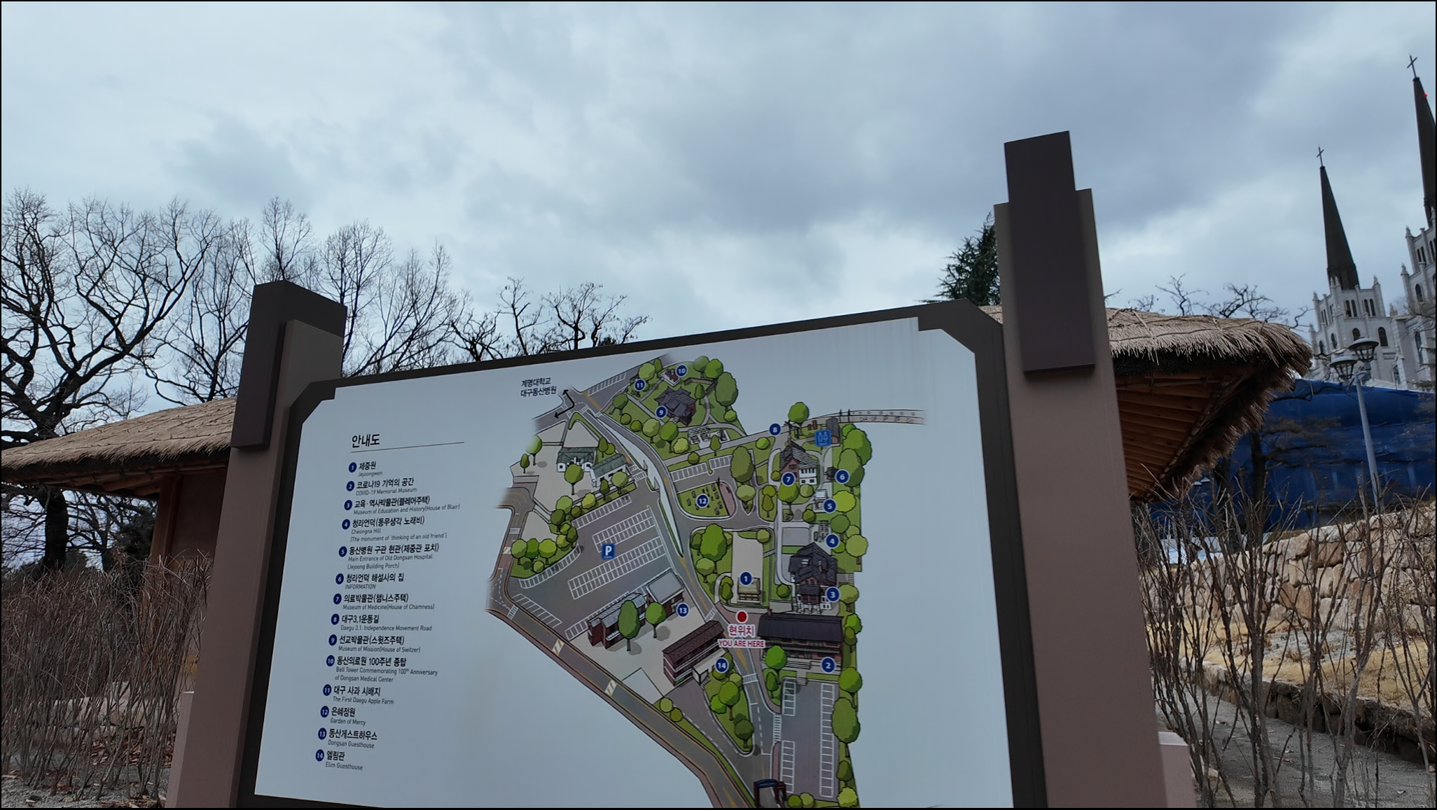제일 먼저 만나는 곳은 동산의료원에 마련된 의료선교박물관과 대구 사과 시배지이다.