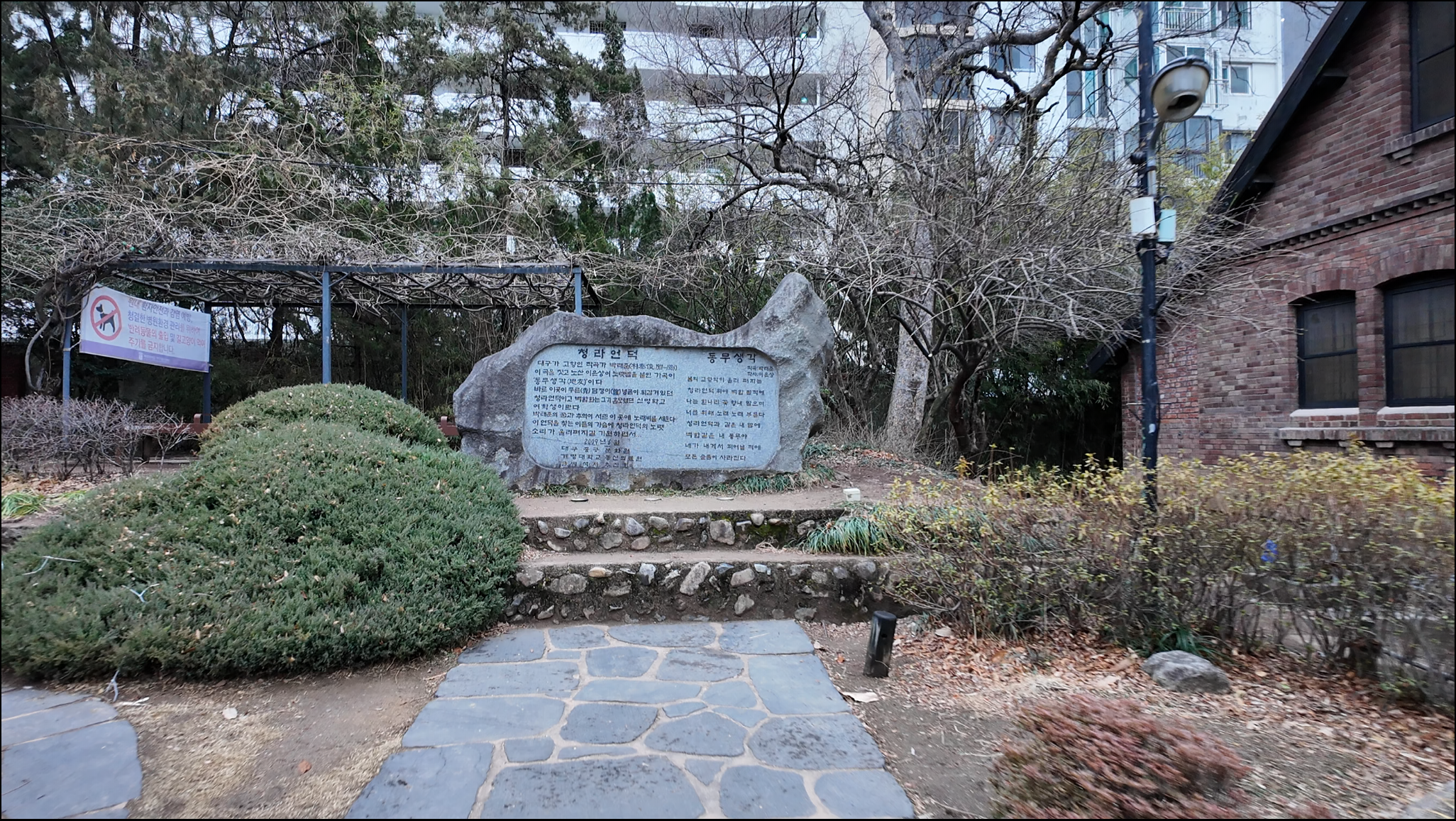 한 바퀴 도는 중에도 보이는 청라언덕에 대한 설명과 동무생각(작곡 박태준, 작사 이은상) 노래비가 있다.