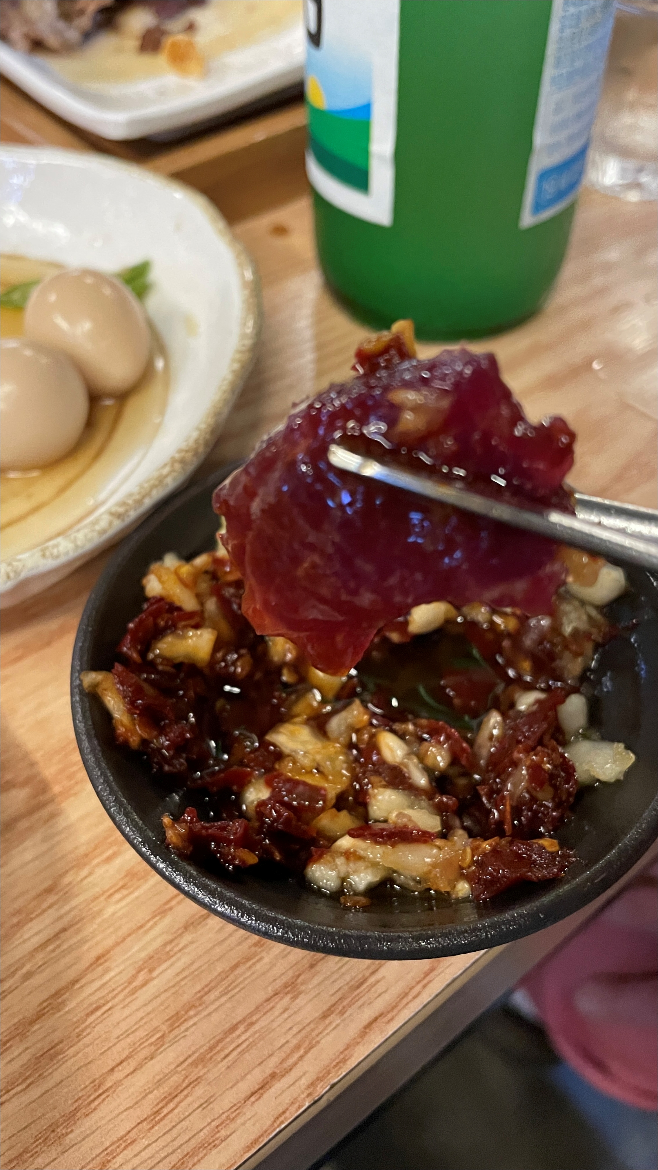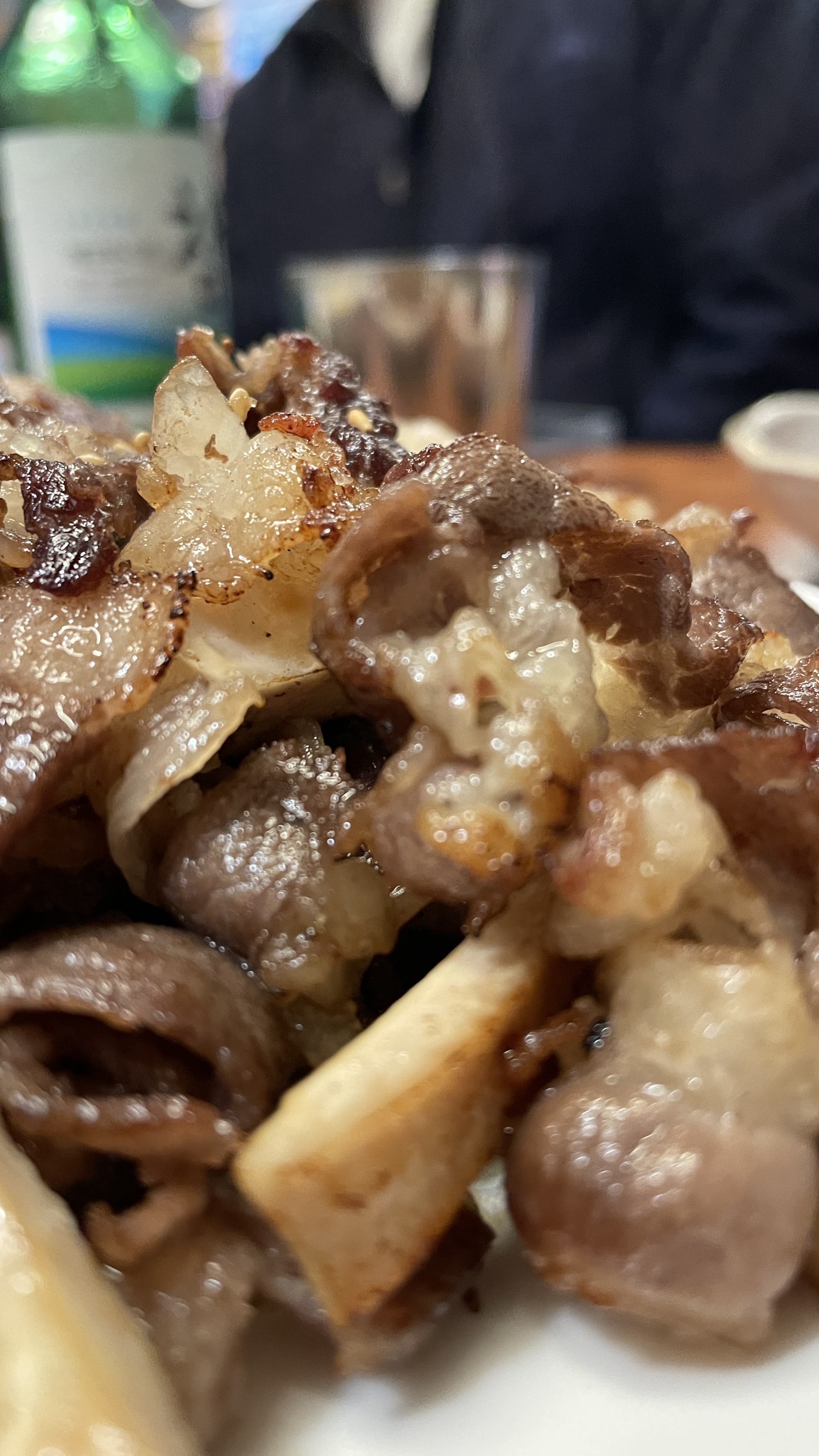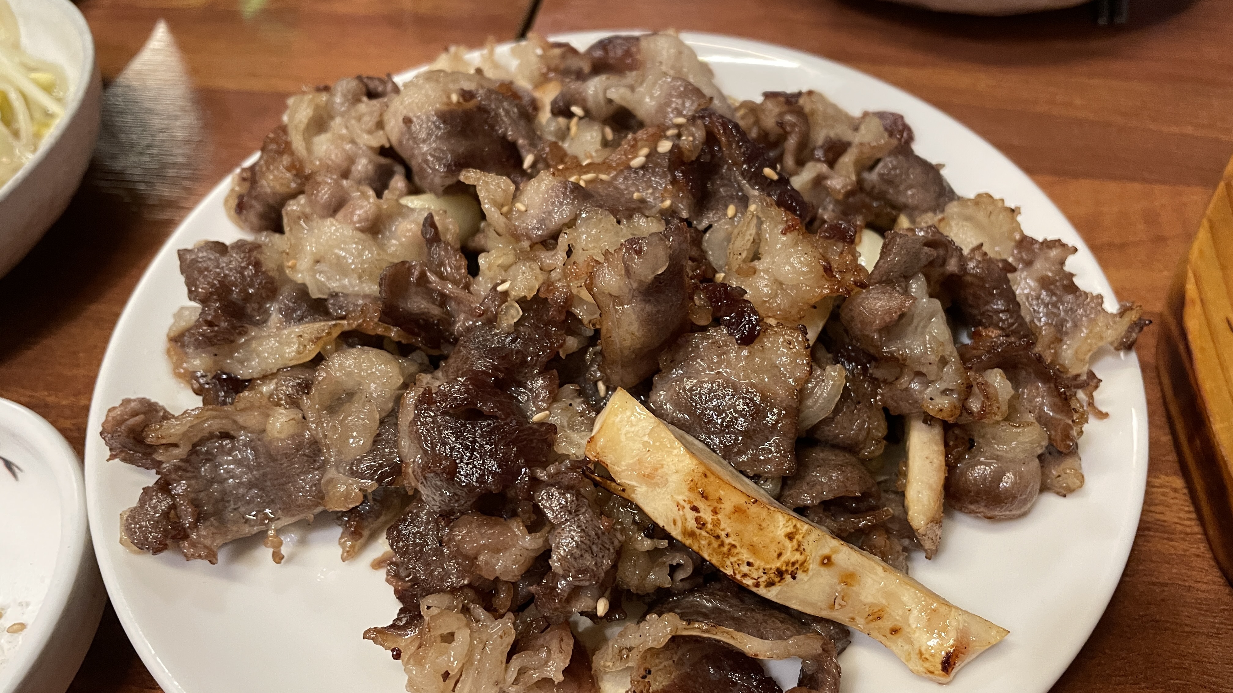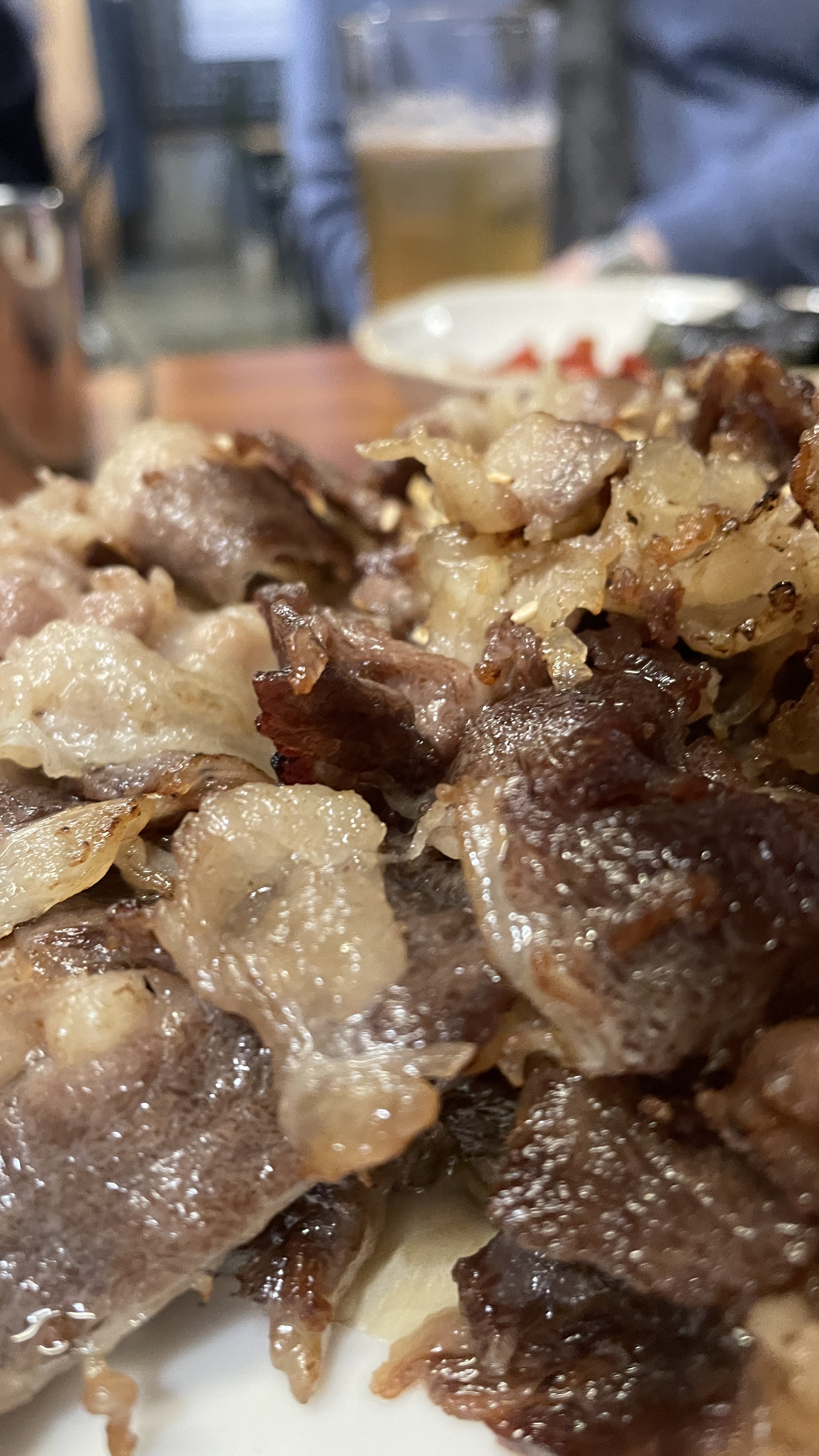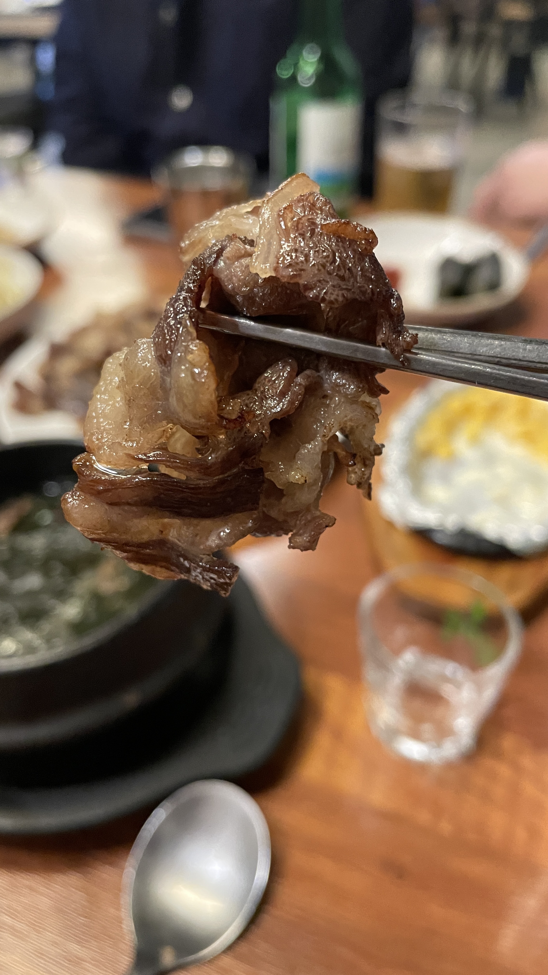 오독오독 씹하는 소리와 더불어 졸깃졸깃한 식감은 감히 따라올 자가 없습니다. 특히 양지와 함께 구워서 나오는 양지오드레기는 생고기를 먹지 못하는 사람도 생고기(뭉티기) 집으로 불러드리는 마력을 가진 안주입니다.