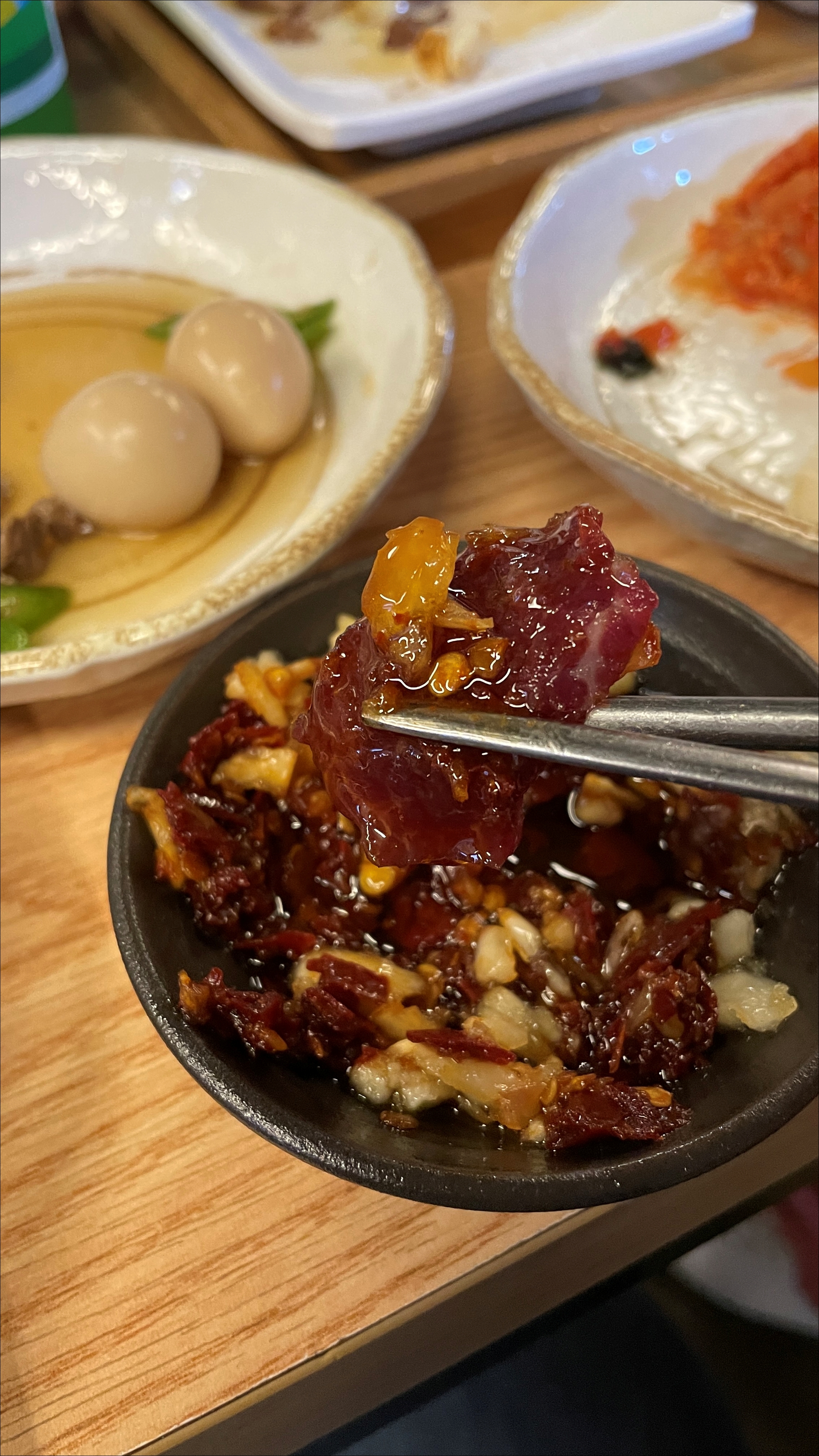 처음부터 술자리를 뭉티기(생고기)집에서 시작한다면 취향에 따라 뭉티기, 육회, 양지오드레기를 주문할 수 있겠으나, 만약 2차 자리였다면 어떻게 주문하실까요? 그자리에 뭉티기나 육회를 드시지 못하는 분이 있다면?