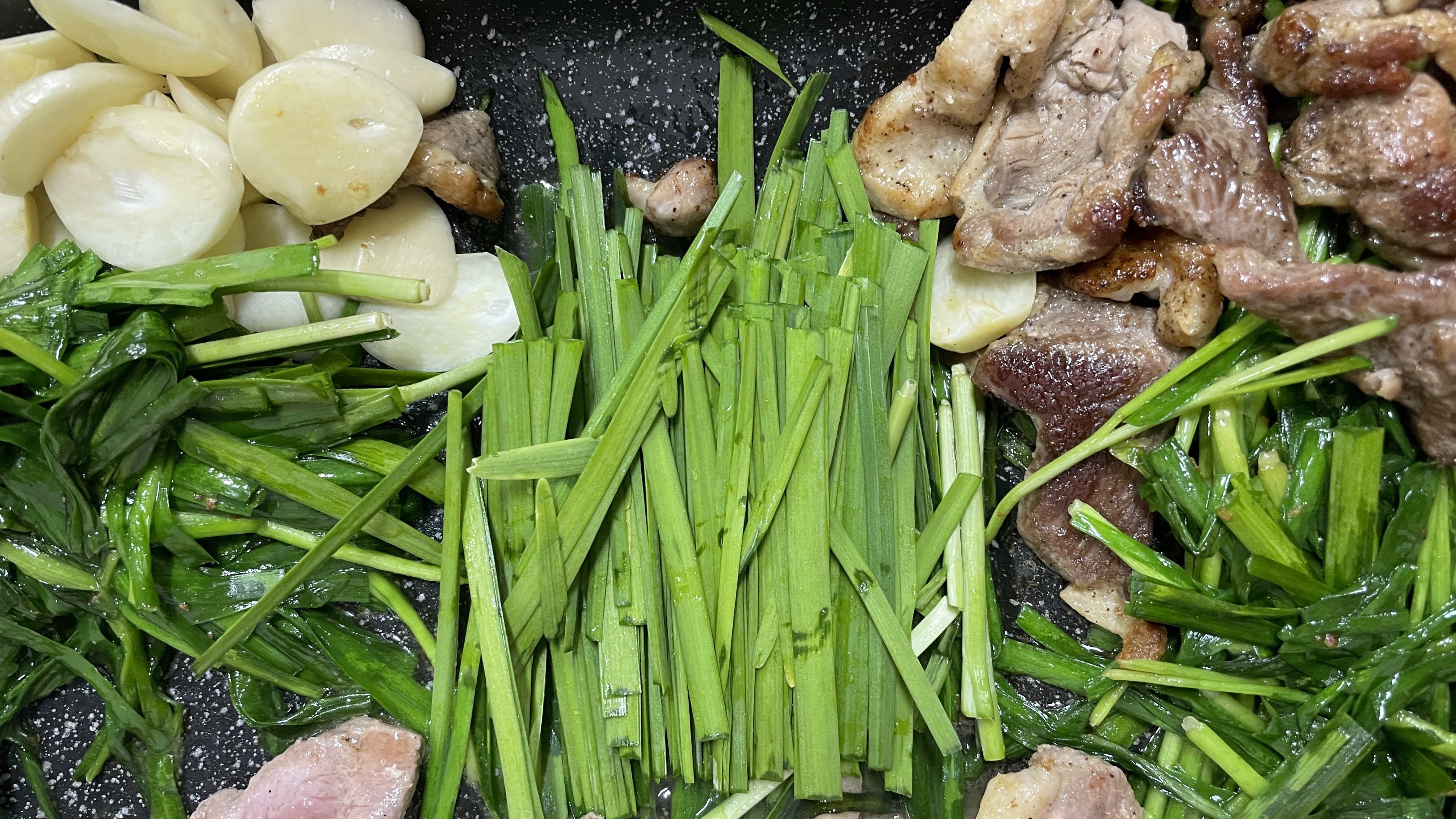 딱 보니 정구지는 오리와 함께 굽는 용도