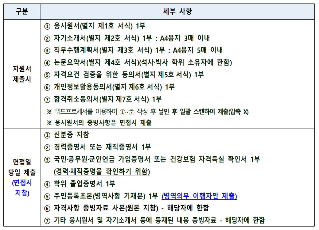 - 응시원서 양식(공고문 첨부)을 작성 및 서명(날인) 후 스캔하여 이메일 제출
