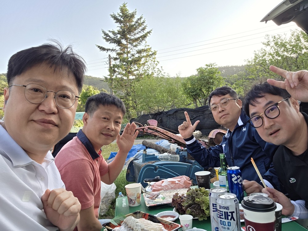 낚시가 진행되는 동안 각 기수별 텐트 아래에서는 야식을 먹으면서 동기들 간에 즐거운 시간을 보내기도 했습니다. 참 개인적으로 전기차가 좋은 이유 한 가지를 발견했습니다. 차에서 전기를 바로 빼서 사용할 수 있더군요. 부럽!!!