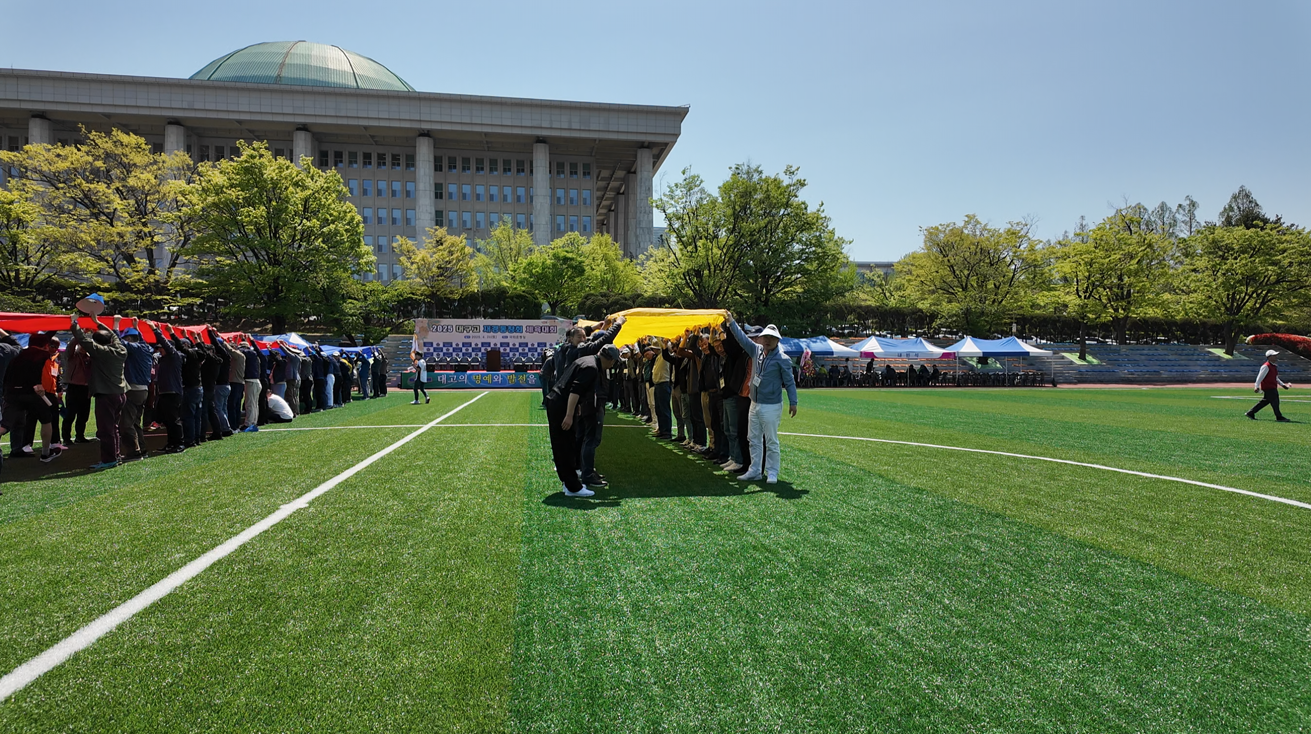 2025년 4월 26일 토요일, 대한민국 서울, 여의도 국회 운동장에서 대구고등학교 재경동창회에서 주최하는 체육대회가 개최되었습니다. 당연히 홍보차장 새벽에 버스를 타고 출동했습니다.