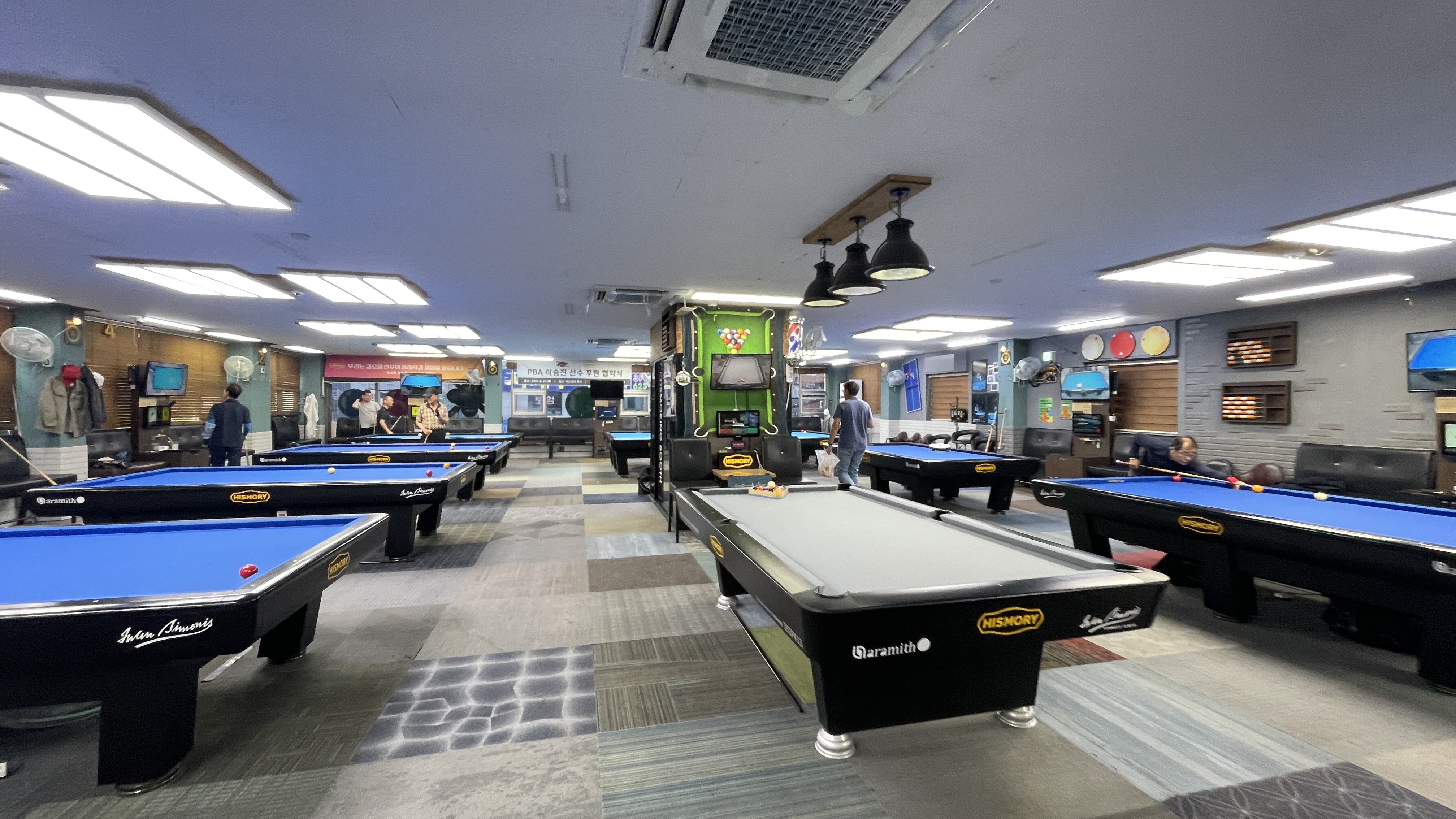 한때에는 천정에 당구공들이 움직였는데, 요즘은 그냥 친구들과 즐기러 다닌다.
