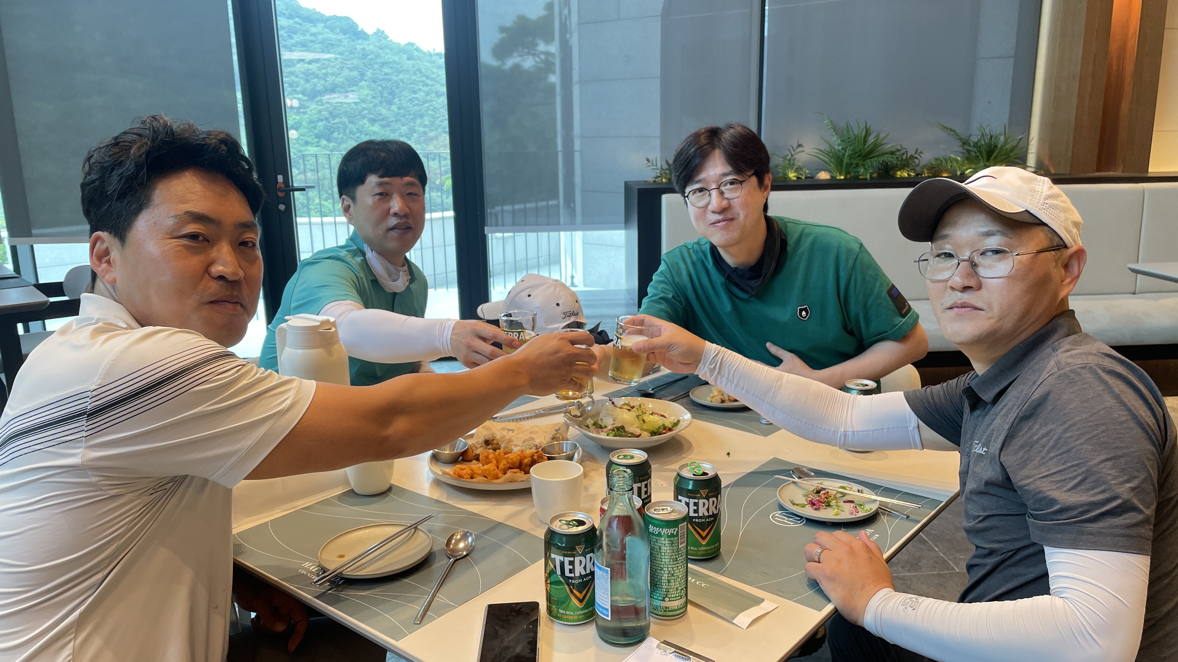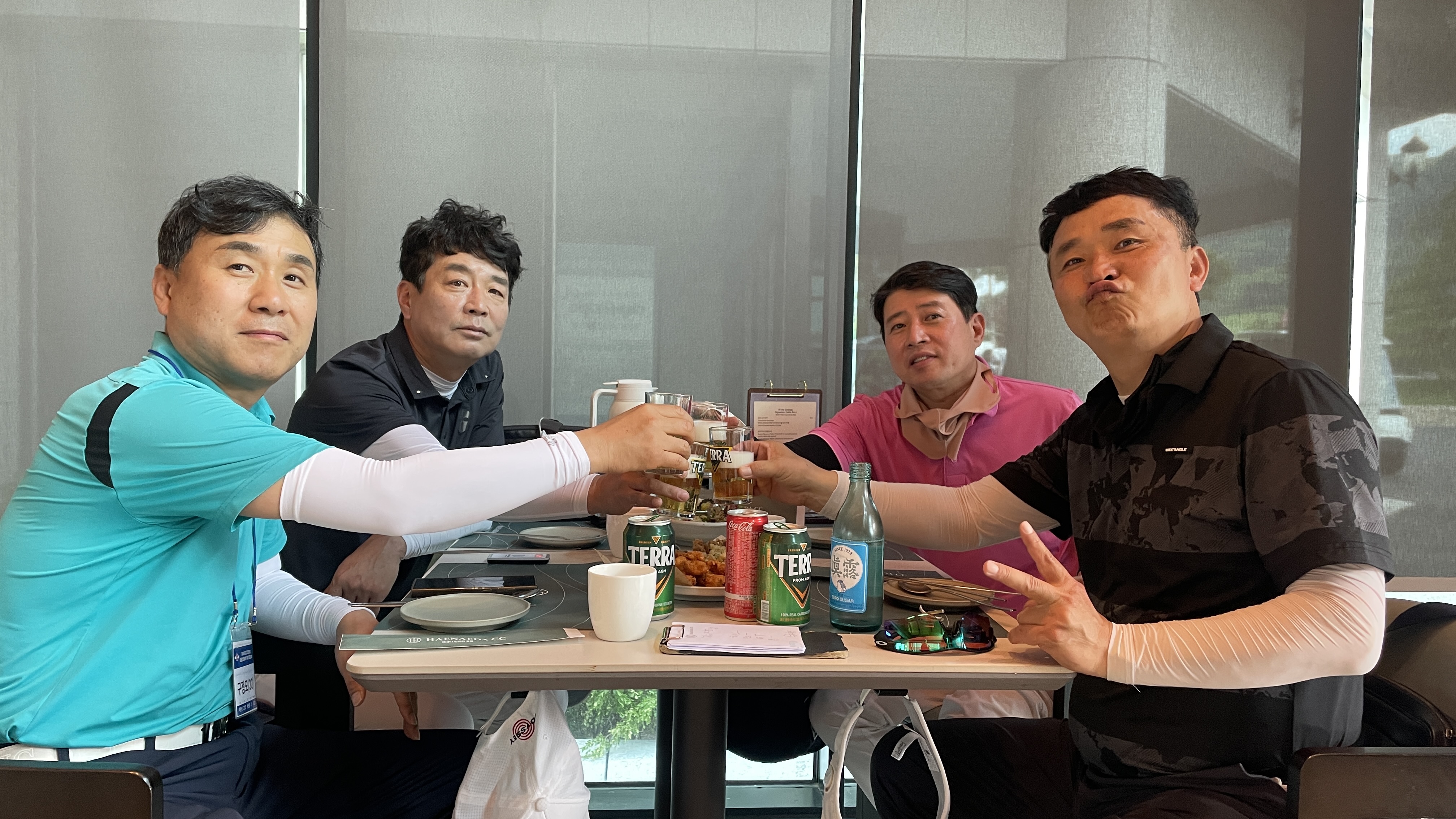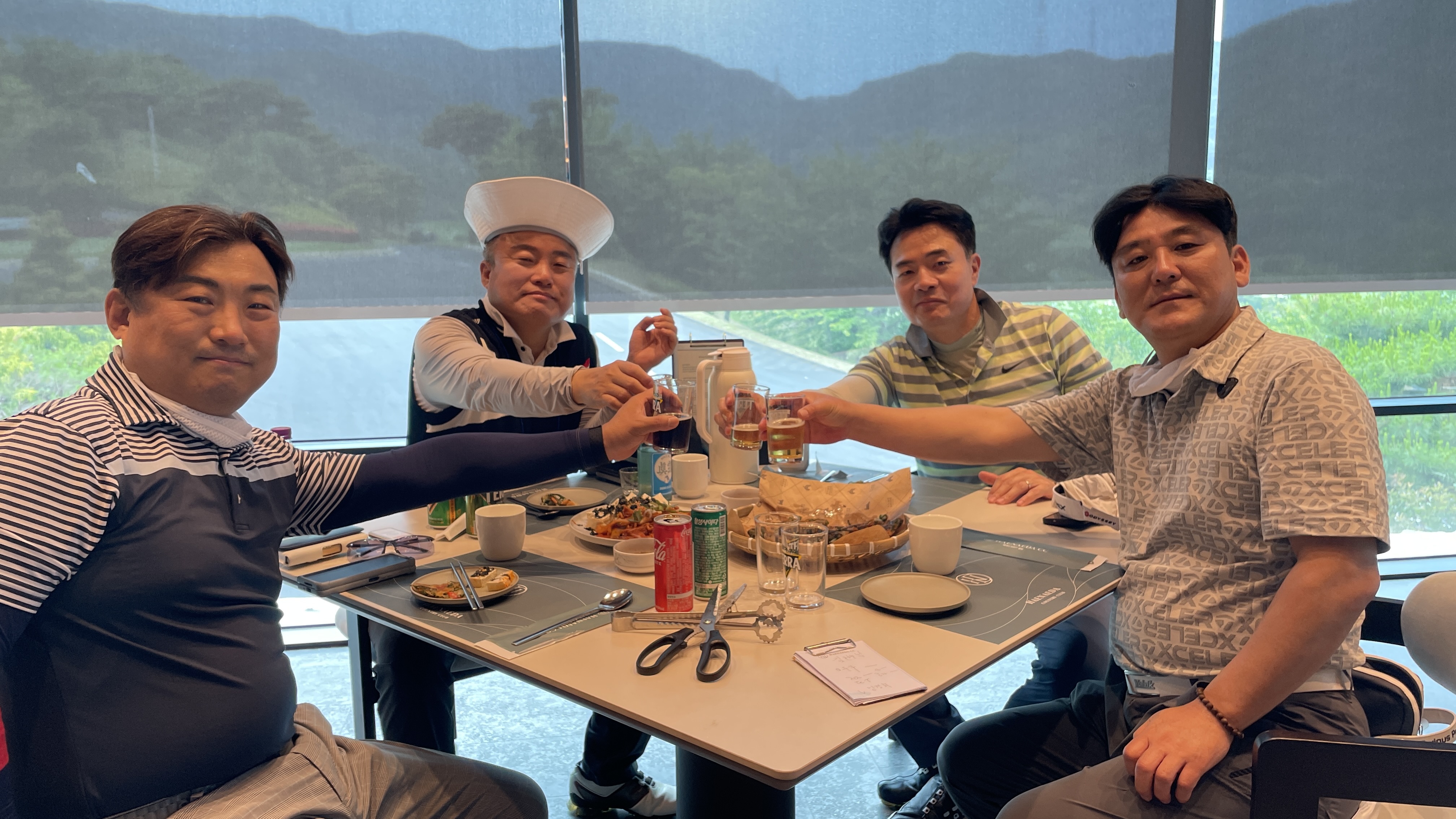9홀을 돌고 그늘집에서 먹는 음식은 꿀맛이죠. 거기에 시원하게 마시는 한 잔은 더할나위없이 좋고요
